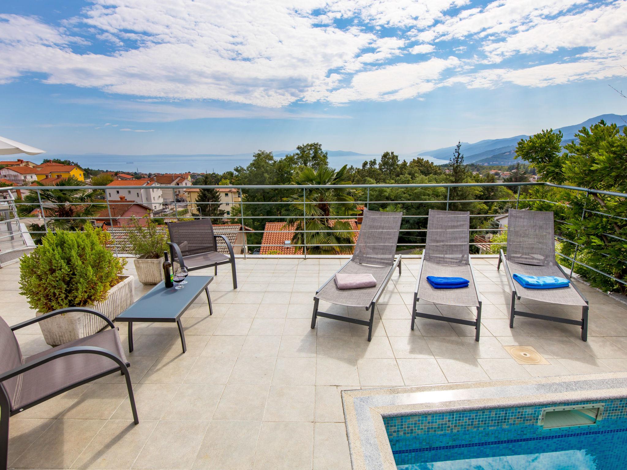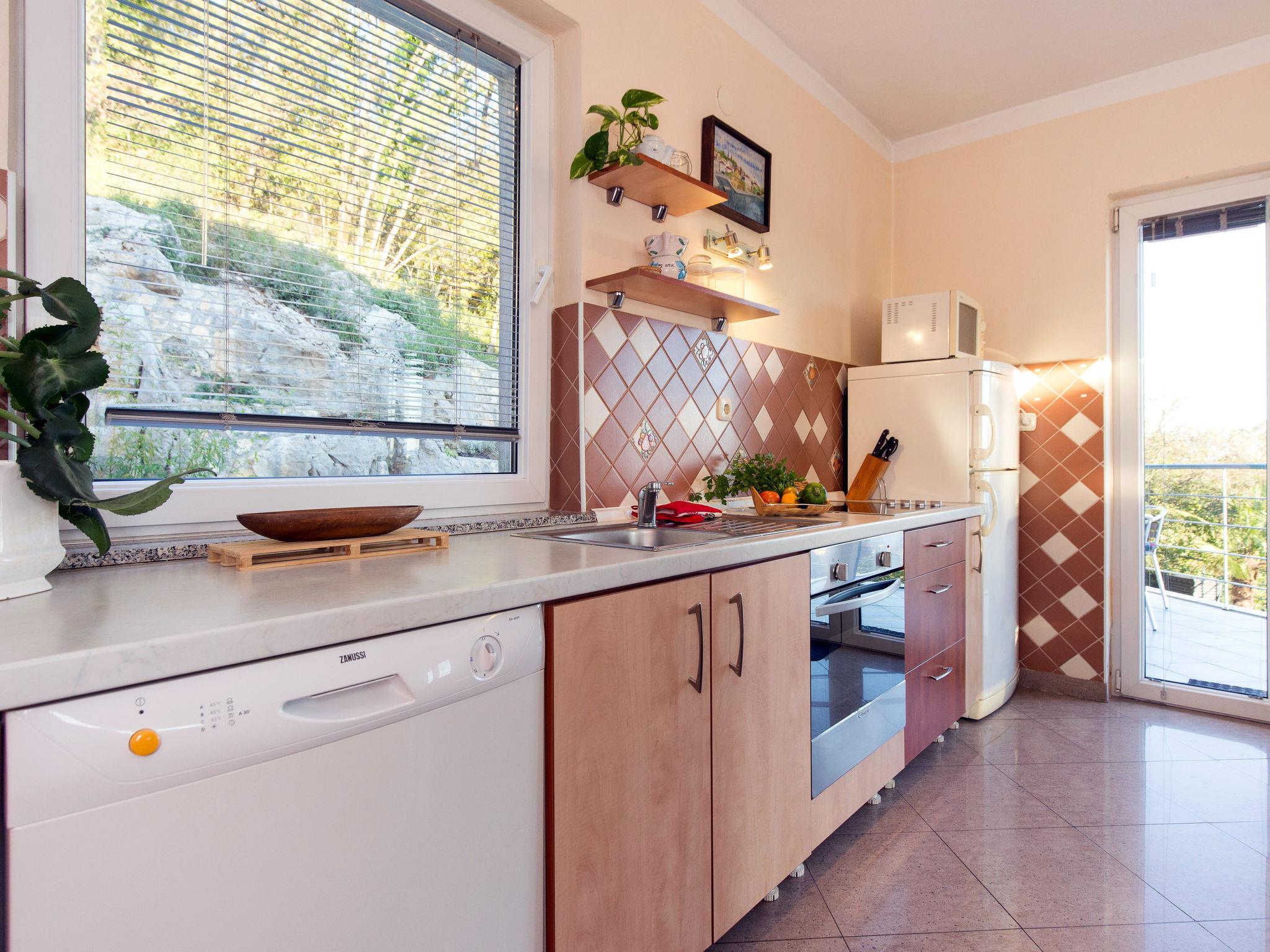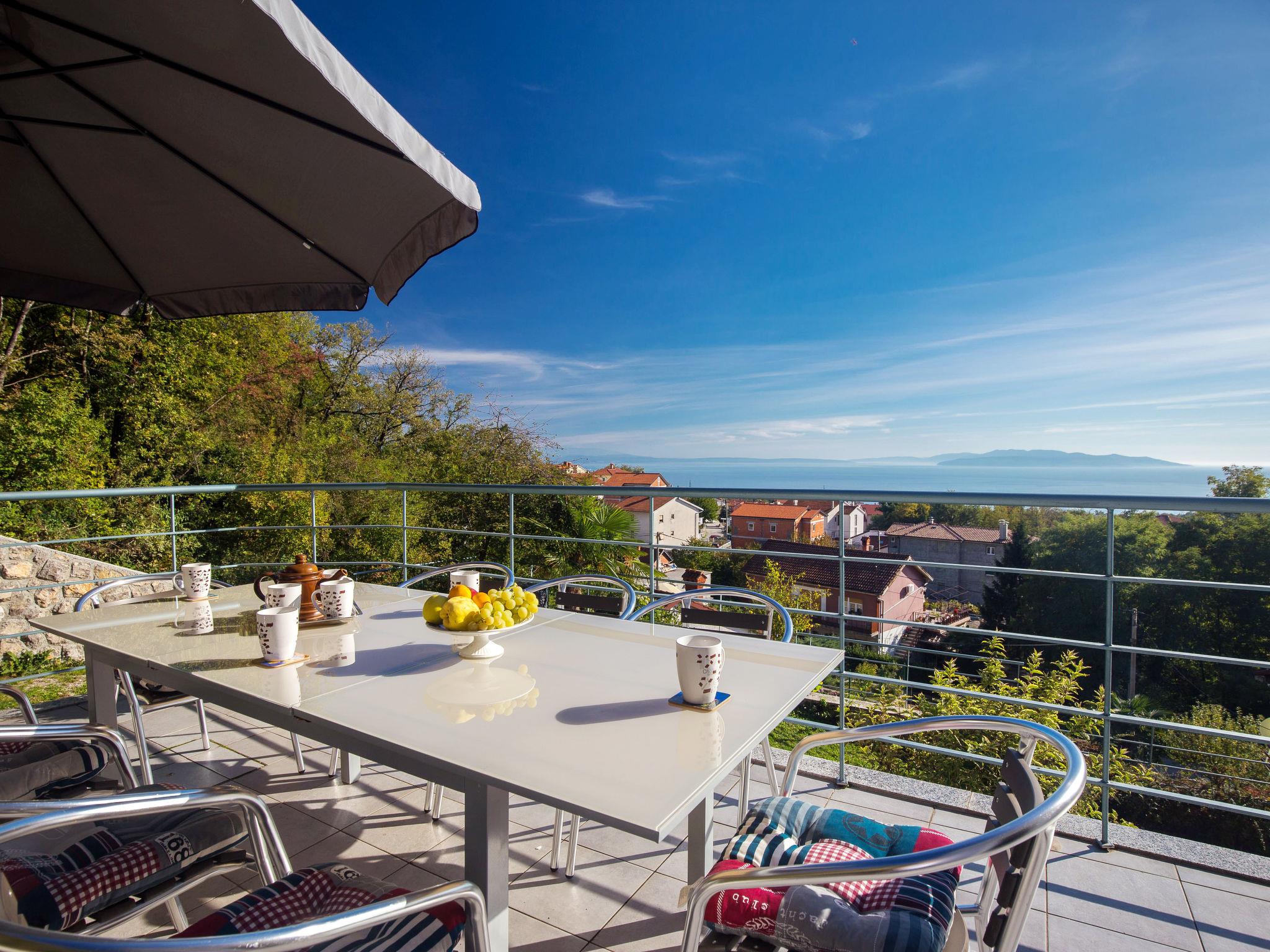 Apartment block "Bella Vista". 6 km from the centre of Opatija, 11 km from the centre of Icici, on a slope, 3 km from the sea, 3 km from the beach, in a cul-de-sac, in the countryside. For shared use: property 1'200 m2 with flowers and trees, swimming pool heated (7 x 4 m, depth 120 - 160 cm, seasonal availability: 29.Apr. - 30.Nov. pool opening hours: 08:00-22:00). Outdoor shower, terrace, barbecue. In the house: internet access, washing machine, tumble dryer (for shared use, extra). Parking at the house on the premises. Shop 200 m, bus stop 1.2 km, pebble beach 3 km.