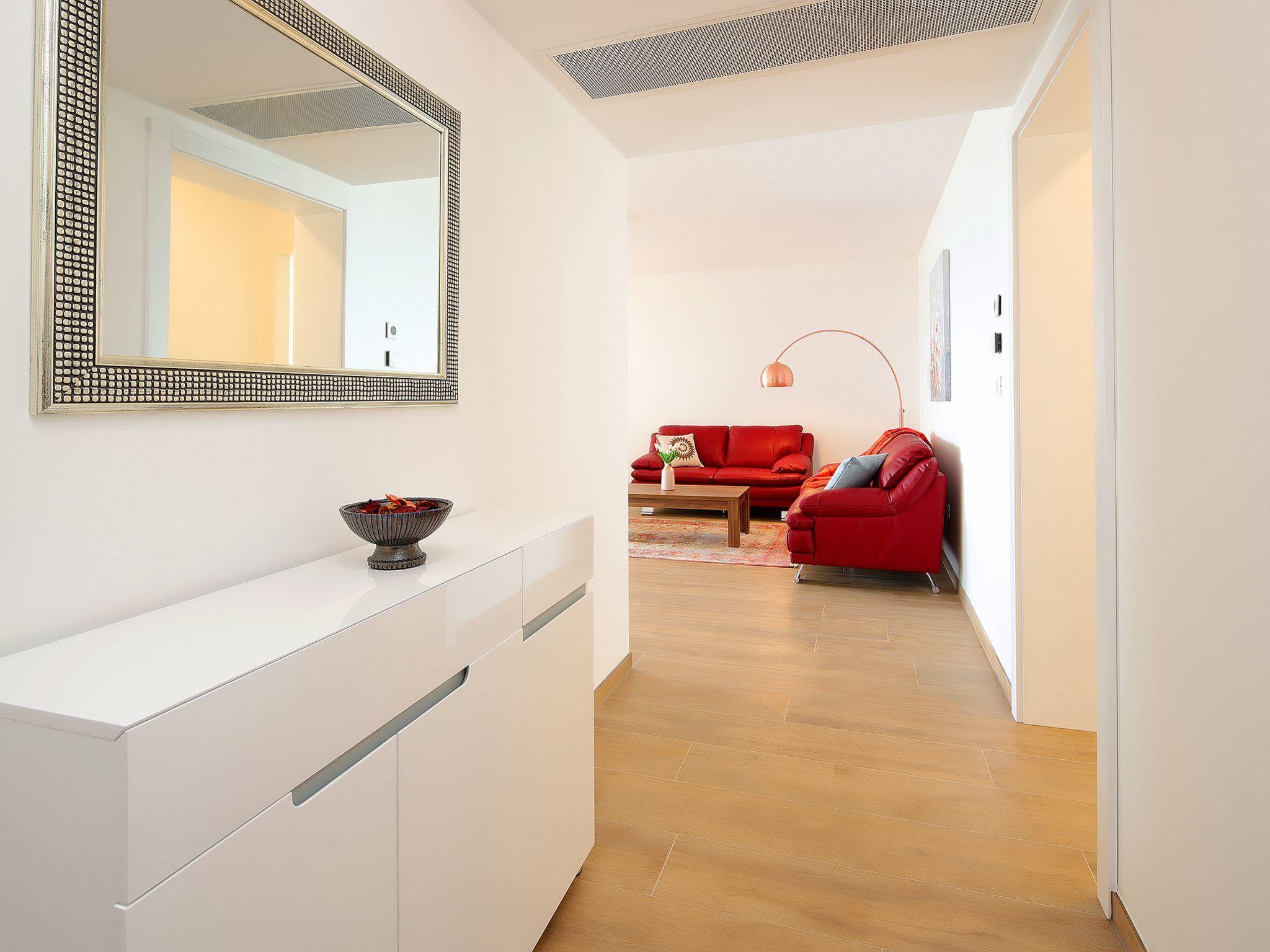 Inside the flat you will find all the amenities to make your stay as comfortable as possible. The holiday flat has two bedrooms and a bathroom with a practical bathtub with shower attachment. Air conditioning ensures pleasant temperatures in all rooms, while the underfloor heating provides cosy warmth on cooler days. Your physical well-being is also taken care of: a fully equipped kitchen with ceramic hob, capsule coffee machine, dishwasher and kettle leaves nothing to be desired. A washing machine is available for your sole use, while a tumble dryer is available for communal use in the building.