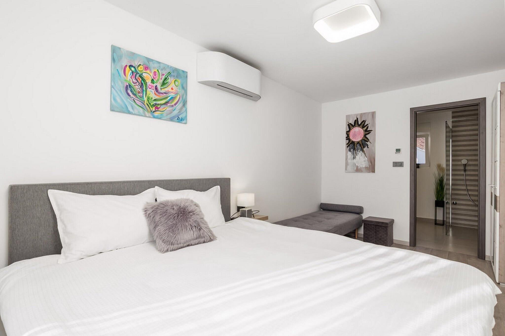 Villa Corichi is situated in Opatija, the oldest Croatian tourist destination. Terrace fitted with with sun beds and parasols as well as seasonal outdoor swimming pool and BBQ facilities are at your disposal, which makes this place ideal for a nice and relaxing family or friends vacation. Baby cot and highchair are available. Free private parking is provided, reservation is not needed. Pets are allowed with notice, first pet is free of charge, every next one will be charged 50 euros per stay. This lovely four bedroom villa with swimming pool is perfectly fit for up to ten people. It features free WiFi, air conditioning as well as SAT LCD TV. The open space living room comes with sofa and sitting area, and it's combined with the equipped kitchen and dining area. The private bathroom comes with shower and toilet. Opatija is the oldest Croatian tourist destination. You can try traditional Croatian cuisine in many restaurants in this area. The closest restaurant is only 1 km from the property. Due to the property's good location everything you may need during your stay can be found in the area. The nearest beach is 2 km away from the property while the nearest market is 600 m away. Restaurant and café bar can be found 800 m away! Rijeka Airport is 40 km away.