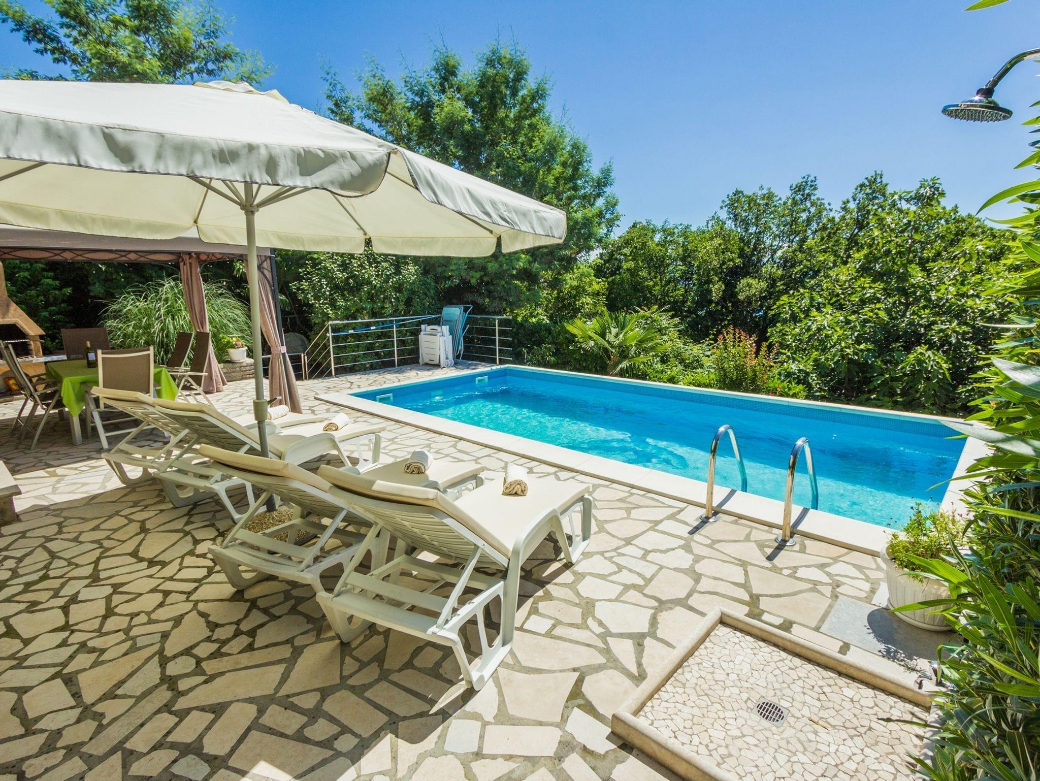 Umgebung des Objekts (Ordentlich), Hof (100m2, Wird mit einem anderen Objekt mitbenutzt, Kinderbereich, Sitzbereich), Parkplatz (Anzahl der Parkplätze: 1, Entfernung vom Objekt: im Hof), Pool: gemeinsam, Dimensionen: 7m x 3.5m x 1.45m, Wassertyp: Süßwasser, Grill: gemeinsam, WiFi Internet, Föhn, Bügeleisen, Bügelbrett, Sonnenschirm, Liegestühle