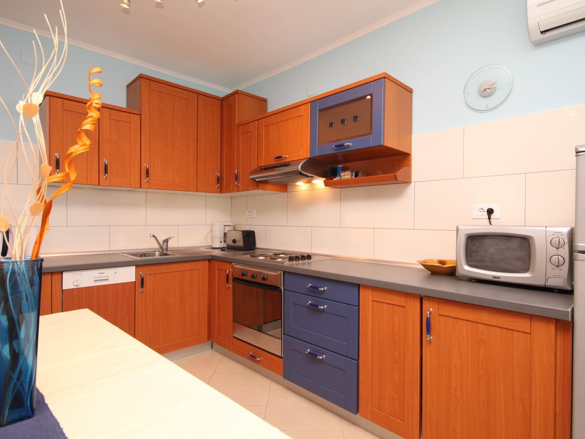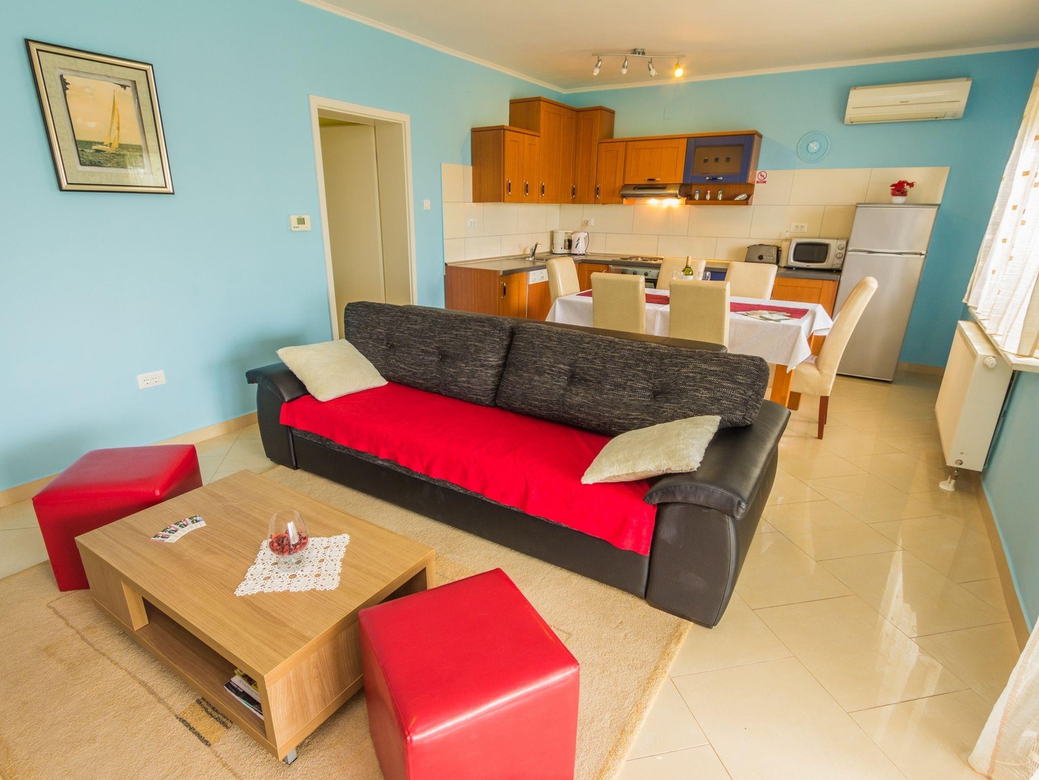 Ferienwohnung bietet Platz für 6 Gäste. Die Betten sind in Schlafzimmern, die es 2 gibt, und in Wohnzimmer, innerhalb einer Gesamtfläche von 80m2, angeordnet. Die Gäste haben eine eigene Terrasse zur Verfügung, auf der sie in warmen Sommernächten genießen können. Das Apartment bietet Meerblick. Es ist erlaubt, Speisen auf dem Gemeinschafts-Grill vorzubereiten. Während ihres Aufenthalts können Gäste das gemeinsam zur Nutzung stehende Schwimmbad benutzen. In der Unterkunftseinheit besteht die Möglichkeit des Mitbringens von Haustieren gegen Aufpreis. IM PREIS INBEGRIFFEN: Kurtaxe, Endreinigung, Klimatisierung, Zentralheizung, Pool, Parkplatz, Internet, Bügeleisen, Bügelbrett, Föhn, Sonnenschirm, Liegestühle. UNVERBINDLICHE ZUSÄTZLICHE KOSTEN: Haustiere (15,00 € pro Nacht). Die Verfügbarkeit zusätzlicher Dienstleistungen in Ihrem reservierten Termin und die Preise derselben (falls nicht aufgeführt) müssen im Voraus überprüft werden. Zusätzliche Dienstleistungen die in der Zahlungsaufforderung nicht aufgeführt sind werden direkt beim Vermieter bezahlt, angenommen der Gast nutzt auch diese.