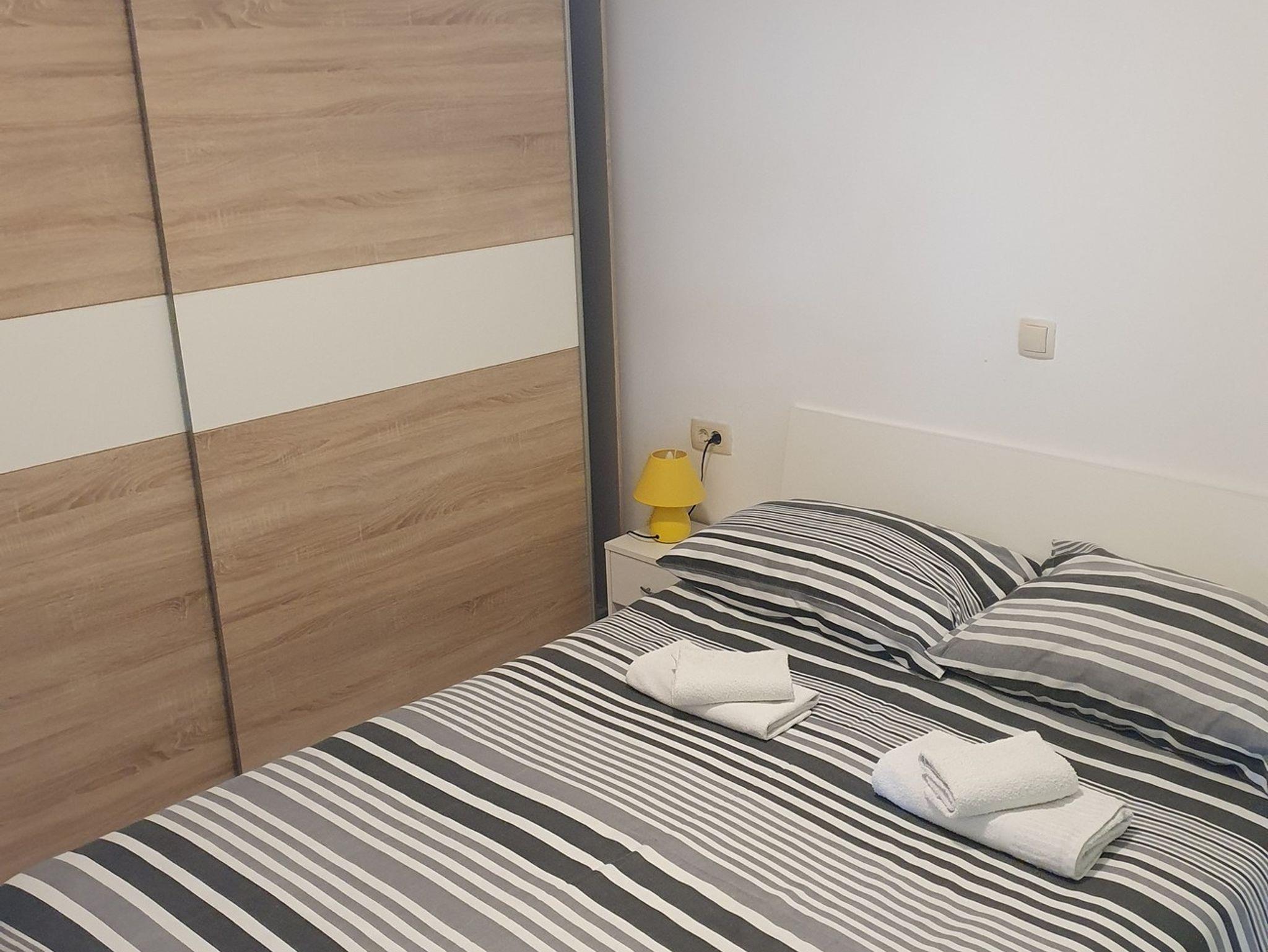 Ferienwohnung bietet Platz für 4 Gäste. Die Betten sind in Schlafzimmern, die es 1 gibt, und in Wohnzimmer, innerhalb einer Gesamtfläche von 44m2, angeordnet. Die Gäste haben eine eigene Terrasse zur Verfügung, auf der sie in warmen Sommernächten genießen können. Das Apartment bietet Meerblick. IM PREIS INBEGRIFFEN: Kurtaxe, Endreinigung, Klimatisierung, Parkplatz, Internet, Bügeleisen, Bügelbrett, Föhn. Die Verfügbarkeit zusätzlicher Dienstleistungen in Ihrem reservierten Termin und die Preise derselben (falls nicht aufgeführt) müssen im Voraus überprüft werden. Zusätzliche Dienstleistungen die in der Zahlungsaufforderung nicht aufgeführt sind werden direkt beim Vermieter bezahlt, angenommen der Gast nutzt auch diese. Ermäßigung auf den Grundpreis: Gratistag 21=19 (bei einem Aufenthalt von 21 Tagen oder mehr erhalten Sie 2 Gratistage für den Aufenthalt bis 31.12.26).