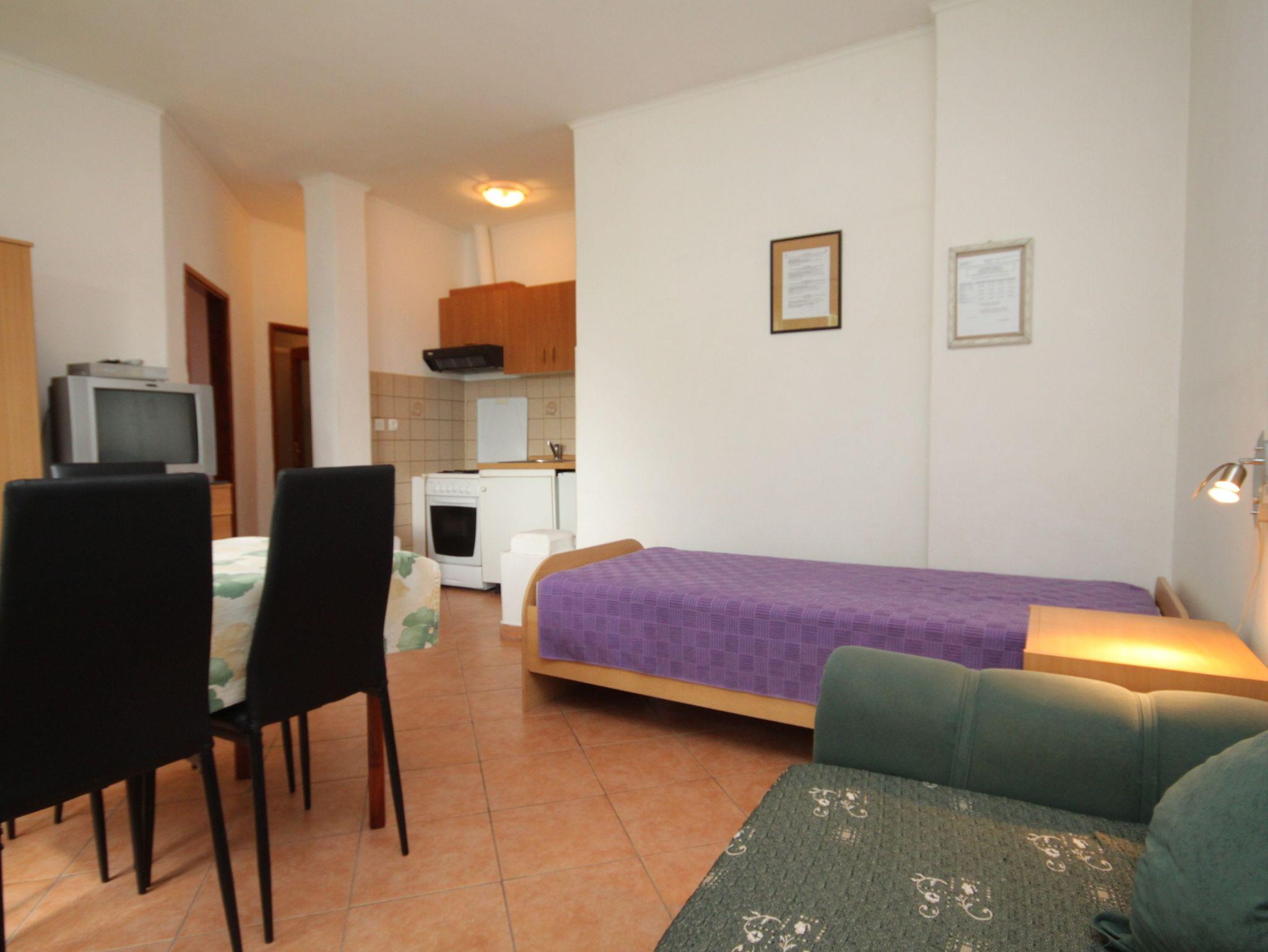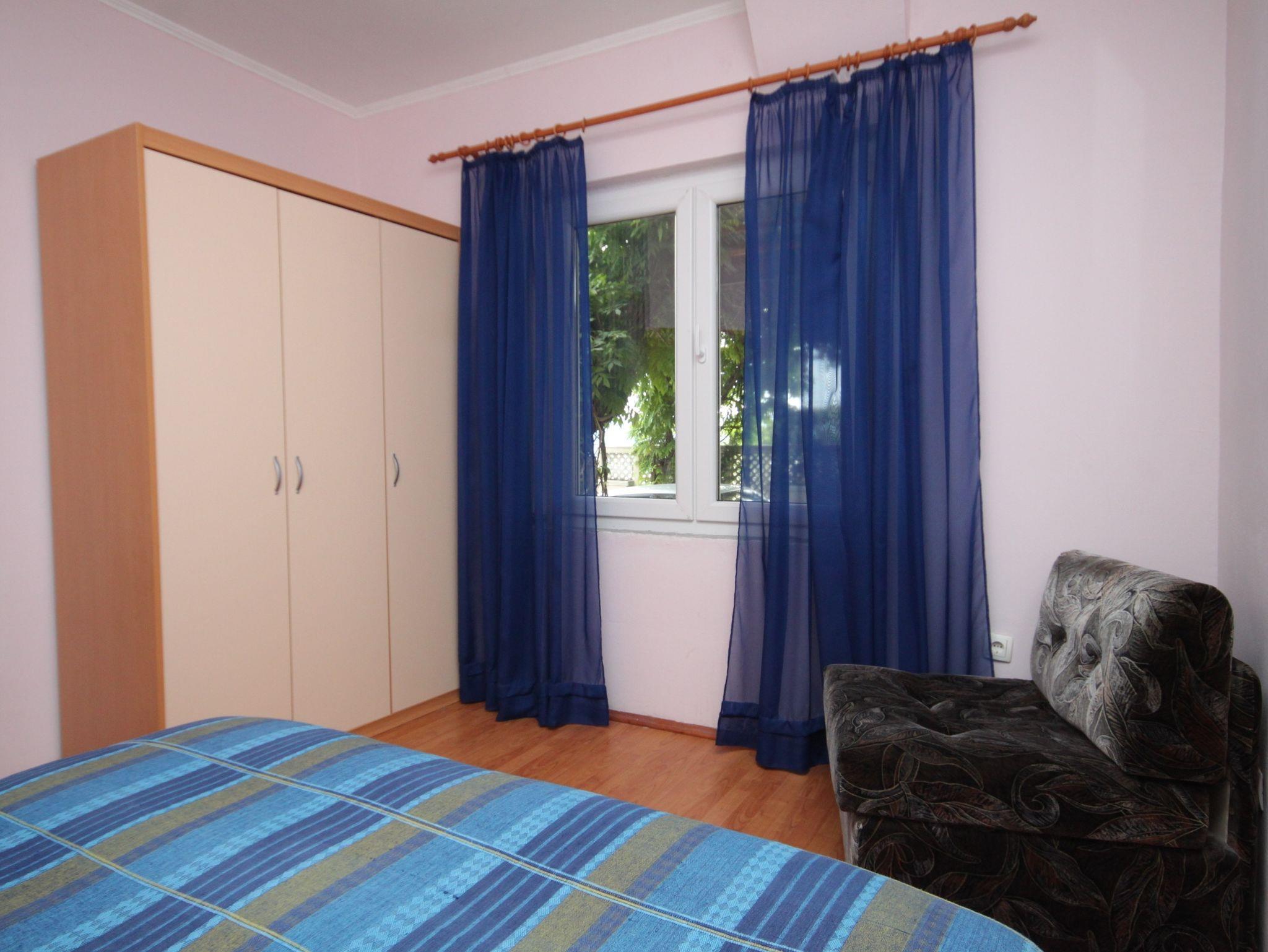 Ferienwohnung bietet Platz für 3 Gäste. Die Betten sind in Schlafzimmern, die es 1 gibt, und in Wohnzimmer, innerhalb einer Gesamtfläche von 35m2, angeordnet. Die Gäste haben eine eigene Terrasse zur Verfügung, auf der sie in warmen Sommernächten genießen können. Das Apartment bietet Meerblick. Es ist erlaubt, Speisen auf dem Gemeinschafts-Grill vorzubereiten. IM PREIS INBEGRIFFEN: Kurtaxe, Endreinigung, Klimatisierung, Parkplatz, Internet, Bügeleisen, Bügelbrett, Föhn. VERBINDLICHE ZUSÄTZLICHE KOSTEN: Aufzahlung für Kurzaufenthalte (prozentualer Zuschlag pro Nächtigungsanzahl: 30% - 1, 20% - 2, 10% - 3). UNVERBINDLICHE ZUSÄTZLICHE KOSTEN: Wäschewaschen (5,00 € Waschen), Zusatzbett (5,00 € pro Nacht). Die Verfügbarkeit zusätzlicher Dienstleistungen in Ihrem reservierten Termin und die Preise derselben (falls nicht aufgeführt) müssen im Voraus überprüft werden. Zusätzliche Dienstleistungen die in der Zahlungsaufforderung nicht aufgeführt sind werden direkt beim Vermieter bezahlt, angenommen der Gast nutzt auch diese.