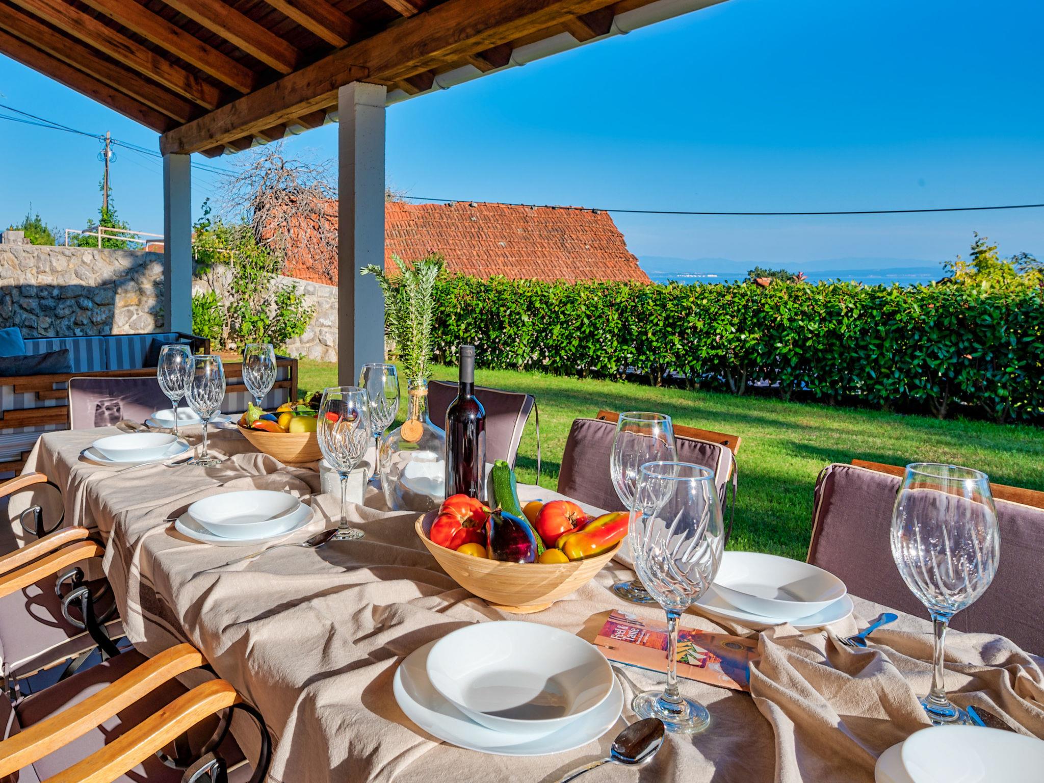 Poljane (Icici) 9 km from Opatija: Beautiful villa "Pia", 2 storeys. Above Icici, in the hamlet Jakusi 3.5 km from the centre of Icici, in a quiet, sunny, elevated position, 3.5 km from the sea, 3.5 km from the beach. Private: property 960 m2 (fenced) with lawn and wildlife garden, swimming pool angular (30 m2, depth 150 cm, seasonal availability: 01.May. - 15.Oct.) with internal staircase. Outdoor shower, terrace (50 m2), garden furniture, barbecue. In the house: internet access, table football, washing machine. Parking at the house on the premises. Shop 800 m, supermarket 5 km, restaurant 3 km, bus stop 300 m, shingle beach 3.5 km, public bathing area 3.5 km, concrete beach 3.5 km. The owner does not accept any youth groups. Organizing a party is not allowed.