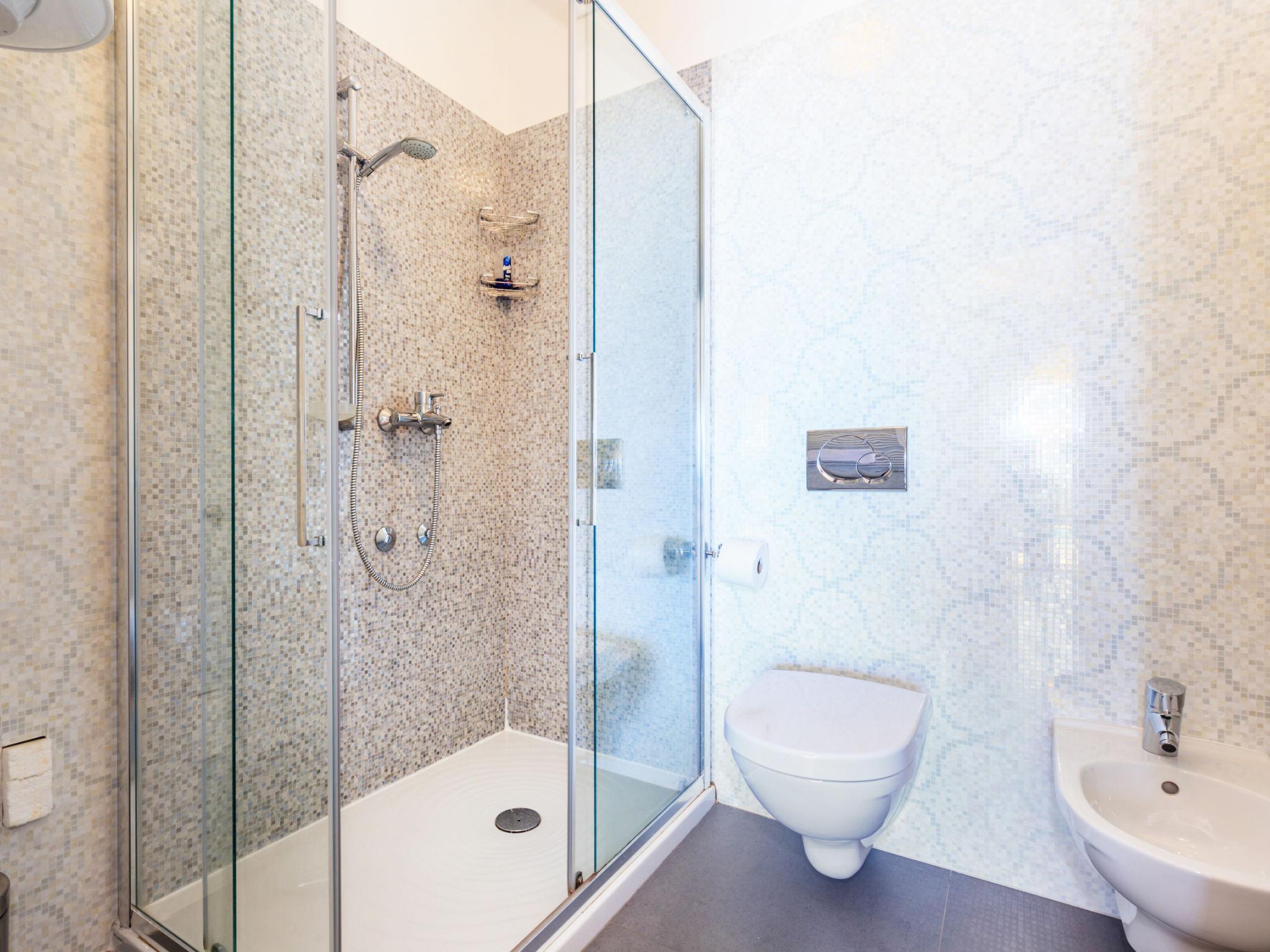 9-room semi-detached house 245 m2 on 2 levels, south facing position. Tasteful furnishings: living room 30 m2 with satellite TV (flat screen), DVD and air conditioning. Exit to the terrace. 1 room with 1 french bed (180 cm, length 200 cm), TV (flat screen). 1 room with 1 french bed (160 cm, length 200 cm), TV (flat screen). 1 room with 1 bed (90 cm, length 190 cm). 1 room with 1 french bed (180 cm, length 200 cm), shower/WC and TV (flat screen). Dining room 31 m2 with air conditioning. Exit to the terrace. Open kitchen (4 hot plates, oven, dishwasher, microwave, freezer). Shower/WC, shower/bidet/WC. Upper floor: (exterior staircase) living/dining room 60 m2 with satellite TV (flat screen), DVD and air conditioning. Exit to the balcony. 1 room with 1 french bed (180 cm, length 210 cm), TV (flat screen). Exit to the balcony. 1 room with 1 double bed (2 x 80 cm, length 200 cm), TV (flat screen). 1 room with 1 bed (90 cm, length 200 cm). Exit to the balcony. Open kitchen (4 hot plates, oven, dishwasher, freezer, electric coffee machine). Bath/bidet/WC, sep. WC. No heating option. 2 balconies 18 m2, terrace 20 m2, roofed, terrace 19 m2, roofed. Terrace furniture, barbecue, deck chairs (12), box-room. Panoramic view of the sea and the countryside. Facilities: children's high chair, baby cot. Internet (WiFi, free).