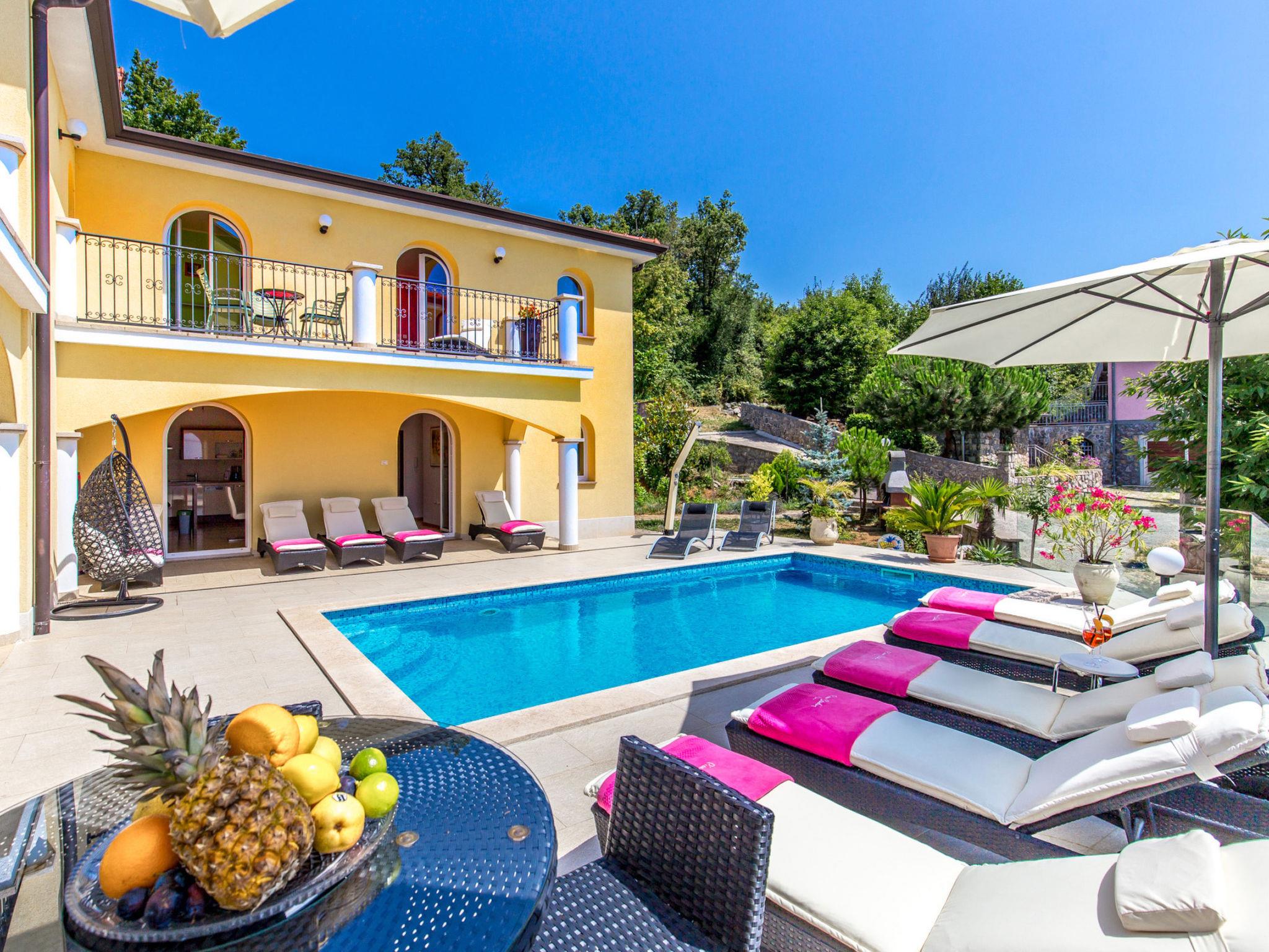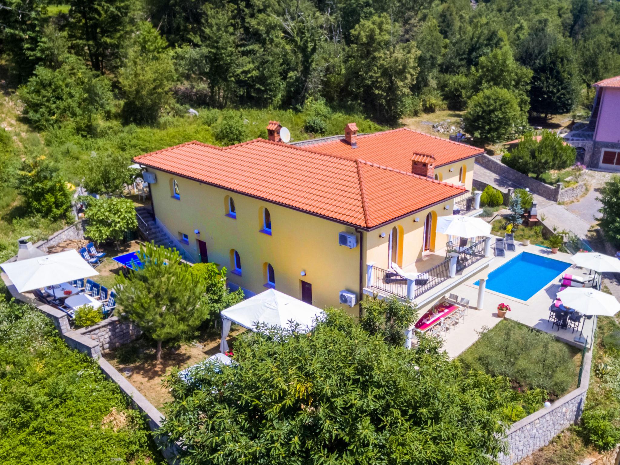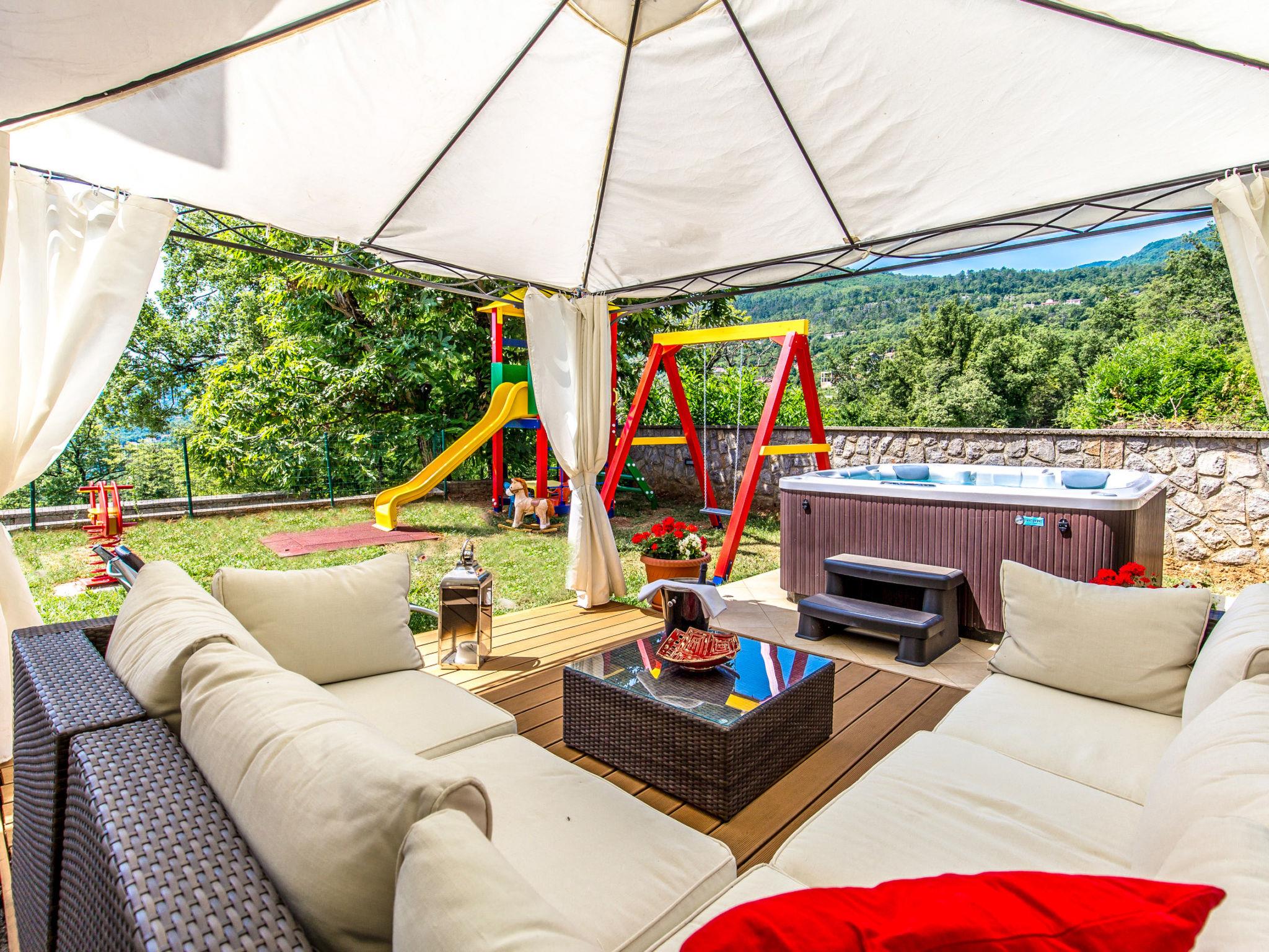 Poljane (Icici) 8 km from Opatija: Child friendly, beautiful semi-detached house "Villa Orhidea", 2 storeys. 5.5 km from the centre of Icici, in a sunny, elevated position, 5.5 km from the sea, in the countryside. Private: lawn 110 m2, swimming pool angular (7 x 3 m, 24 m2, depth 140 cm, seasonal availability: 20.Apr. - 12.Oct.) with internal staircase. Outdoor shower, hot tub, table tennis, garden furniture, barbecue, children's playground (slide, swing). In the house: internet access, washing machine, tumble dryer. Parking (for 6 cars) at the house on the premises. Shop 1.3 km, restaurant 1.4 km, bus stop 100 m, shingle beach 5.5 km, public bathing area 5.5 km, concrete beach 5.5 km. Tennis 4 km. Nearby attractions: Nature park Ucka 8 km. Groups of teenagers on request only. Outdoor whirlpool with water temperature till 40°C.