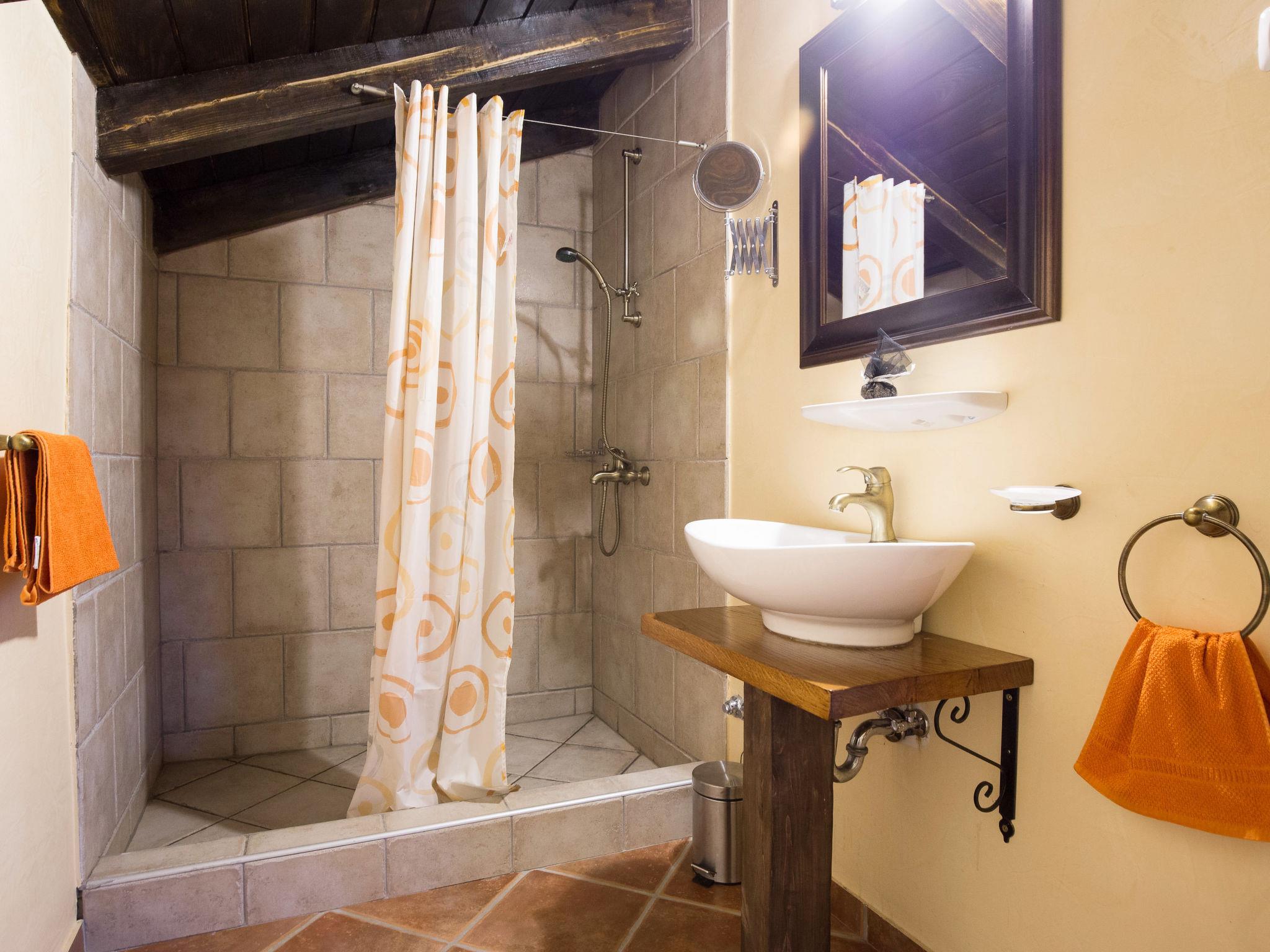 7-room house 390 m2 on 2 levels. Living/dining room with open-hearth fireplace and satellite TV (flat screen). Exit to the balcony. 1 room with 1 double bed and shower/WC. Living/dining room with open-hearth fireplace and satellite TV (flat screen). Open kitchen (4 hot plates, dishwasher, freezer, electric coffee machine). Sep. WC. Upper floor: 1 room with 1 double bed, shower/WC and air conditioning. 1 room with 1 french bed (180 cm, length 200 cm), shower/WC and air conditioning. 1 room with 2 beds and air conditioning. 1 open room with 1 double sofabed, shower/WC and air conditioning. Shower/WC. Balcony, terrace 40 m2, roofed. Terrace furniture, deck chairs. Distant view of the sea. Facilities: safe, iron, baby cot. Internet (WiFi, free). Maximum 1 pet/ dog allowed. First house with living/dining room, open kitchen, sleeping room on the ground floor and 3 sleeping rooms on the upper floor. Second house with living/dining room on the ground floor and 1 sleeping room on the upper floor.