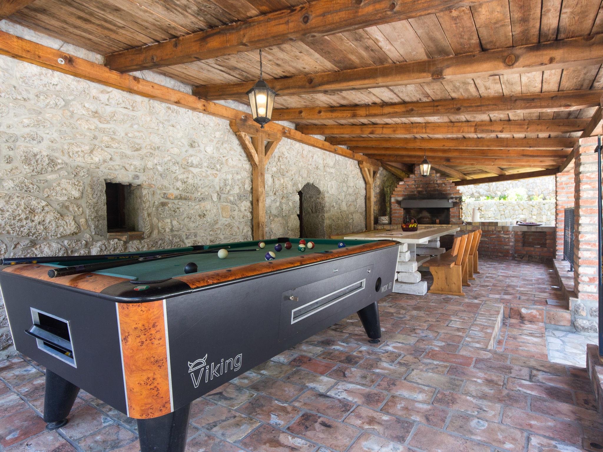 Single-family house "Natura", 2 storeys. Above Icici, in the hamlet Puhari 9 km from the centre of Lovran, 8 km from the centre of Icici, 9 km from the centre of Opatija, 8 km from the sea. Private: property 4'200 m2 with lawn and trees, swimming pool (24 m2, depth 120 cm, seasonal availability: 02.May. - 07.Oct.). Outdoor shower, terrace, garden furniture, barbecue. In the house: internet access, billiard table, trampoline, washing machine. Parking (for 4 cars) on the premises. Shop 4 km, supermarket 8 km, bus stop 1 km, pebble beach 8 km. The owner does not accept any youth groups. The unit consists of 2 houses rented as one unit.