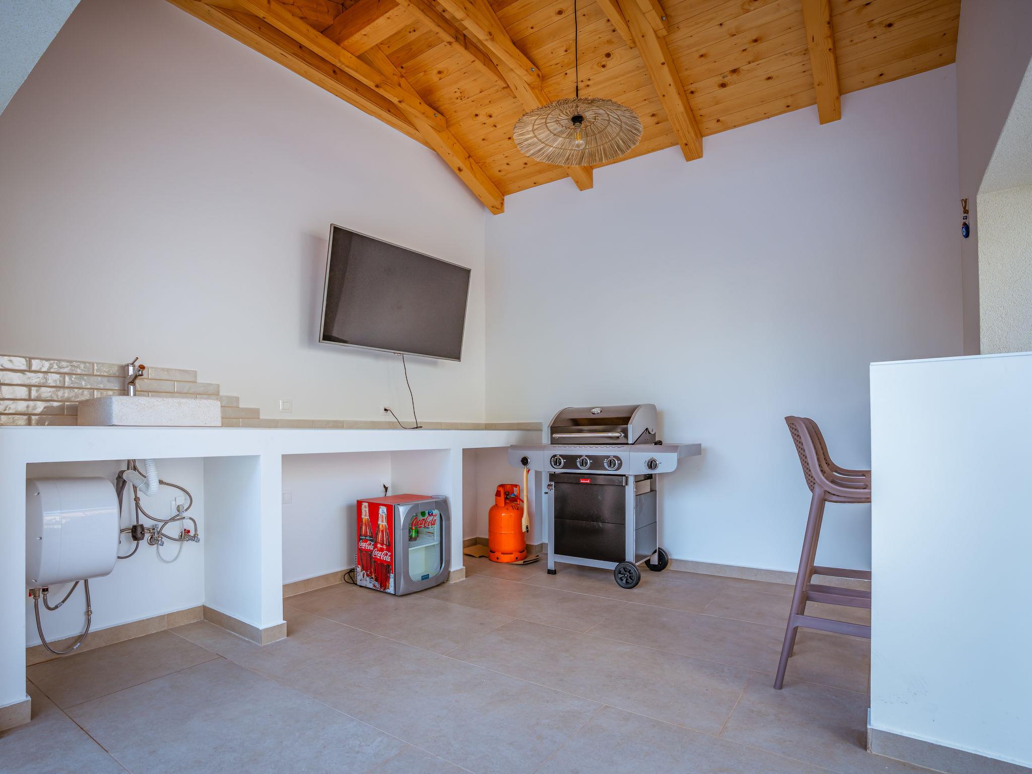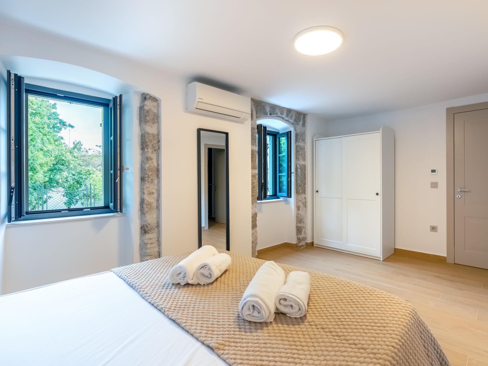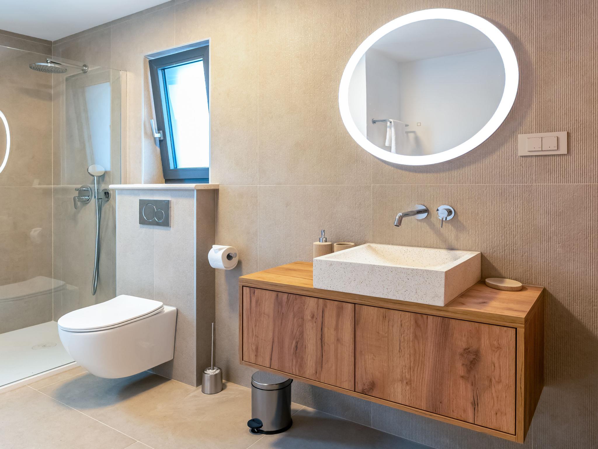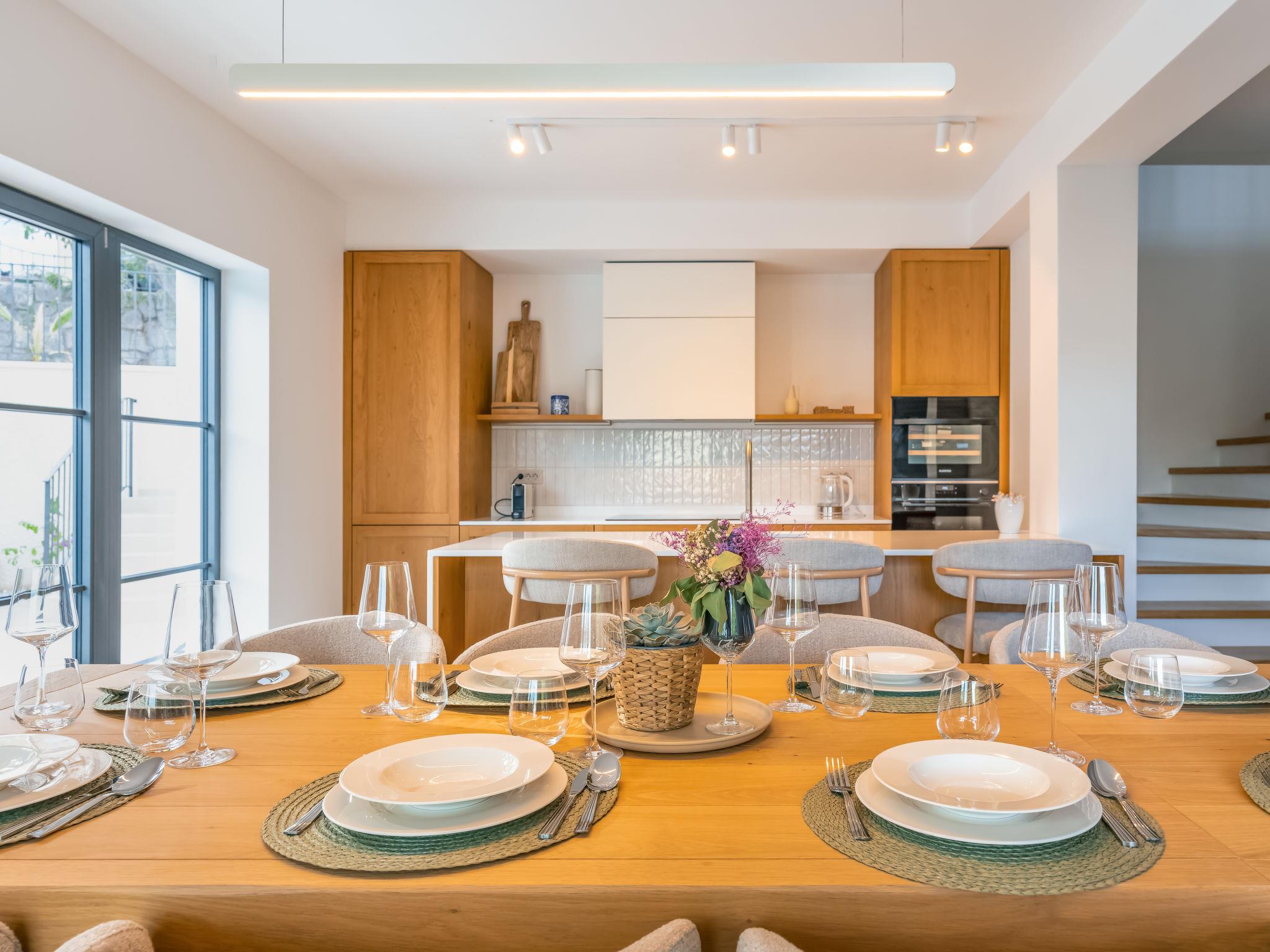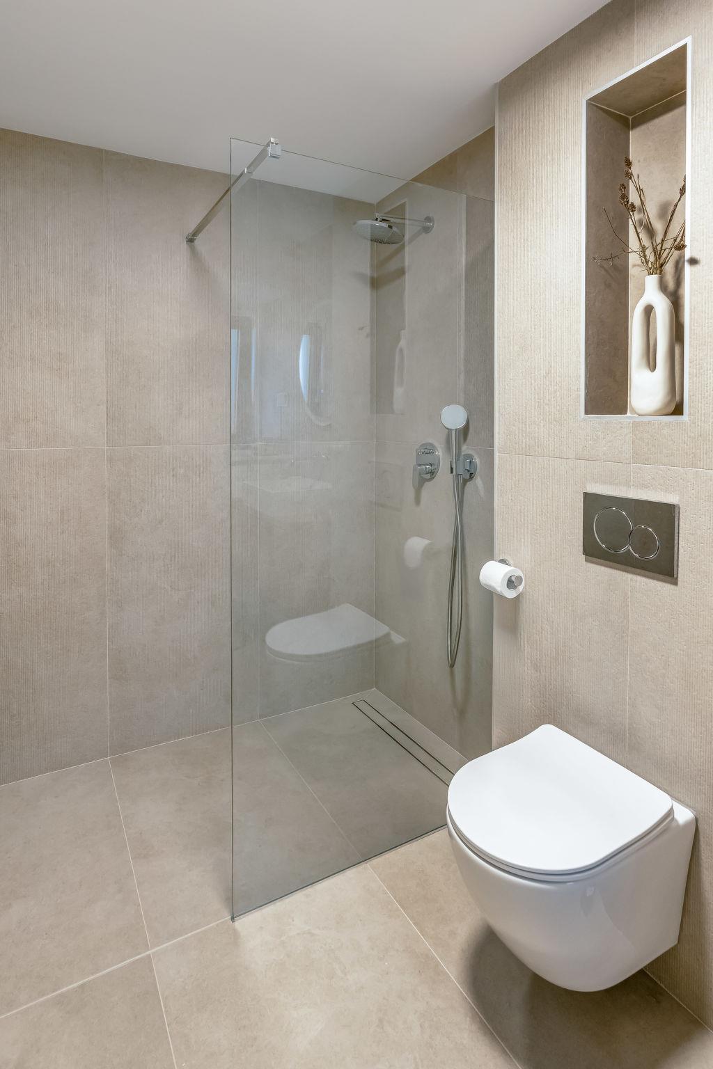 5-room villa 160 m2 on 2 levels, south facing position. Beautiful and tasteful furnishings: living/dining room with panoramic window with satellite TV (flat screen), air conditioning. Exit to the terrace, to the swimming pool. 1 room with 1 french bed (160 cm, length 200 cm), shower/WC and air conditioning. Open kitchen (oven, dishwasher, 5 induction hot plates, toaster, kettle, freezer, electric coffee machine). Exit to the terrace. Sep. WC. Upper floor: 1 room with Dressing room with 1 french bed (180 cm, length 200 cm), shower/WC and satellite TV (flat screen), air conditioning. 1 room with 1 french bed (180 cm, length 200 cm), satellite TV (flat screen), air conditioning. 1 room with 1 bed (80 cm, length 200 cm), 1 pull-out bed (length 200 cm). Shower/WC. Floor heating, forced-air heating. Large terrace 40 m2 partly roofed terrace 30 m2, roofed. Terrace furniture, barbecue (portable), deck chairs (4). Beautiful panoramic view of the sea and the forest. Facilities: hair dryer. Internet (WiFi, free). Please note: non-smoking house. Maximum 1 small pet/ dog allowed. Fire extinguisher.