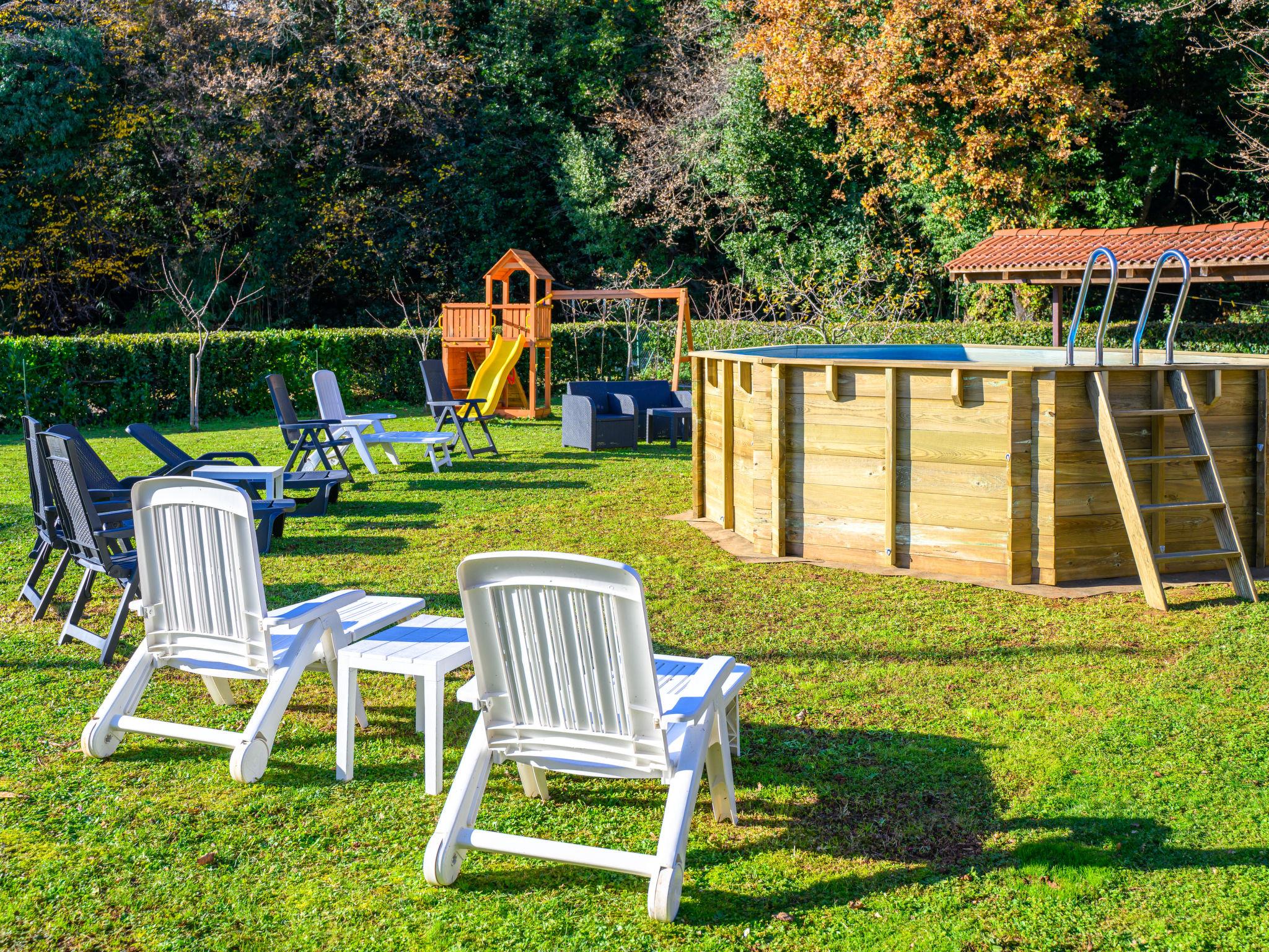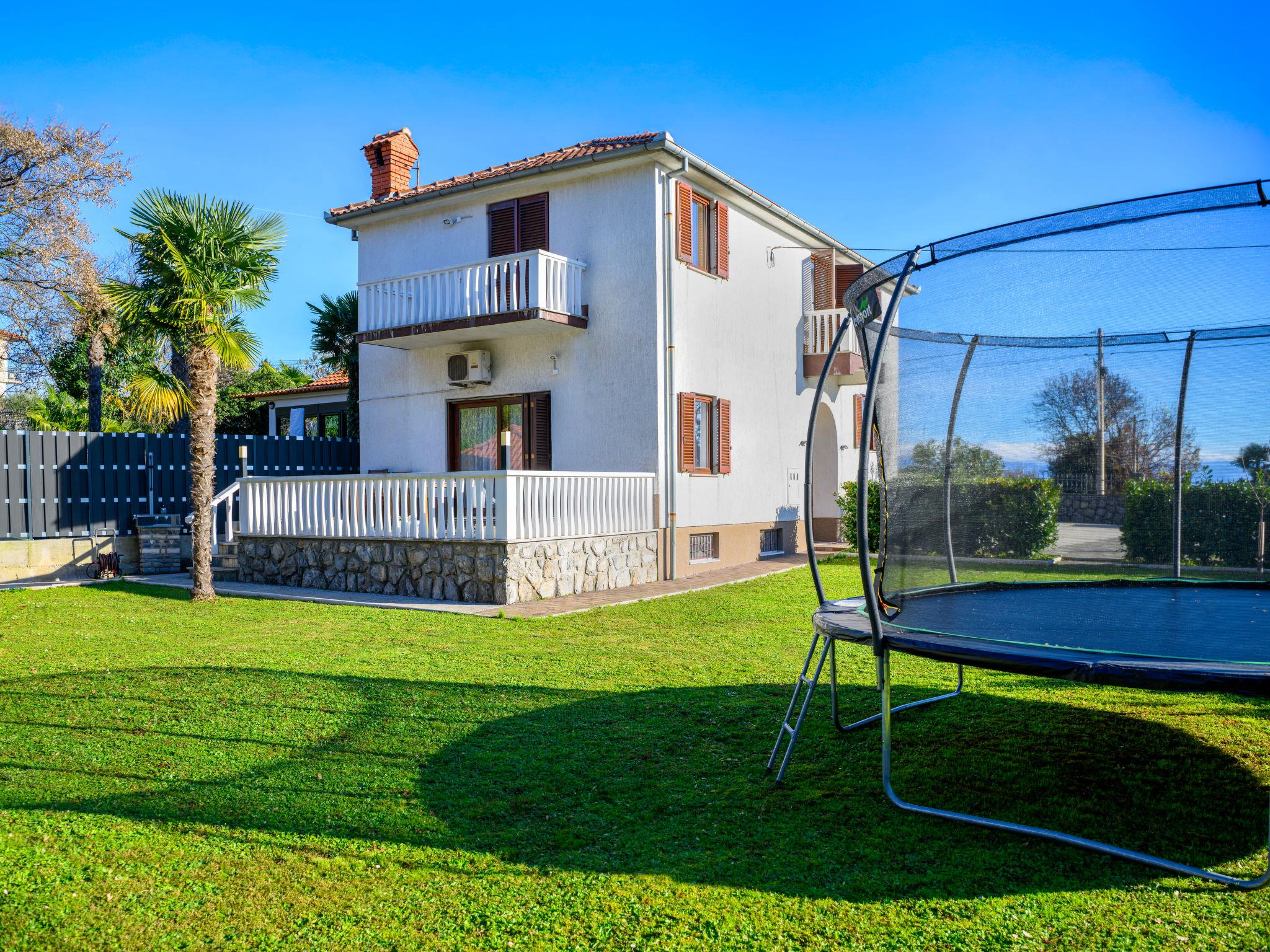 Ika 5 km from Opatija: 2-family house "Lara". 500 m from the centre of Ika, 2 km from the centre of Lovran, in an elevated position, 600 m from the sea, 600 m from the beach. Private: property 1'000 m2 with lawn 750 m2 flowers, swimming pool (above ground) (5 m diameter, depth 130 cm, seasonal availability: 30.May. - 01.Oct.) with salt-electrolysis pool-cleaning system. Unconventional pool shape. Outdoor shower, terrace (24 m2), garden furniture, barbecue, children's playground (slide, swing), pool maintenance by the owner/gardener. In the house: internet access. Parking (for 2 cars) at the house on the premises. Shop 600 m, supermarket 750 m, restaurant, café, bus stop, pebble beach 600 m. Please note: suitable for families.