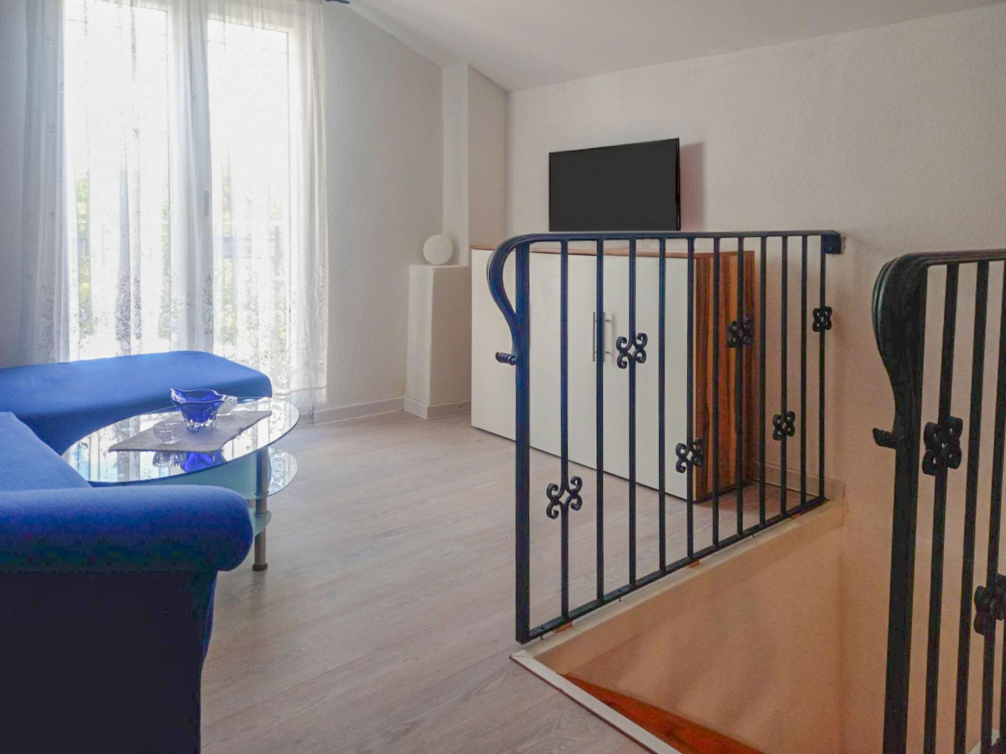2-room house 60 m2 on 2 levels. Living room with 1 sofabed (100 cm, length 200 cm), cable TV. Exit to the balcony. 1 room with sliding door with 1 french bed (140 cm, length 200 cm), air conditioning. On the lower ground floor: open kitchen (4 hot plates, oven, dishwasher, freezer, electric coffee machine). Shower/WC. No heating option. Balcony furniture. View of the countryside. Facilities: washing machine. Internet (WiFi, free). Parking (1 car). Please note: non-smoking house. 1 small pet/ dog allowed.