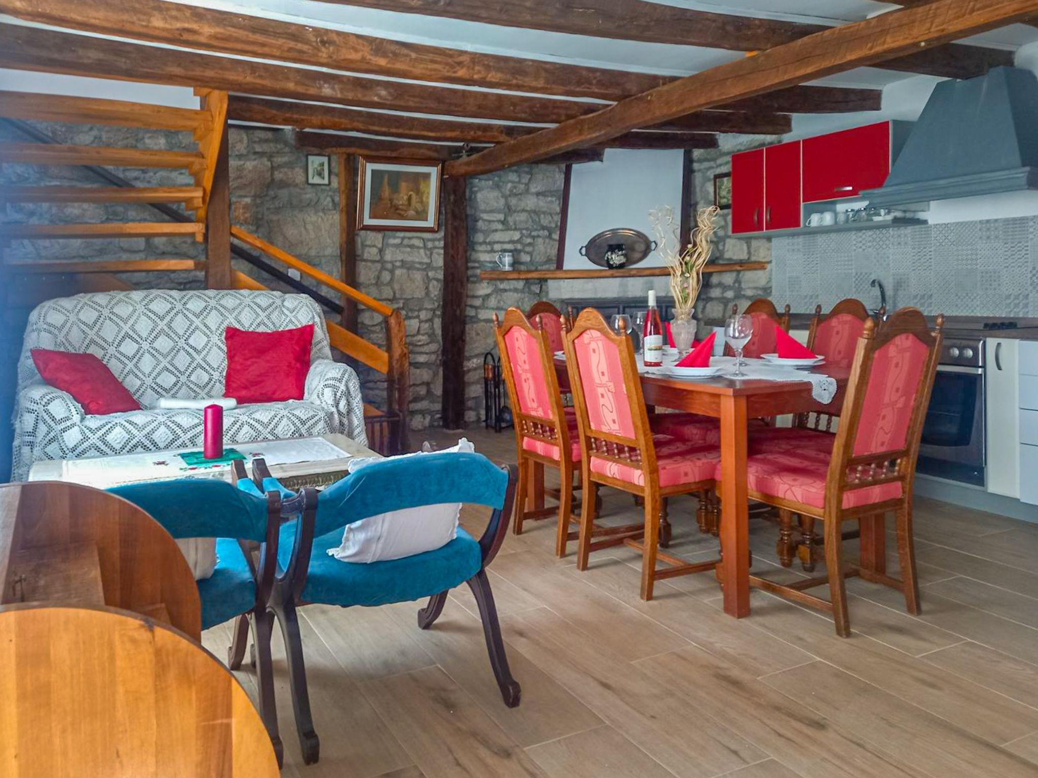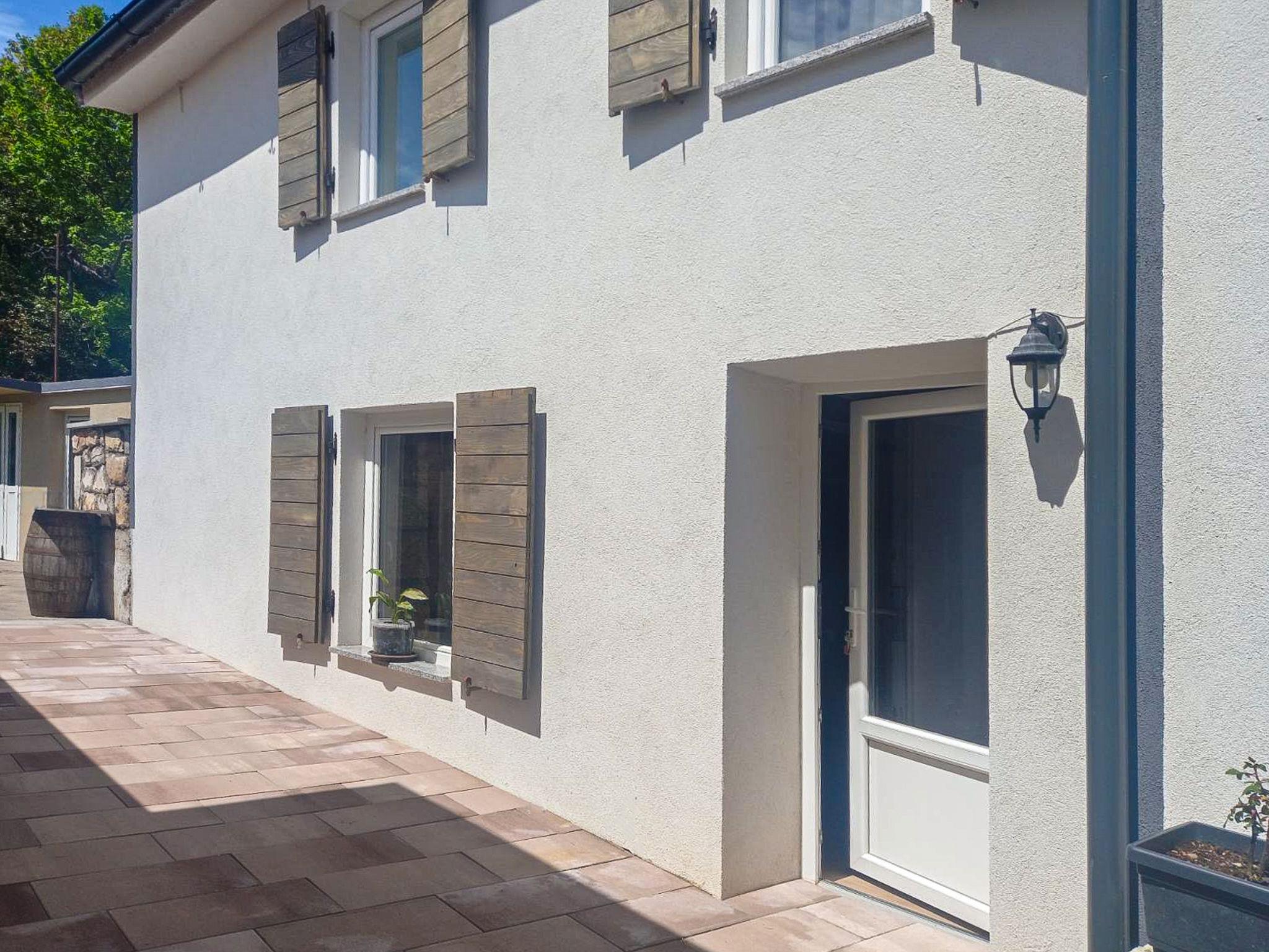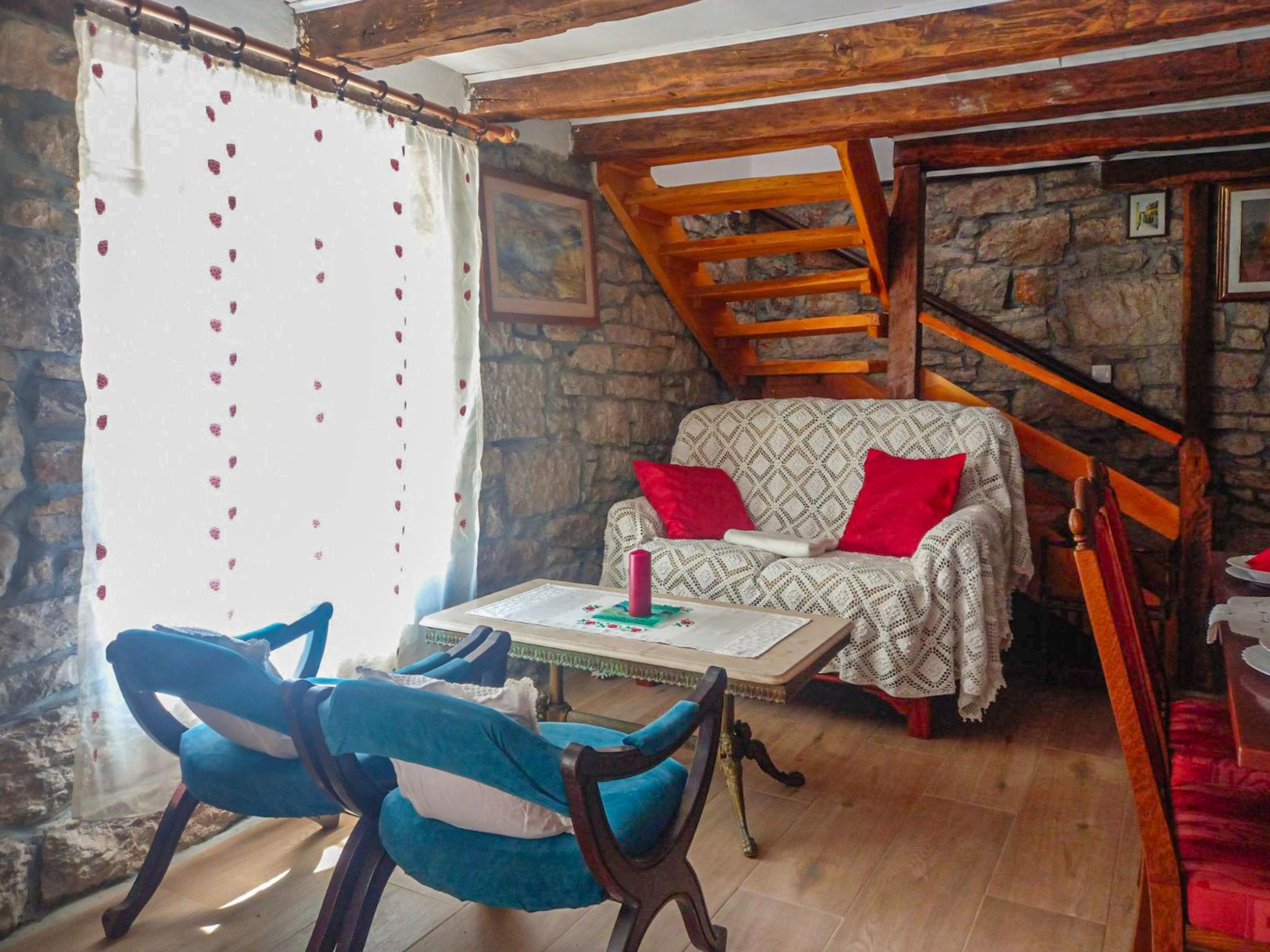 Child friendly semi-detached house "Rustical", 2 storeys, built in 1885, renovated in 2023. In the hamlet Jurdanici 150 m from the centre of Jurdani, 3 km from the centre of Matulji, 7.5 km from the centre of Opatija, in a quiet, sunny position, 6 km from the sea. For shared use: property 1'170 m2 (fenced) with lawn 200 m2, trees. Terrace (16 m2), garden furniture, barbecue, children's playground. In the house: internet access, washing machine. Parking at the house on the premises. Shop 600 m, supermarket 3.5 km, restaurant 2 km, bus stop 750 m, pebble beach 6 km, concrete beach 6 km.