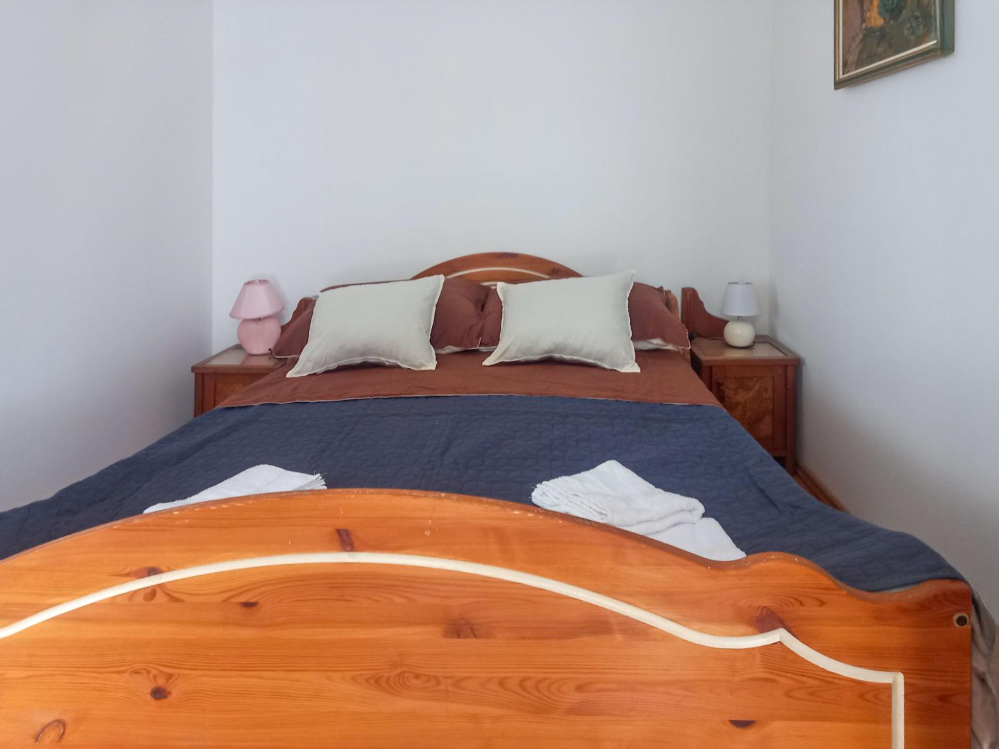 3-room semi-detached house 70 m2 on 2 levels. Living/dining room with 1 sofabed (100 cm, length 200 cm), open-hearth fireplace (only for decoration), cable TV and air conditioning. Open kitchen (4 hot plates, oven, dishwasher, kettle, freezer, electric coffee machine). Sep. WC. Upper floor: 1 room with 1 french bed (140 cm, length 200 cm). 1 room with 1 french bed (160 cm, length 200 cm). Exit to the terrace. Shower/WC. No heating option. Terrace 14 m2 partly roofed. Terrace furniture. View of the countryside. Facilities: washing machine. Internet (WiFi, free). Parking (1 car). Please note: suitable for families. Non-smoking house. 1 small pet/ dog allowed.