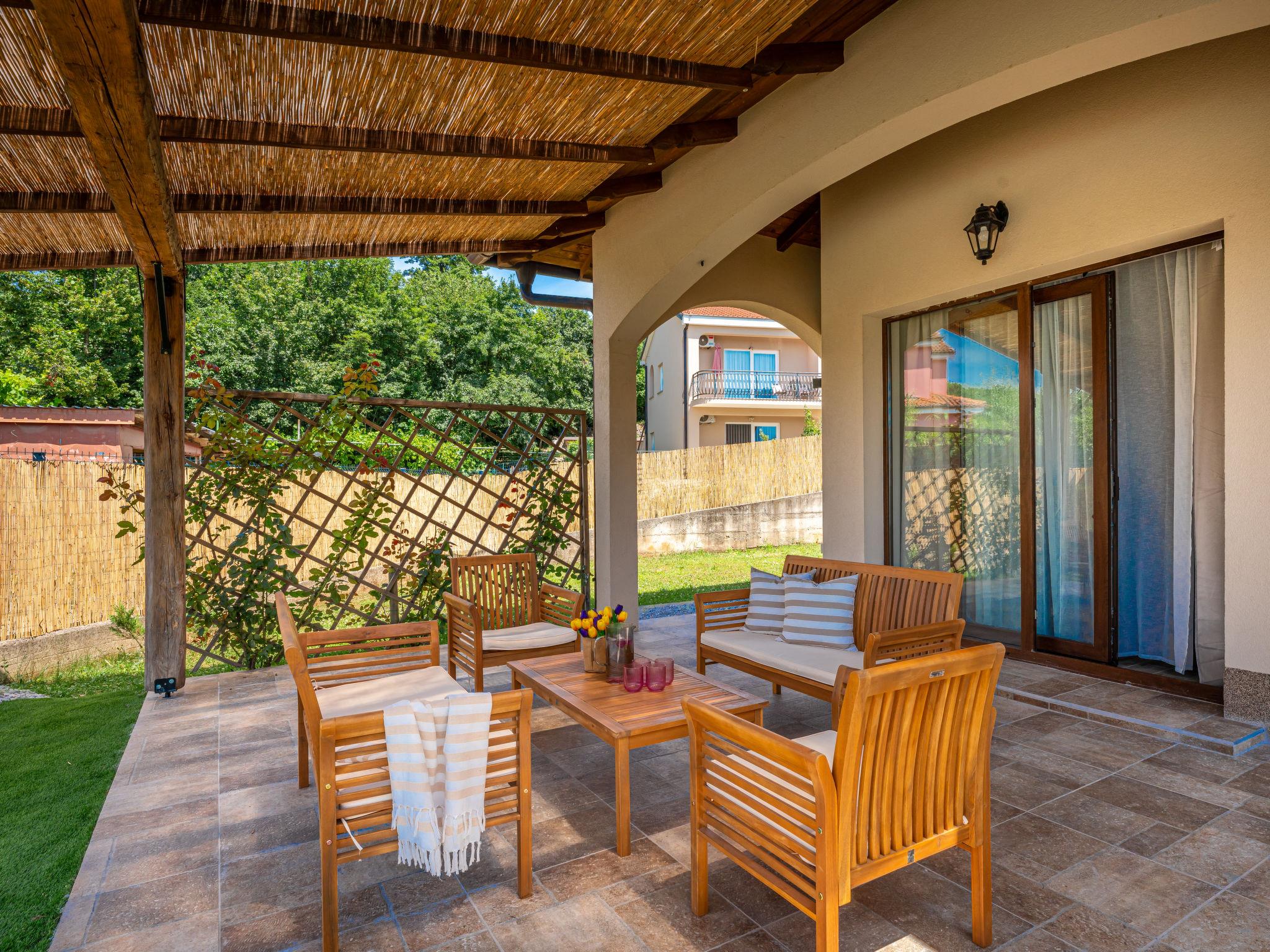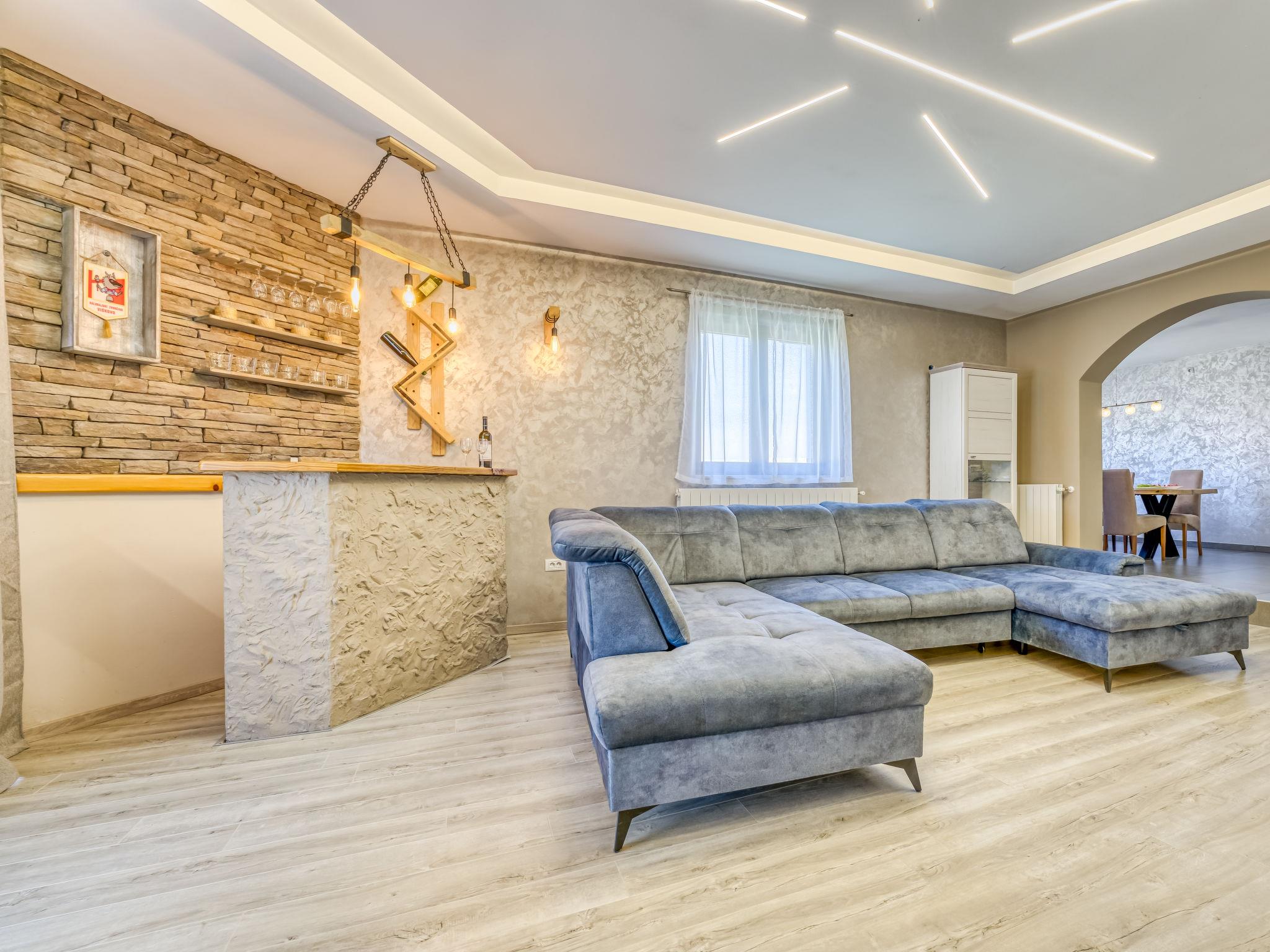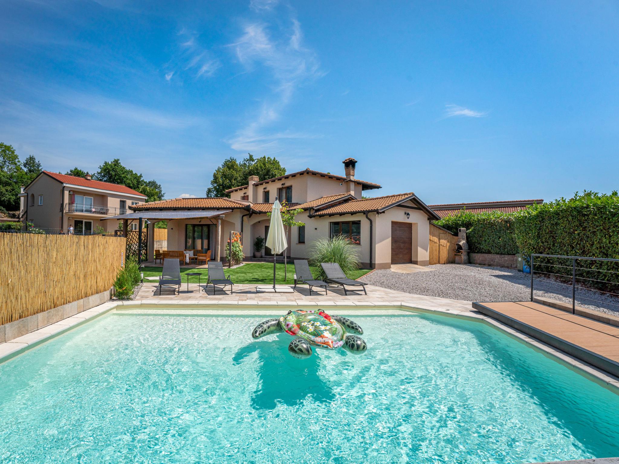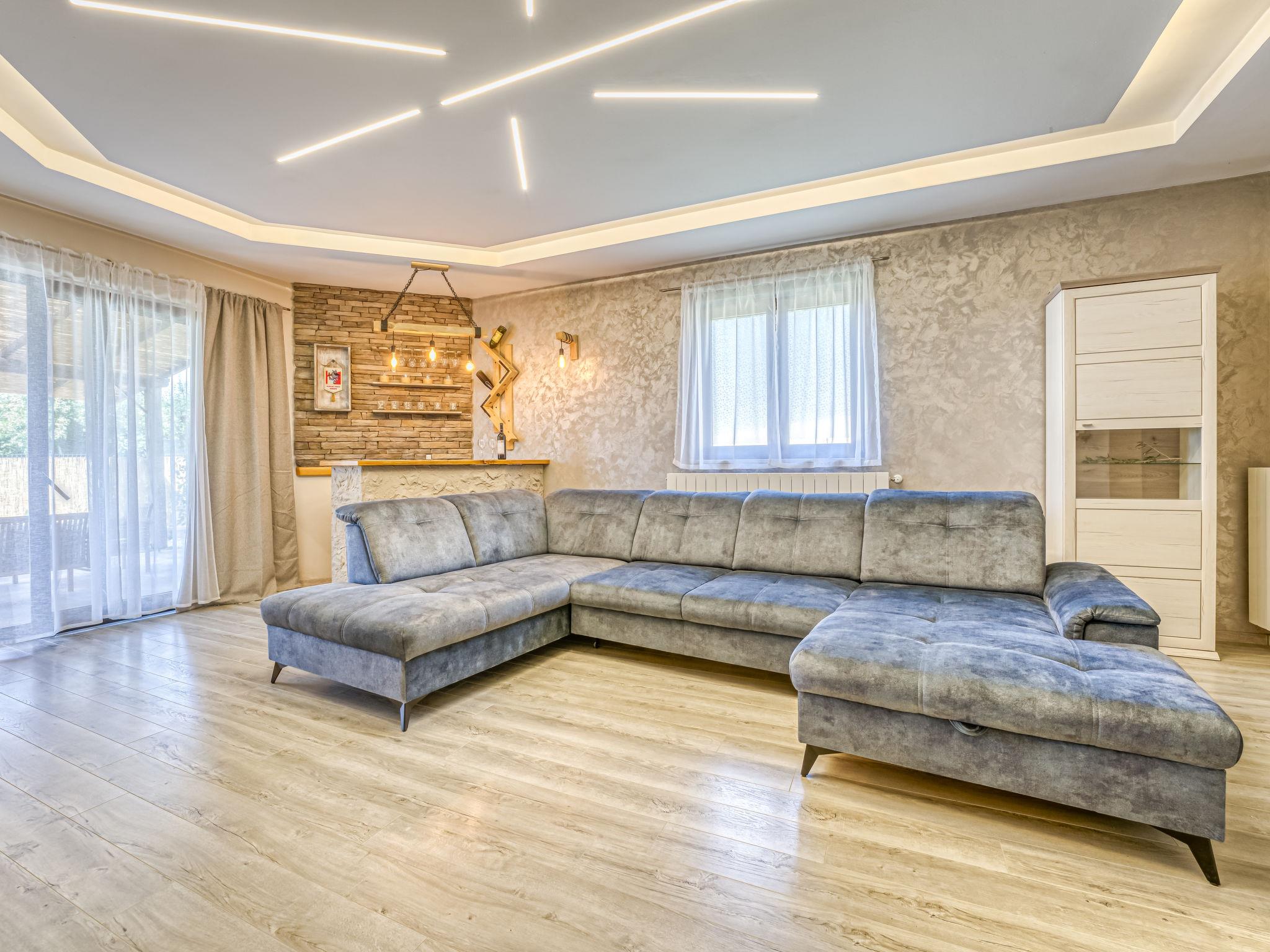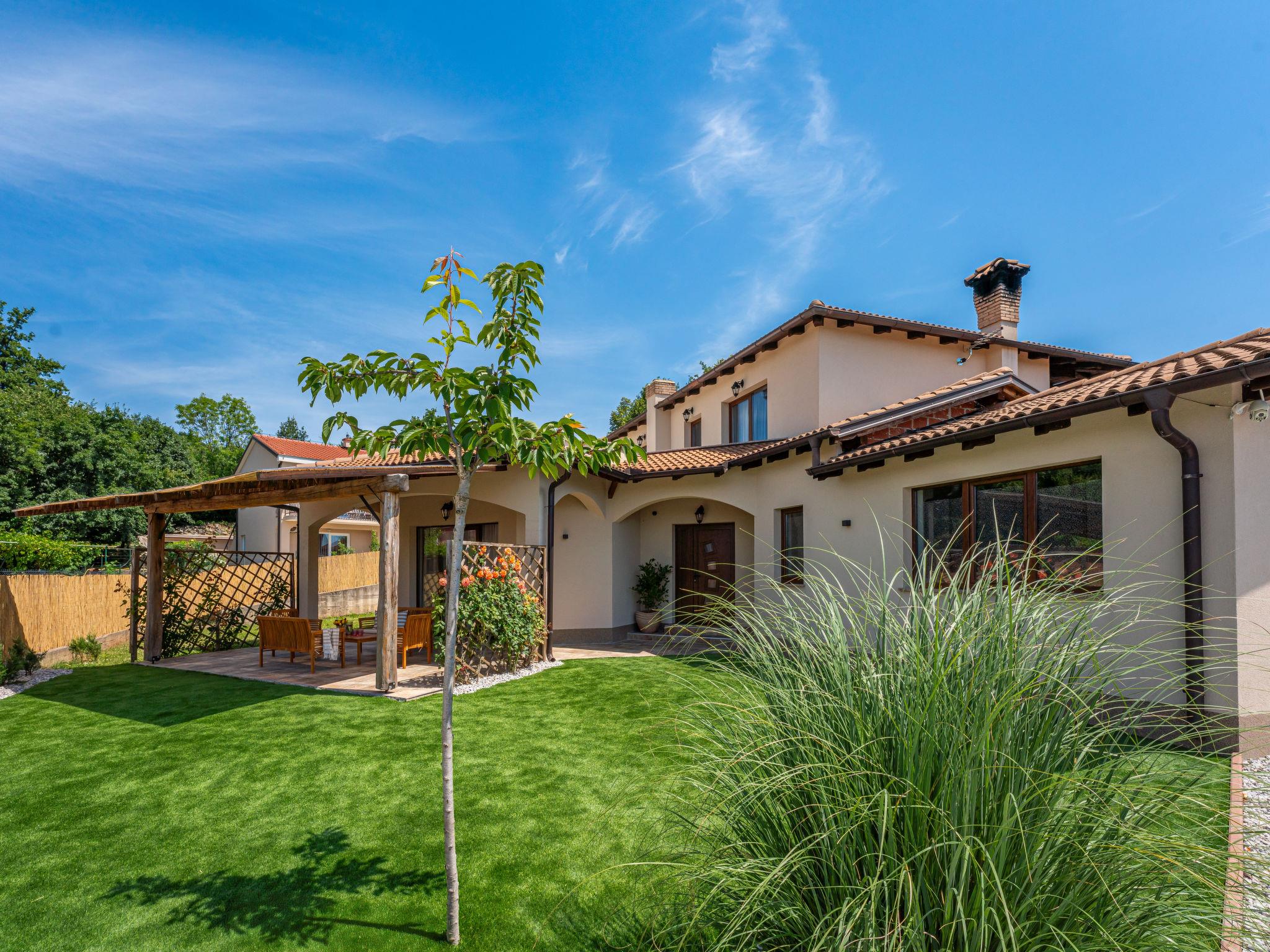 Kastav 6 km from Opatija: Comfortable single-family house "Campanero", 2 storeys, built in 2023. In the hamlet Kudeji 2.4 km from the centre of Viškovo, 3.7 km from the centre of Kastav, 9 km from the centre of Opatija, in a sunny, elevated position, 8 km from the sea, 8 km from the beach, in a cul-de-sac. Private: property 900 m2 (fenced), garden with lawn 300 m2, swimming pool angular (6 x 6 m, depth 140 cm, seasonal availability: 01.Jun. - 30.Sep.). WC in the pool area, outdoor shower, terrace, garden furniture. In the house: internet access. Parking at the house on the premises. Supermarket 2.4 km, shopping centre 2.4 km, restaurant 1.8 km, bakery 2.4 km, café 2.4 km, bus stop 160 m, pebble beach 8 km (small), outdoor swimming pool 10 km, indoor swimming pool 10 km, public bathing area 10 km, concrete beach 8 km. Nearby attractions: Kuca halubajskega zvoncara UNESCO 2 km. Groups of teenagers on request only. Part of the house is closed and unoccupied. The owner runs dry dock marine services. By groups of young people double deposit is requested on arrival.