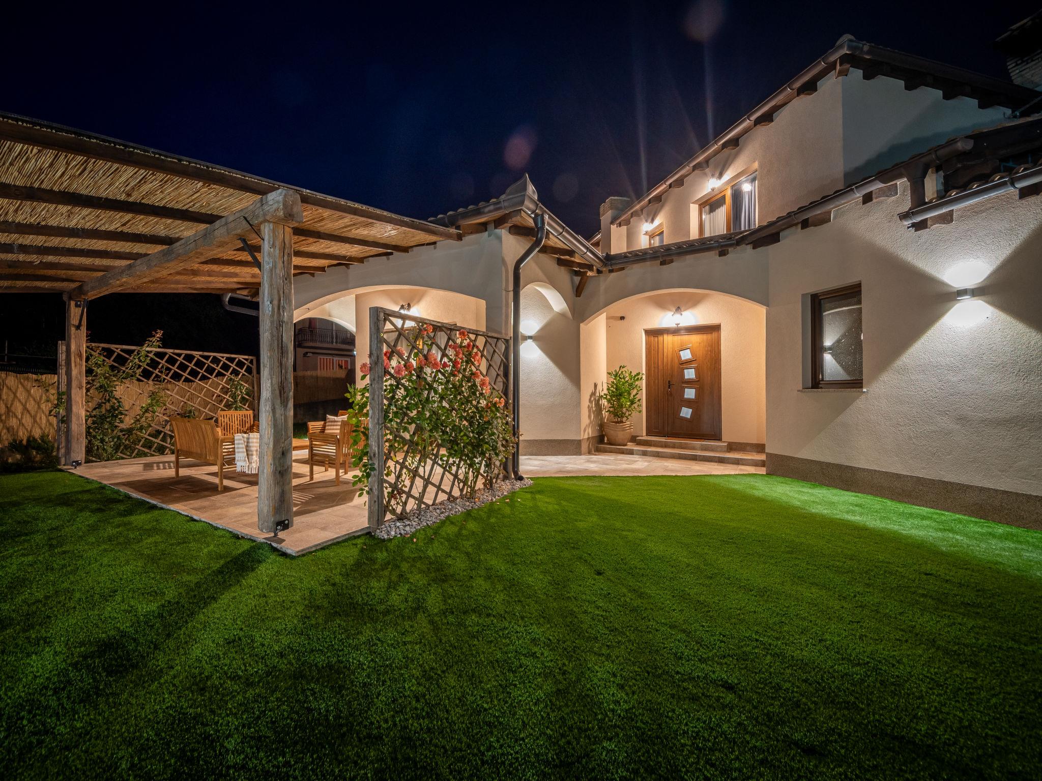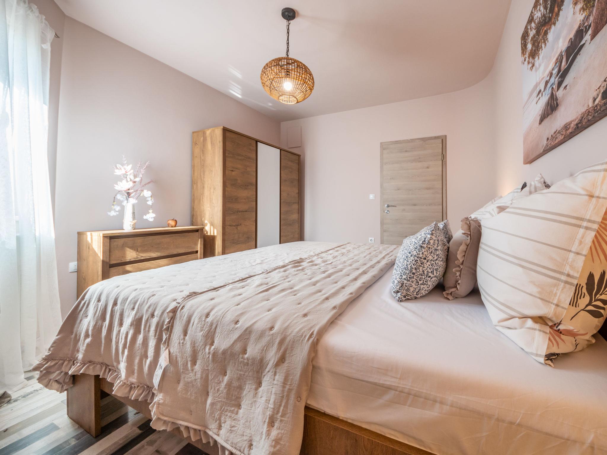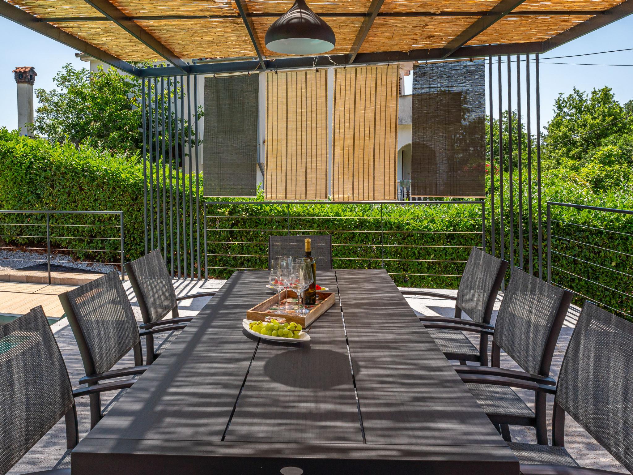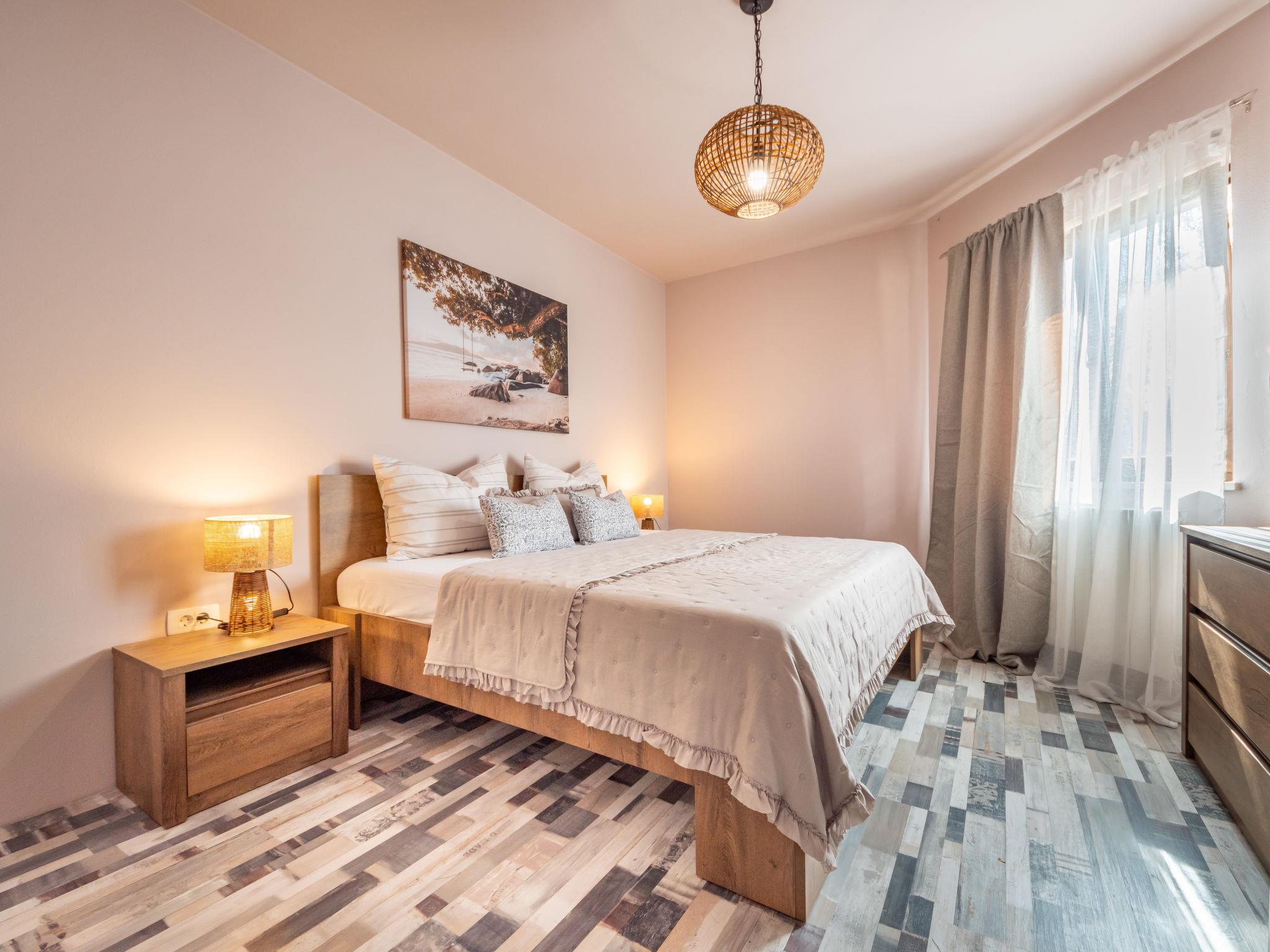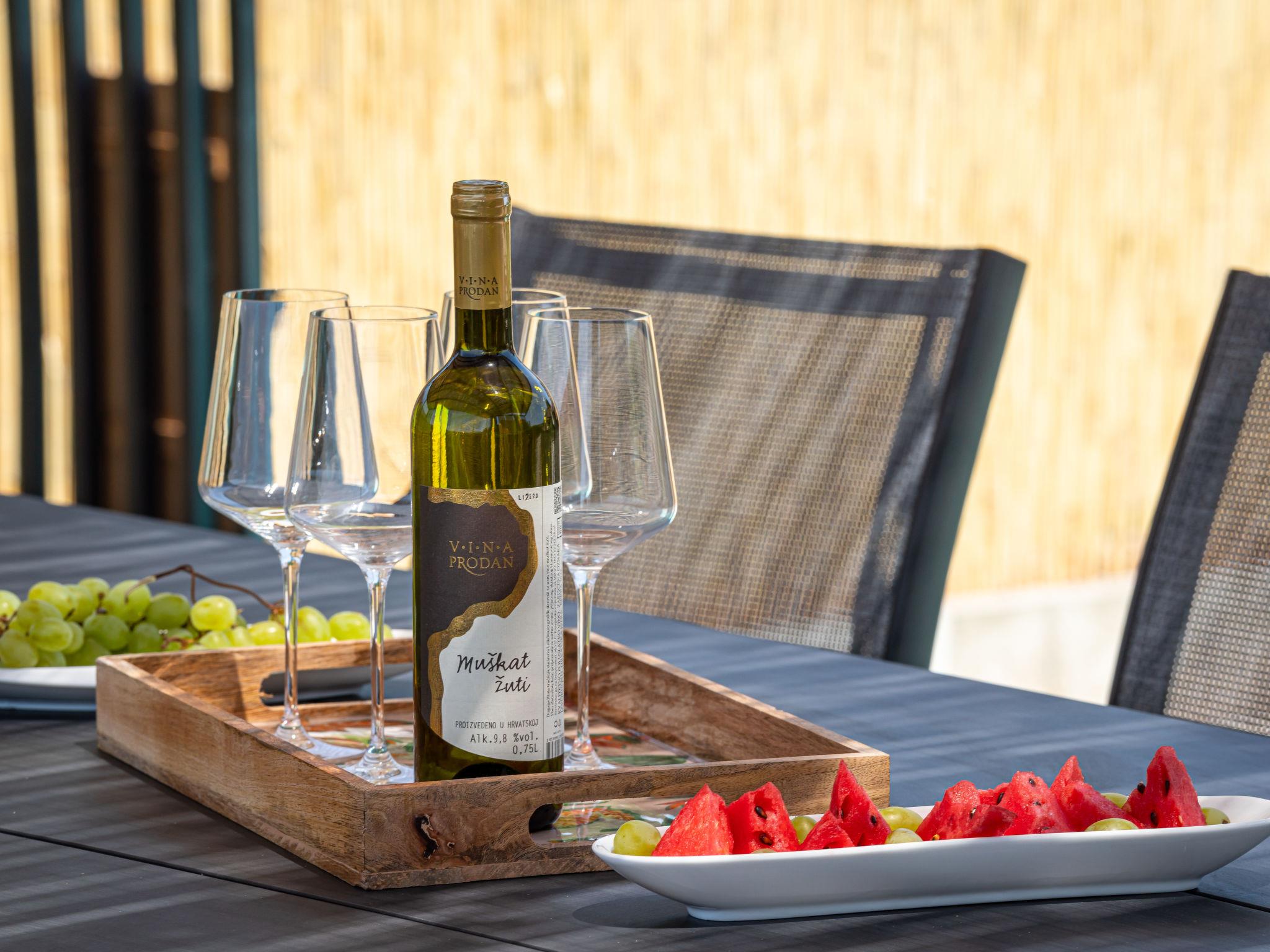 Kastav 6 km from Opatija: Comfortable single-family house "Campanero", 2 storeys, built in 2023. In the hamlet Kudeji 2.4 km from the centre of Viškovo, 3.7 km from the centre of Kastav, 9 km from the centre of Opatija, in a sunny, elevated position, 8 km from the sea, 8 km from the beach, in a cul-de-sac. Private: property 900 m2 (fenced), garden with lawn 300 m2, swimming pool angular (6 x 6 m, depth 140 cm, seasonal availability: 01.Jun. - 30.Sep.). WC in the pool area, outdoor shower, terrace, garden furniture. In the house: internet access. Parking at the house on the premises. Supermarket 2.4 km, shopping centre 2.4 km, restaurant 1.8 km, bakery 2.4 km, café 2.4 km, bus stop 160 m, pebble beach 8 km (small), outdoor swimming pool 10 km, indoor swimming pool 10 km, public bathing area 10 km, concrete beach 8 km. Nearby attractions: Kuca halubajskega zvoncara UNESCO 2 km. Groups of teenagers on request only. Part of the house is closed and unoccupied. The owner runs dry dock marine services. By groups of young people double deposit is requested on arrival.