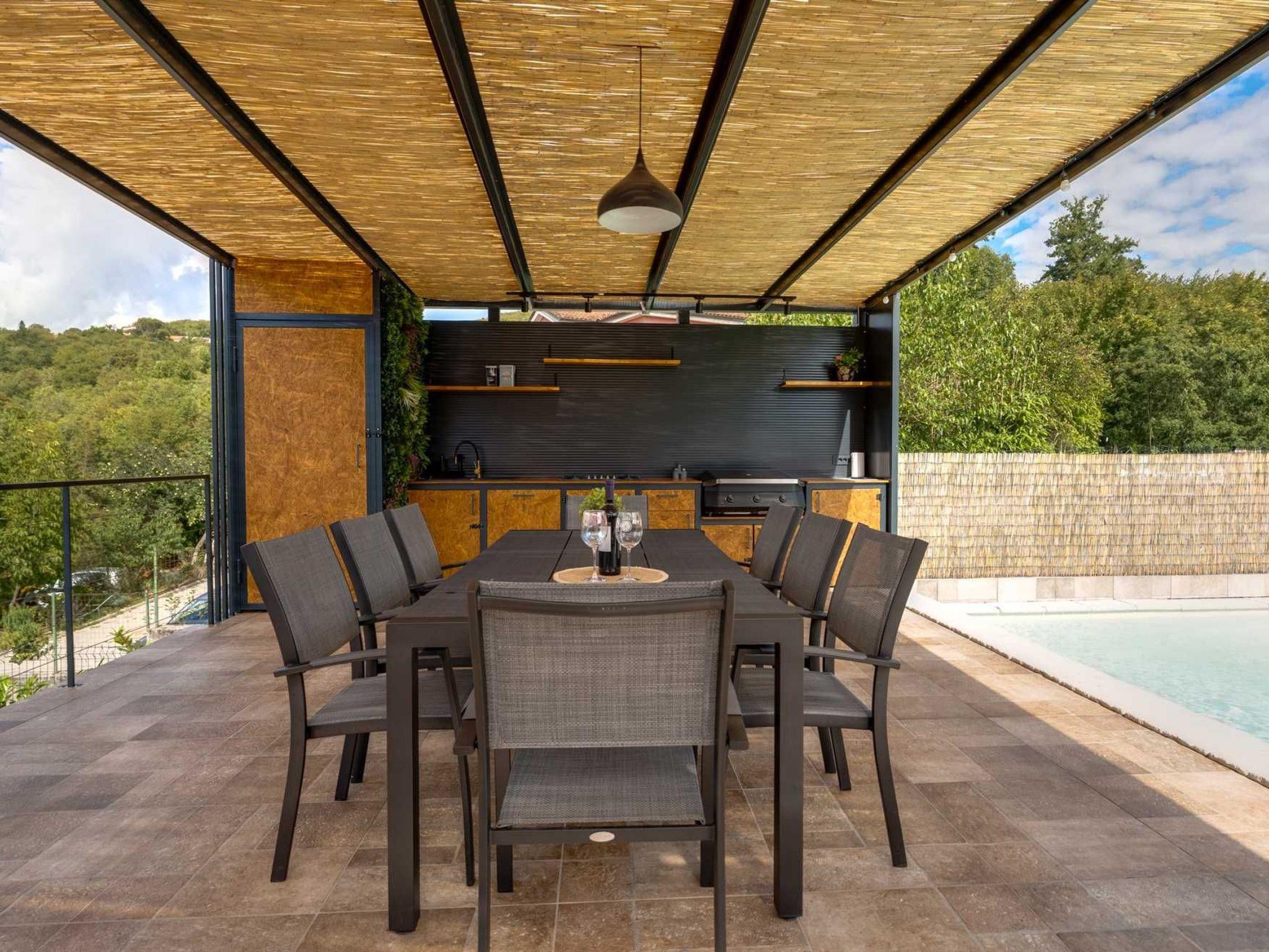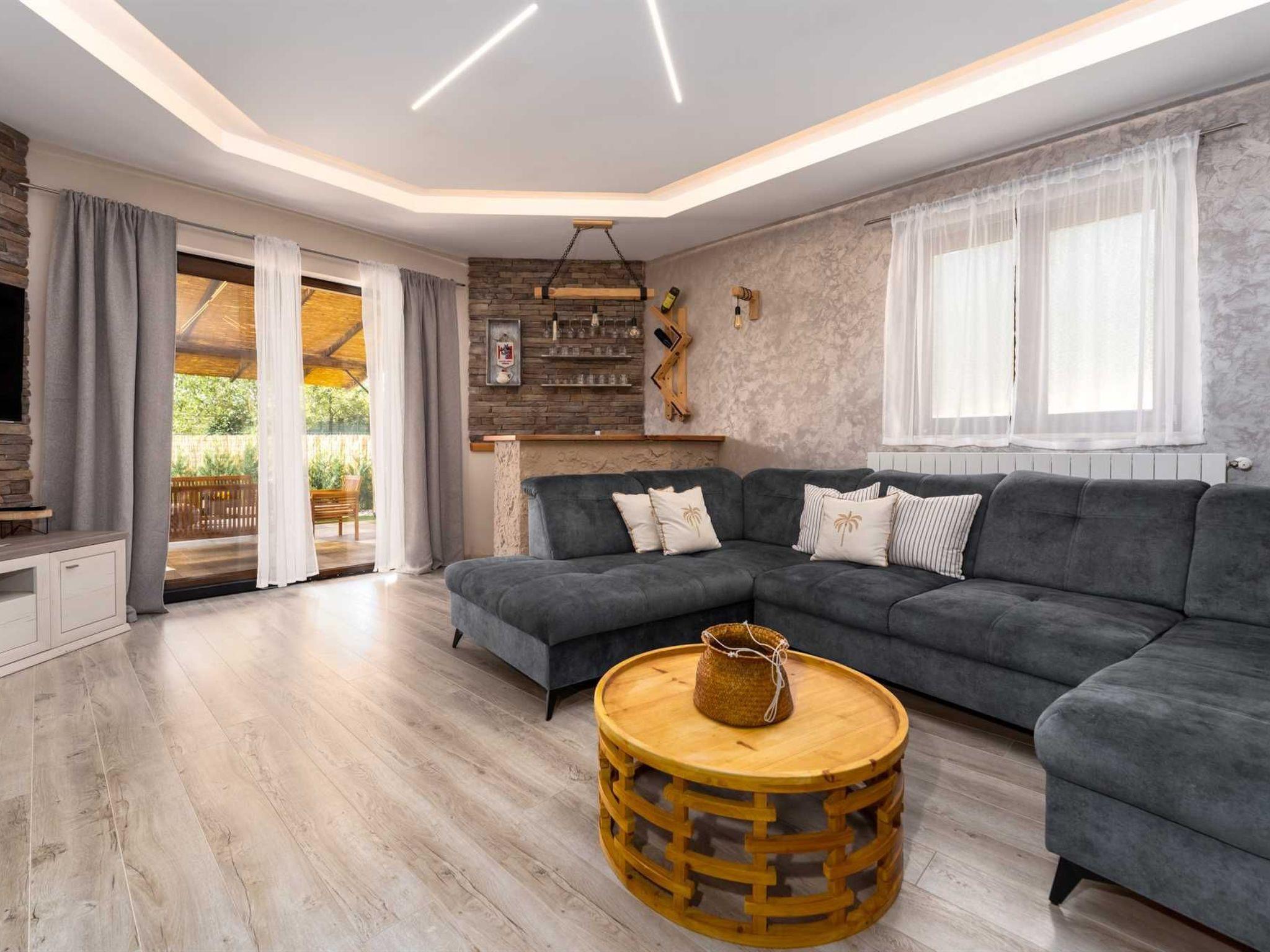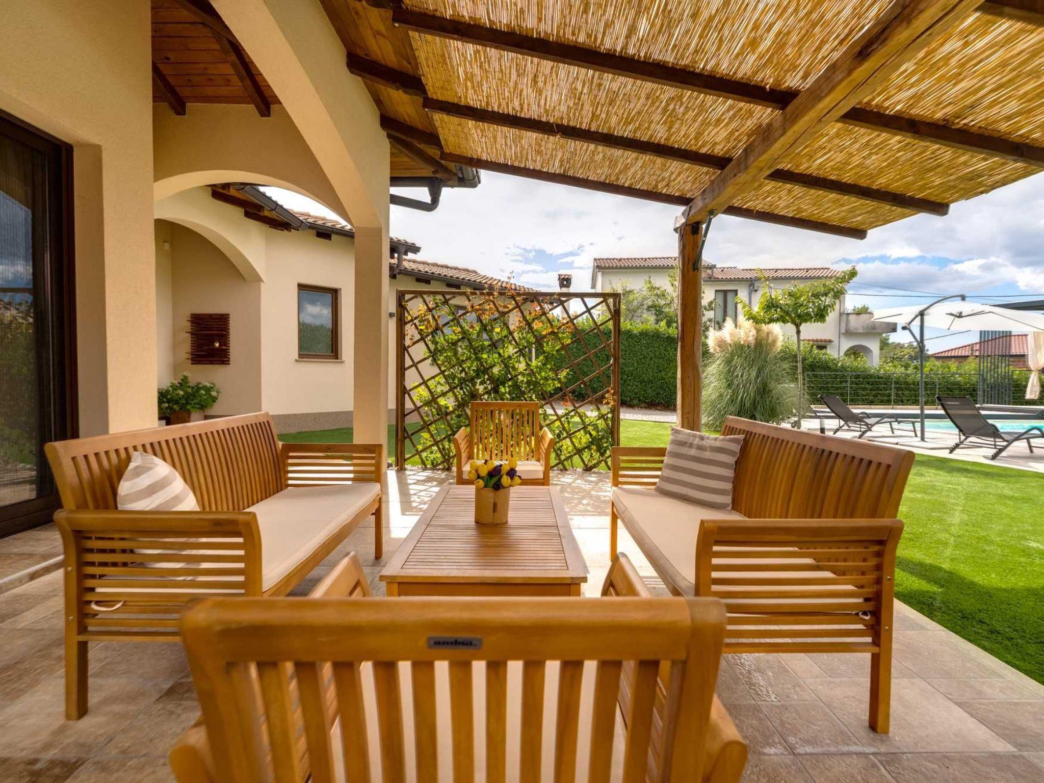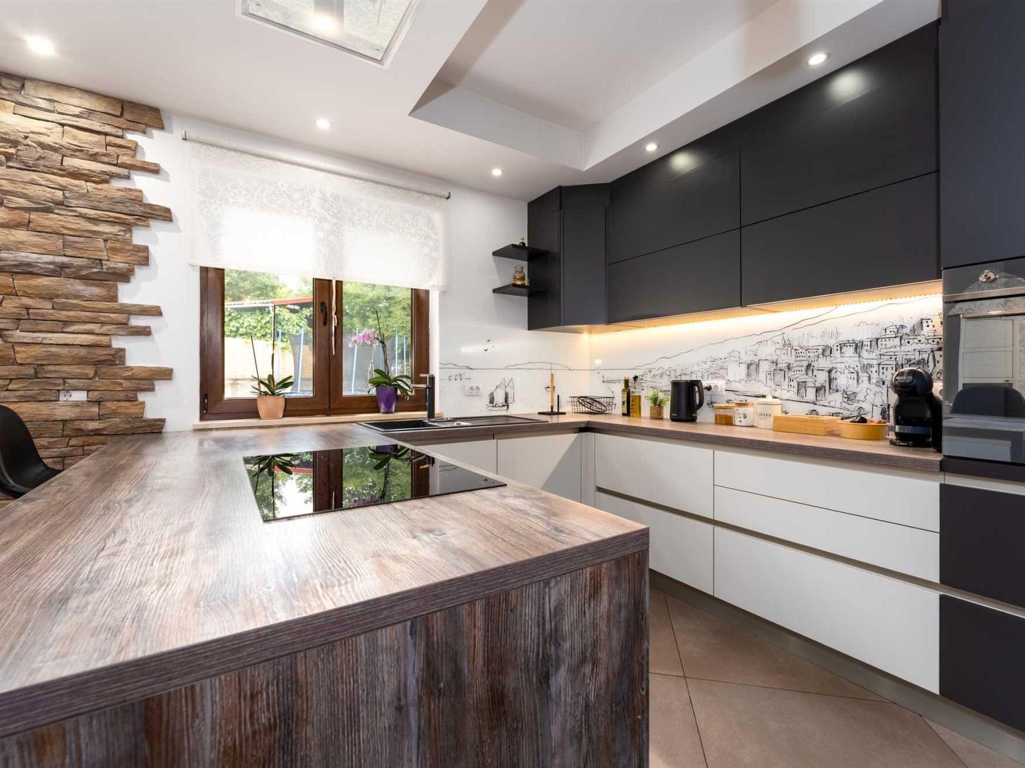 For your next holidays, book this spacious and beautifully decorated 4-bedroom villa with 2 bathrooms, one on each floor. Perfect for family holidays, gatherings with friends, or anyone looking to unwind in style. Whether you're cooking, relaxing, or swimming, this holiday home offers everything you need to make every moment special. Relax on sunbeds under sun umbrellas, enjoy outdoor meals on the shaded terrace with garden furniture, or host unforgettable gatherings in the BBQ house. Another stunning covered terrace of 30 m² with distant views of historic town Kastav. And another huge terrace on the upper floor, accessible from 2 bedrooms and a hallway.
