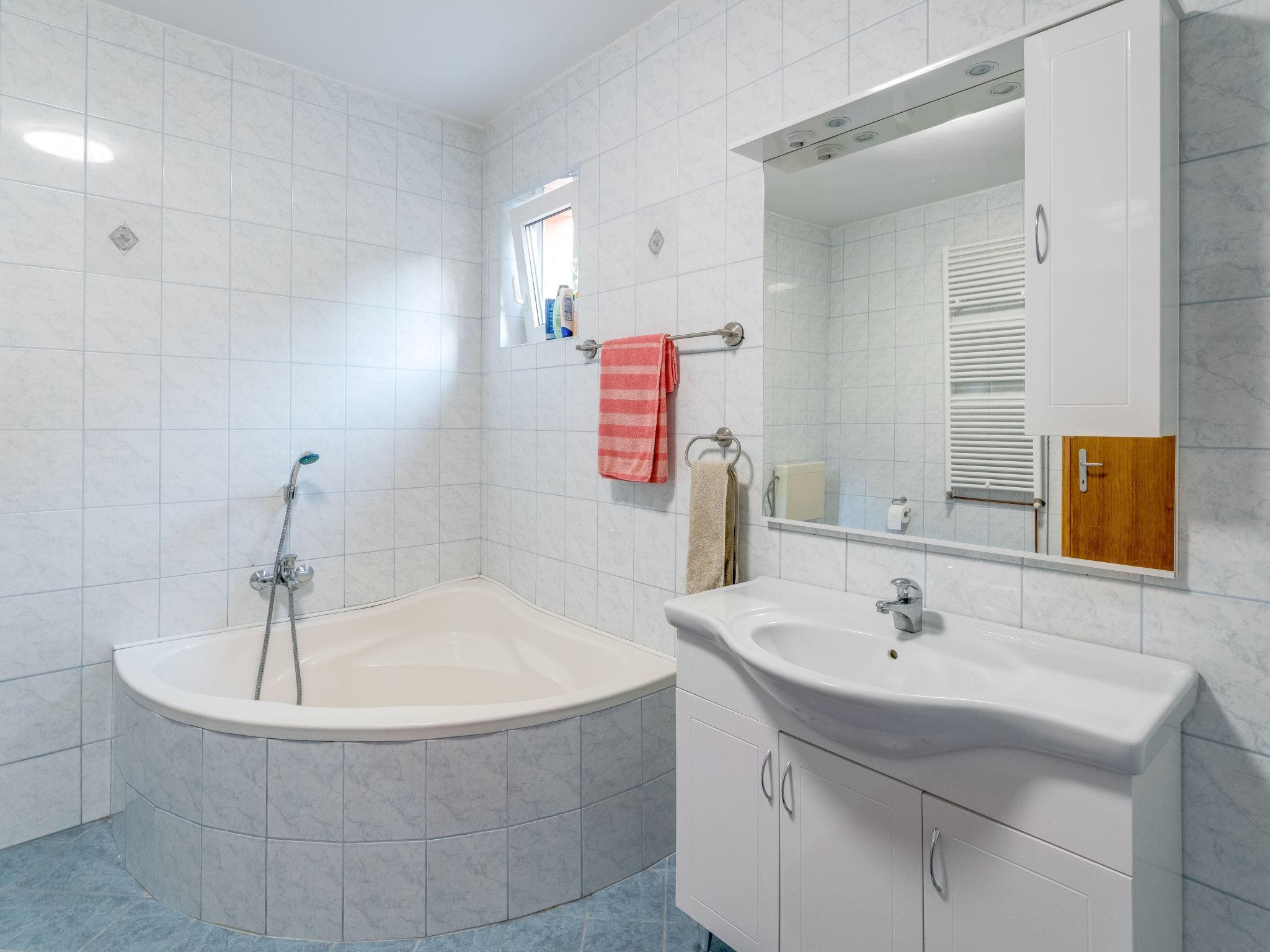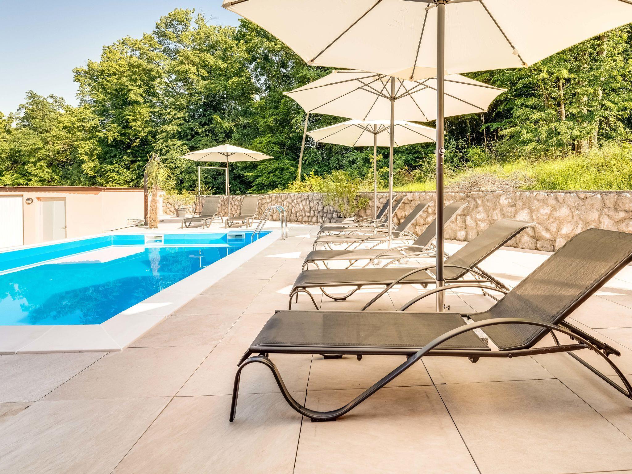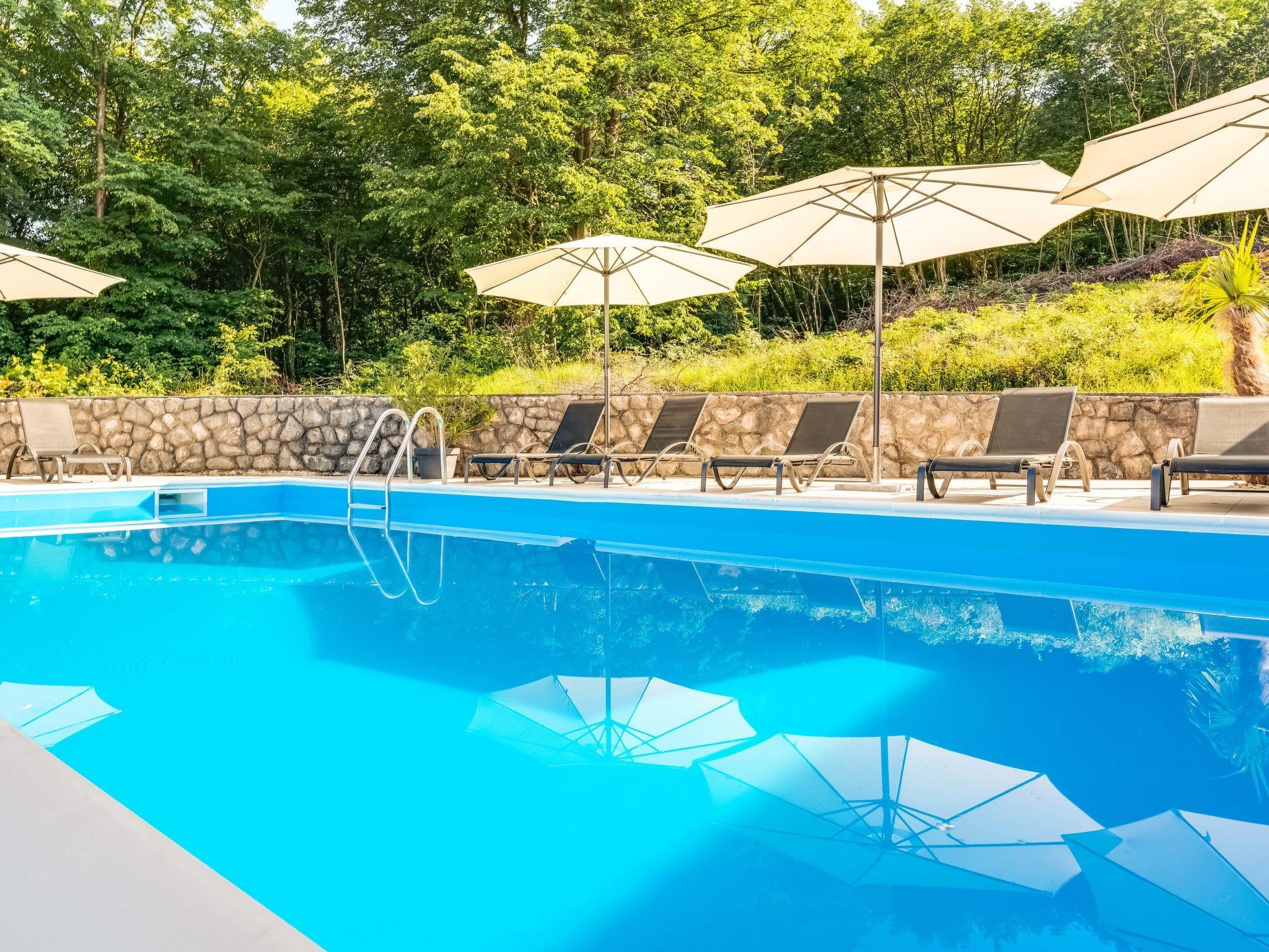 Mihelici 6 km from Opatija: 2-family house "Matej", 2 storeys. In the hamlet Mihelici 3.5 km from the centre of Matulji, 5.5 km from the centre of Opatija, in a quiet, sunny, elevated position residential area (villas), 5.5 km from the sea. Private: property 700 m2 (fenced) with lawn and flowers, swimming pool angular, heated (7 x 4 m, depth 150 cm, seasonal availability: 15.May. - 15.Oct.) with internal staircase. Outdoor shower, pool house, terrace, garden furniture, barbecue, fireplace. In the house: internet access, hot tub (all included), table football, central heating system, air conditioning. Parking (for 3 cars) at the house on the premises. Shop 800 m, supermarket 3 km, restaurant 800 m, bar 750 m, bus stop 700 m, pebble beach 5.5 km, concrete beach 5.5 km. Groups of teenagers on request only.