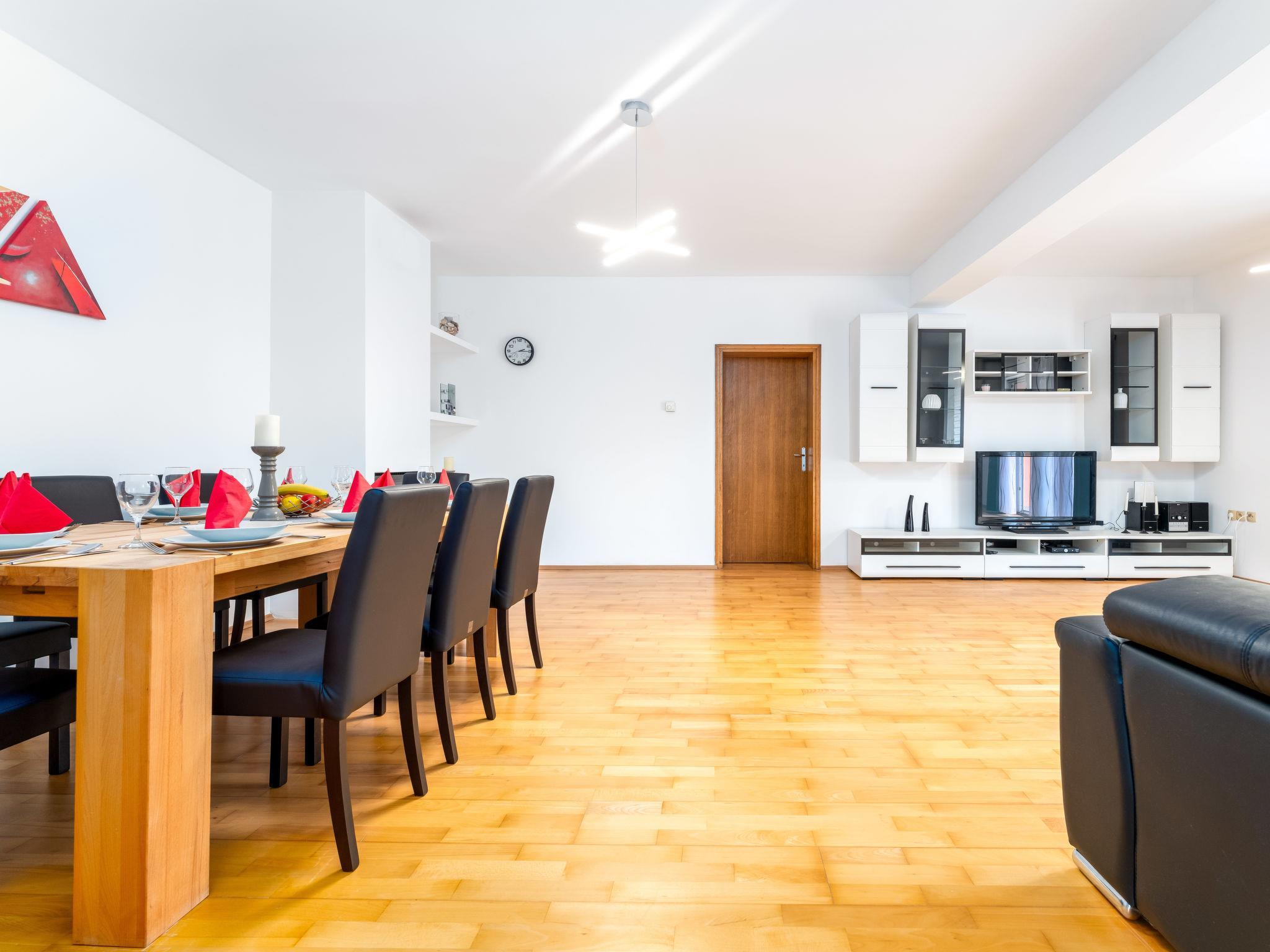 7-room house 200 m2 on 2 levels. Large living room 55 m2 with open-hearth fireplace, cable TV and air conditioning. Exit to the terrace. 1 room with 1 french bed (2 x 90 cm, length 200 cm). Exit to the terrace. 1 room with 1 french bed (2 x 90 cm, length 200 cm). Large, open kitchen (oven, dishwasher, 4 induction hot plates, toaster, kettle, microwave, freezer, electric coffee machine). Bath/WC. Electric heating, air-conditioning. Upper floor: living/dining room with 1 sofabed (135 cm, length 200 cm), satellite TV (flat screen), air conditioning. Exit to the balcony. 1 room with 1 double bed (2 x 90 cm, length 200 cm). 2 rooms, each room with 1 bed (120 cm, length 200 cm). Open kitchen (oven, 4 induction hot plates, toaster, kettle). Shower/WC. Electric heating, air-conditioning. Balcony 7 m2, terrace 40 m2 partly roofed terrace 50 m2 partly roofed. Terrace furniture, balcony furniture, deck chairs (8). View of the countryside. Facilities: Internet (WiFi, free). Parking (2 cars), garage. Please note: non-smokers only.
