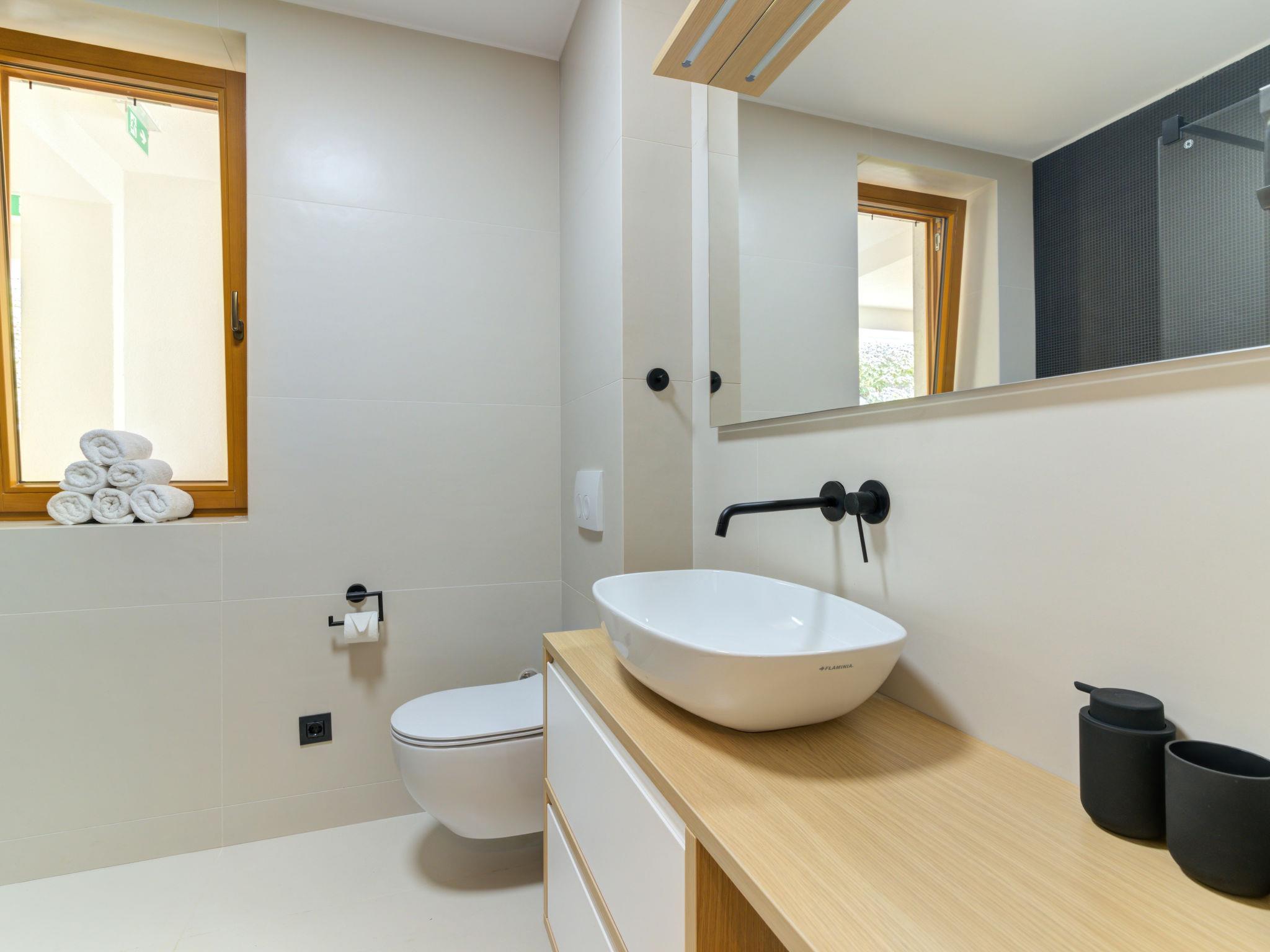 Preluk 4 km from Opatija: Cosy, luxurious apartment house "Mare Sano Resort", 4 storeys, renovated in 2022. 1.7 km from the centre of Volosko, 10 km from the centre of Rijeka, 50 m from the sea, 50 m from the beach, road to cross, located by a road. For shared use: property 1'398 m2 with flowers, swimming pool angular (11 x 4 m, depth 145 cm, seasonal availability: 01.May. - 01.Oct.) with internal staircase and shutter cover. Outdoor shower, terrace (40 m2), garden furniture, barbecue. Private: terrace (20 m2), garden furniture. In the house: internet access, storage room for bicycles, burglar alarm system, washing machine (extra). Parking at the house on the premises. Shop 1.5 km, supermarket 1.5 km, restaurant 1.7 km, café 30 m, bus stop, pebble beach 50 m, rocky beach 100 m. Walking paths from the house 100 m. Groups of teenagers on request only.