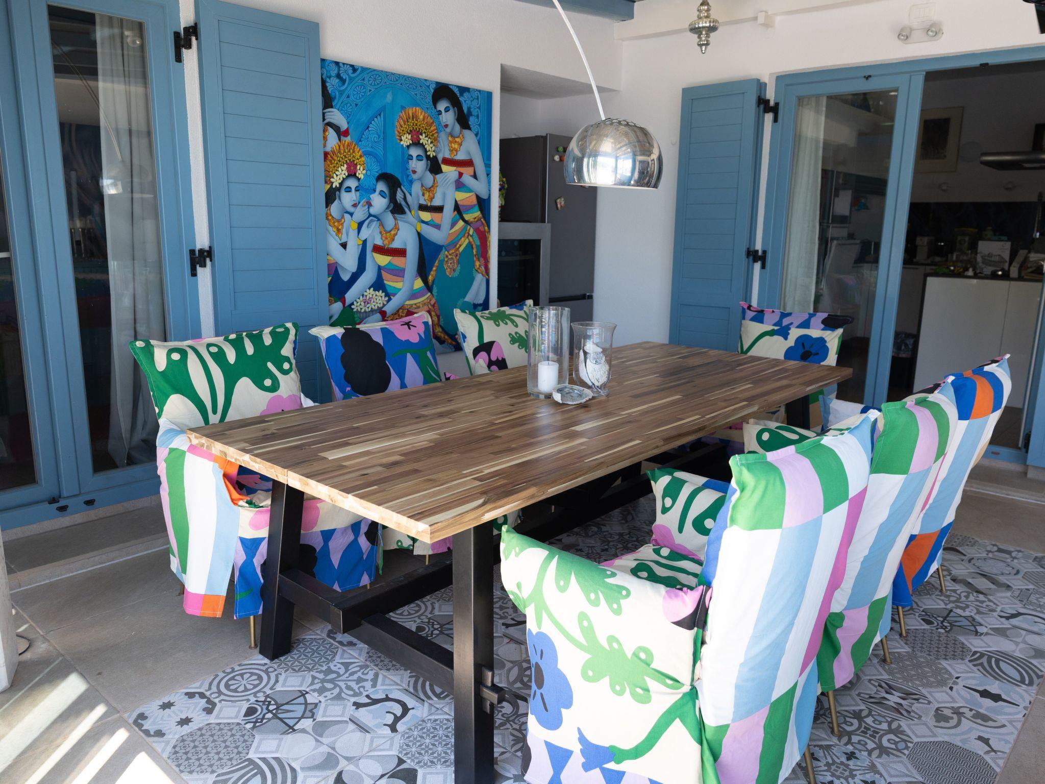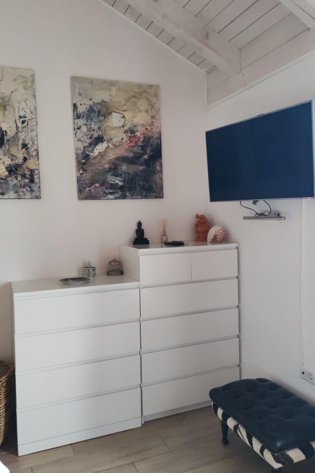 Inside, the house has been thoughtfully furnished to ensure a comfortable stay for all. The air conditioning ensures pleasant temperatures everywhere, while the underfloor heating provides warmth on cooler days. Evenings can be spent cosily in front of the fireplace or using the smart TV for entertainment. A fully equipped kitchen with ceramic hob, capsule coffee machine, dishwasher and kettle helps you prepare meals for family or friends.