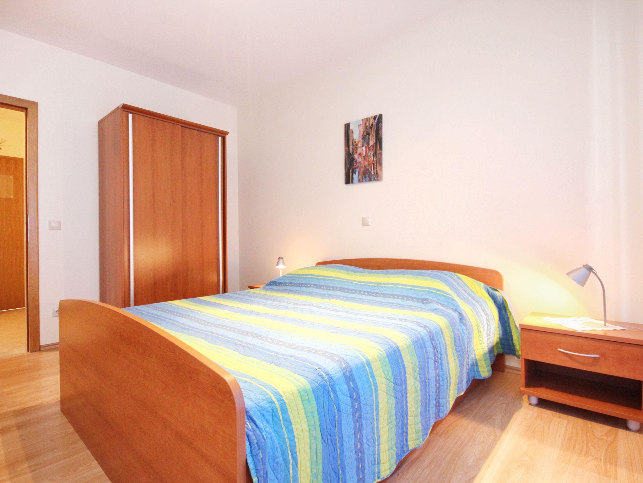 Ferienwohnung bietet Platz für 5 Gäste. Die Betten sind in Schlafzimmern, die es 2 gibt, und in Wohnzimmer, innerhalb einer Gesamtfläche von 58m2, angeordnet. Die Gäste haben eine eigene Terrasse zur Verfügung, auf der sie in warmen Sommernächten genießen können. Das Apartment bietet Meerblick. Es ist erlaubt, Speisen auf dem Gemeinschafts-Grill vorzubereiten. IM PREIS INBEGRIFFEN: Kurtaxe, Endreinigung, Klimatisierung, Parkplatz, Internet, Bügeleisen, Bügelbrett. VERBINDLICHE ZUSÄTZLICHE KOSTEN: Aufzahlung für Kurzaufenthalte (prozentualer Zuschlag pro Nächtigungsanzahl: 30% - 1, 20% - 2, 10% - 3). Die Verfügbarkeit zusätzlicher Dienstleistungen in Ihrem reservierten Termin und die Preise derselben (falls nicht aufgeführt) müssen im Voraus überprüft werden. Zusätzliche Dienstleistungen die in der Zahlungsaufforderung nicht aufgeführt sind werden direkt beim Vermieter bezahlt, angenommen der Gast nutzt auch diese.