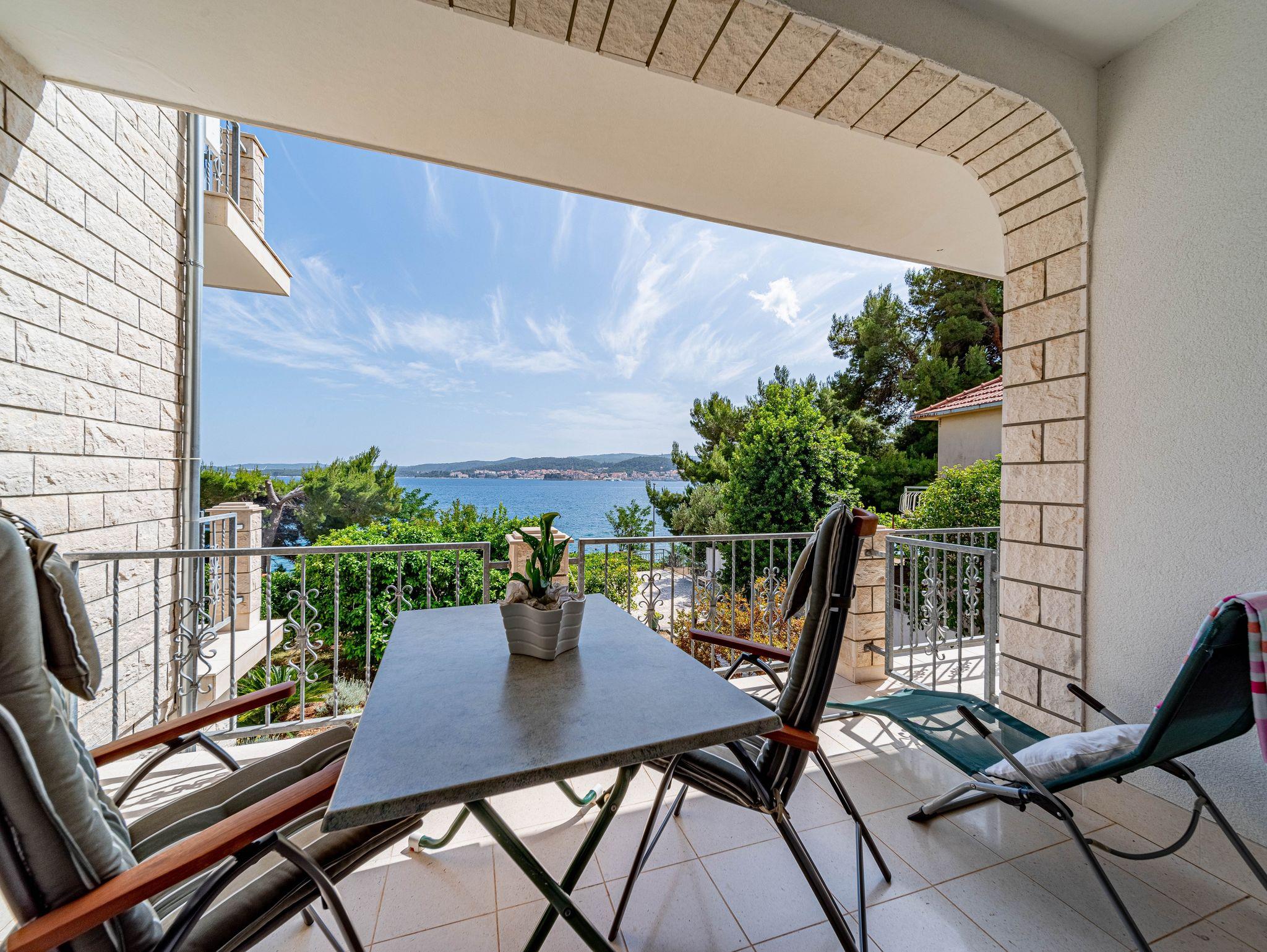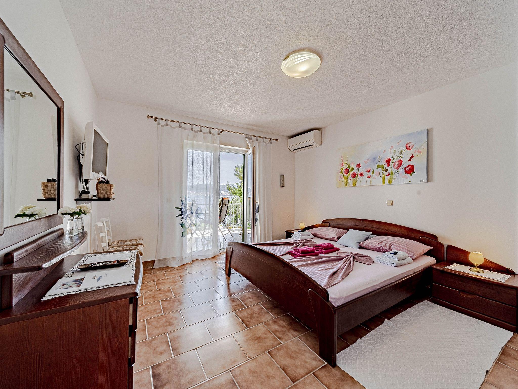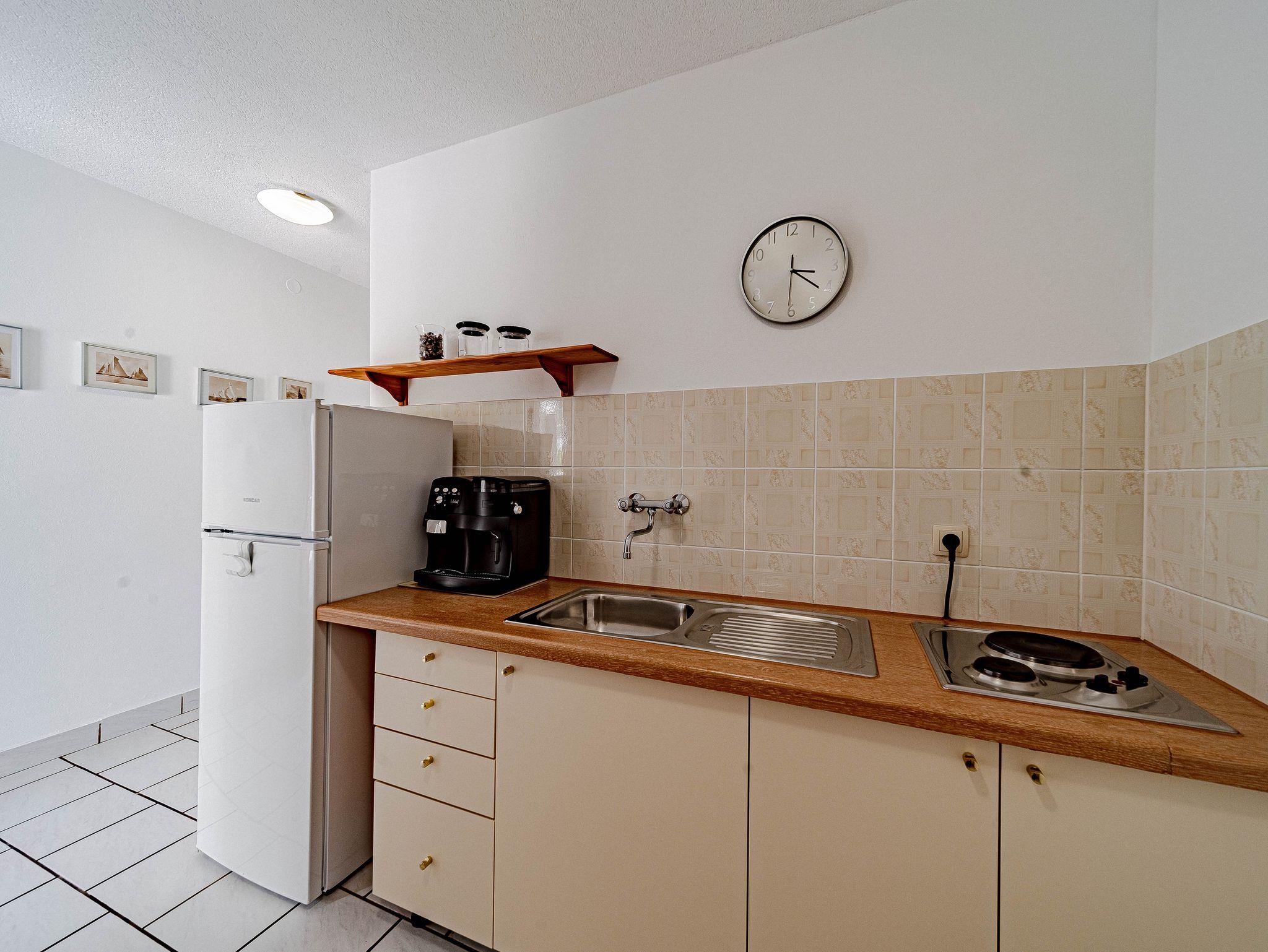 Ferienwohnung bietet Platz für 2 Gäste. Die Betten sind in Schlafzimmern, die es 1 gibt, innerhalb einer Gesamtfläche von 31m2, angeordnet. Die Gäste haben eine eigene Terrasse zur Verfügung, auf der sie in warmen Sommernächten genießen können. Das Apartment bietet Meerblick. Es ist erlaubt, Speisen auf dem Gemeinschafts-Grill vorzubereiten. IM PREIS INBEGRIFFEN: Kurtaxe, Endreinigung, Klimatisierung, Parkplatz, Internet, Bootsanlegeplatz, Kinderbett, Bügeleisen, Bügelbrett, Föhn, Sonnenschirm. Die Verfügbarkeit zusätzlicher Dienstleistungen in Ihrem reservierten Termin und die Preise derselben (falls nicht aufgeführt) müssen im Voraus überprüft werden. Zusätzliche Dienstleistungen die in der Zahlungsaufforderung nicht aufgeführt sind werden direkt beim Vermieter bezahlt, angenommen der Gast nutzt auch diese. Ermäßigung auf den Grundpreis: Gratistag 14=13 (bei einem Aufenthalt von 14 Tagen oder mehr erhalten Sie einen Gratistag für den Aufenthalt bis 31.12.26).