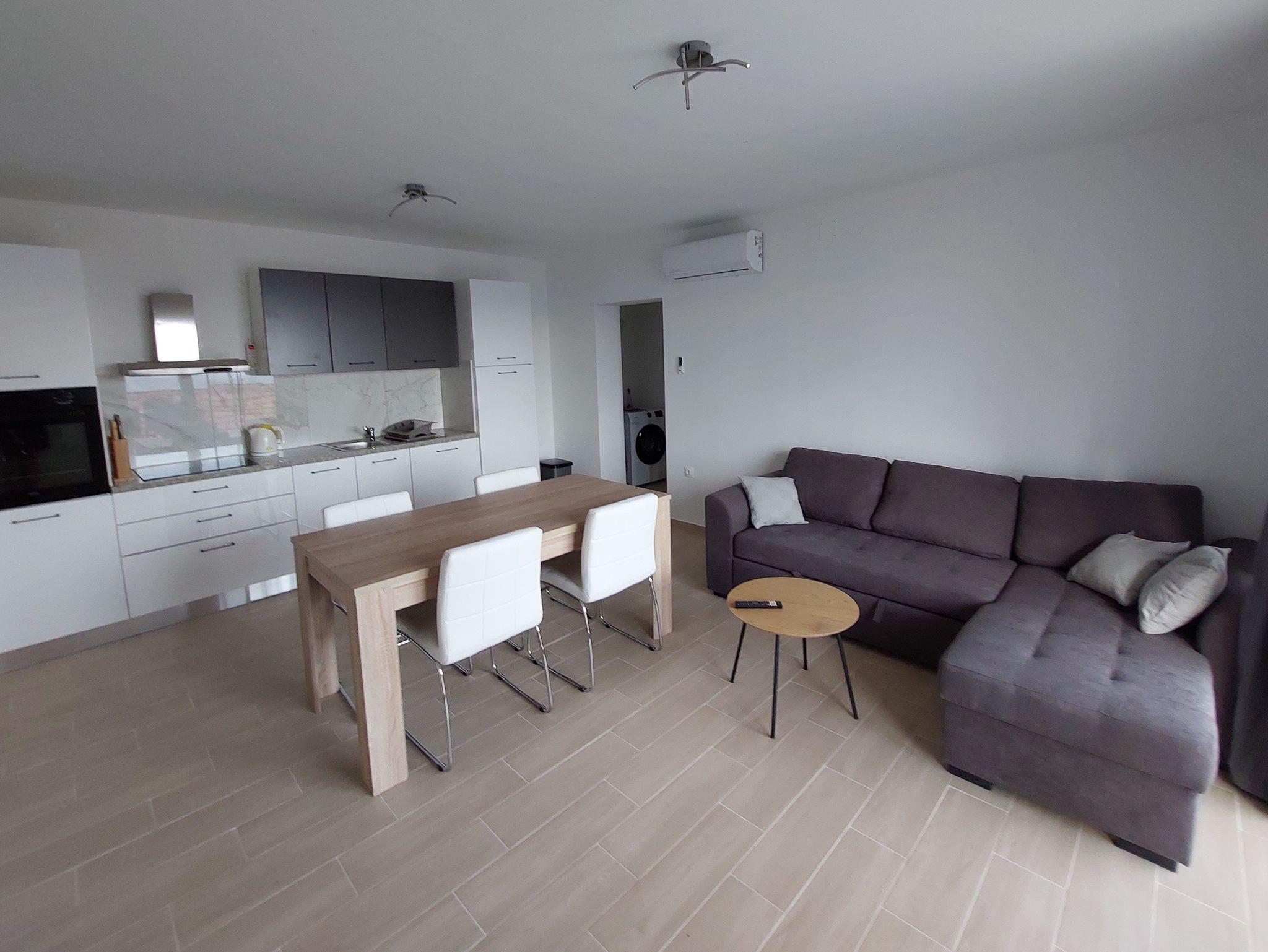 Ferienwohnung bietet Platz für 4 Gäste. Die Betten sind in Schlafzimmern, die es 1 gibt, und in Wohnzimmer, innerhalb einer Gesamtfläche von 48m2, angeordnet. Die Gäste haben eine eigene Terrasse zur Verfügung, auf der sie in warmen Sommernächten genießen können. Das Apartment bietet Meerblick. Es ist erlaubt, Speisen auf dem Gemeinschafts-Grill vorzubereiten. In der Unterkunftseinheit besteht die Möglichkeit des Mitbringens von Haustieren gegen Aufpreis. IM PREIS INBEGRIFFEN: Kurtaxe, Endreinigung, Klimatisierung, Parkplatz, Internet, Bügeleisen, Bügelbrett, Föhn, tragbarer Grill. VERBINDLICHE ZUSÄTZLICHE KOSTEN: Aufzahlung für Kurzaufenthalte (prozentualer Zuschlag pro Nächtigungsanzahl: 30% - 1, 20% - 2, 10% - 3). UNVERBINDLICHE ZUSÄTZLICHE KOSTEN: Haustiere (10,00 € pro Nacht). Die Verfügbarkeit zusätzlicher Dienstleistungen in Ihrem reservierten Termin und die Preise derselben (falls nicht aufgeführt) müssen im Voraus überprüft werden. Zusätzliche Dienstleistungen die in der Zahlungsaufforderung nicht aufgeführt sind werden direkt beim Vermieter bezahlt, angenommen der Gast nutzt auch diese. Ermäßigung auf den Grundpreis: Gratistag 14=13 (bei einem Aufenthalt von 14 Tagen oder mehr erhalten Sie einen Gratistag für den Aufenthalt bis 31.12.26).