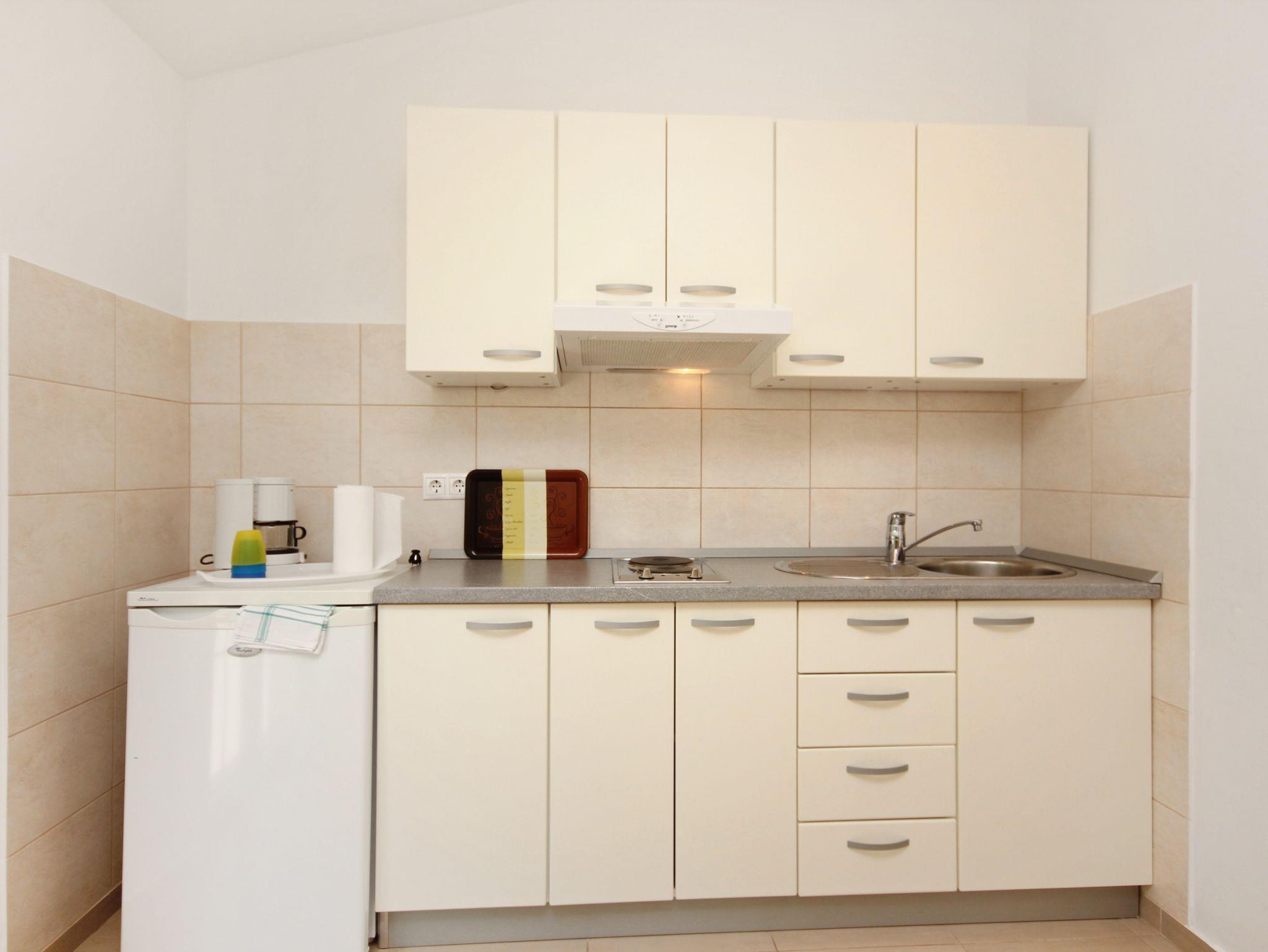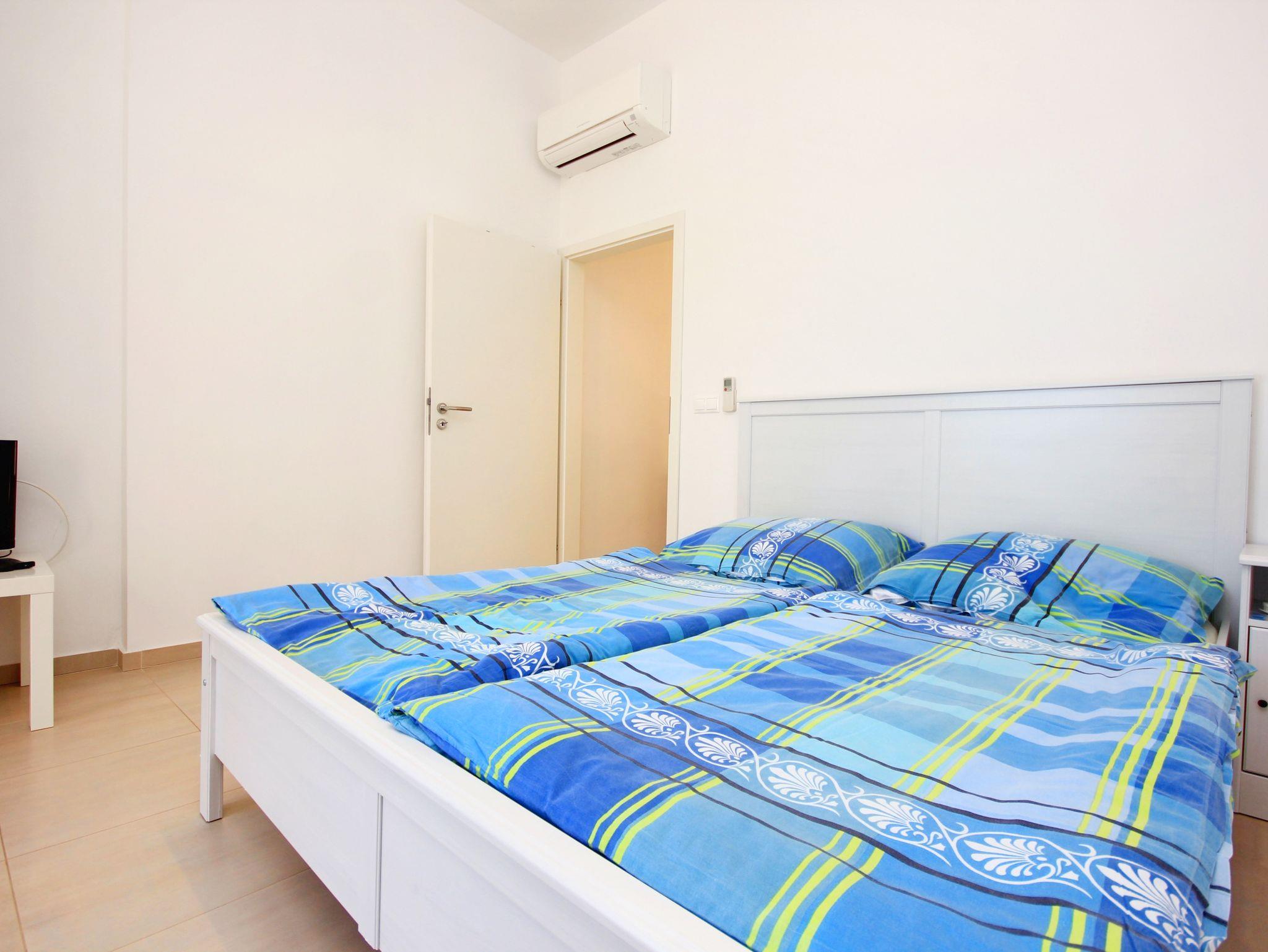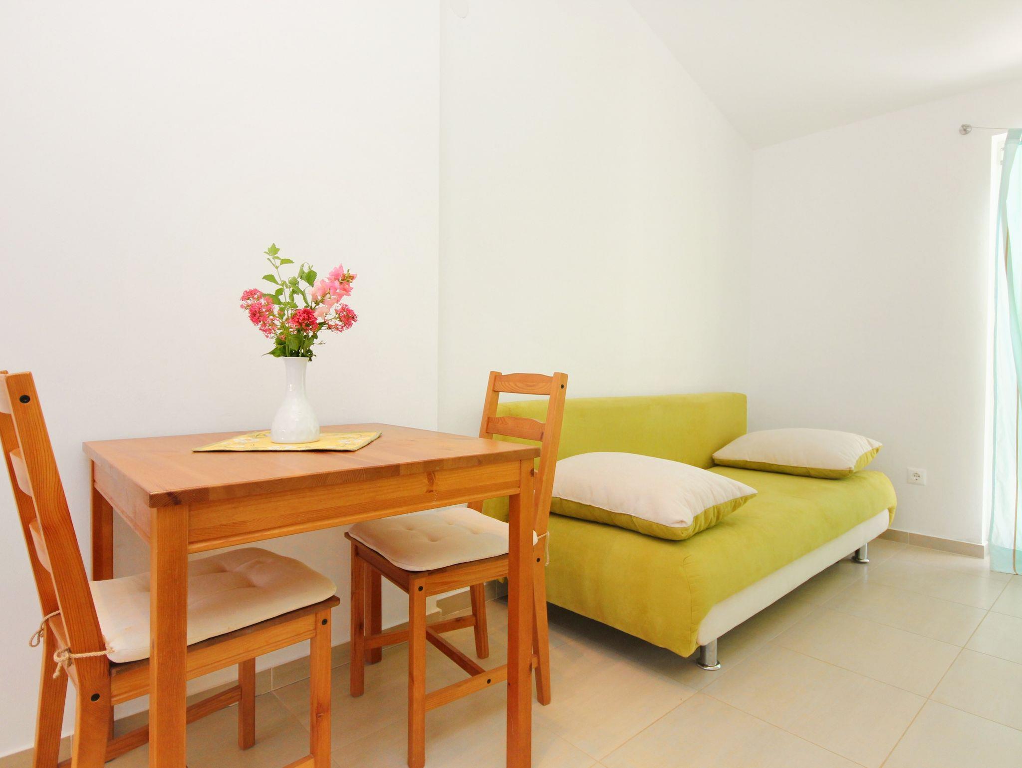 Ferienwohnung bietet Platz für 4 Gäste. Die Betten sind in Schlafzimmern, die es 1 gibt, und in Esszimmer, innerhalb einer Gesamtfläche von 31m2, angeordnet. Die Gäste haben eine eigene Terrasse zur Verfügung, auf der sie in warmen Sommernächten genießen können. Das Apartment bietet Meerblick. IM PREIS INBEGRIFFEN: Kurtaxe, Endreinigung, Klimatisierung, Parkplatz, Internet, Kinderbett, Bügeleisen, Bügelbrett, Föhn. VERBINDLICHE ZUSÄTZLICHE KOSTEN: Aufzahlung für Kurzaufenthalte (prozentualer Zuschlag pro Nächtigungsanzahl: 30% - 1, 20% - 2, 10% - 3). Die Verfügbarkeit zusätzlicher Dienstleistungen in Ihrem reservierten Termin und die Preise derselben (falls nicht aufgeführt) müssen im Voraus überprüft werden. Zusätzliche Dienstleistungen die in der Zahlungsaufforderung nicht aufgeführt sind werden direkt beim Vermieter bezahlt, angenommen der Gast nutzt auch diese. Ermäßigung auf den Grundpreis: Gratistag 14=13 (bei einem Aufenthalt von 14 Tagen oder mehr erhalten Sie einen Gratistag für den Aufenthalt bis 31.12.26).