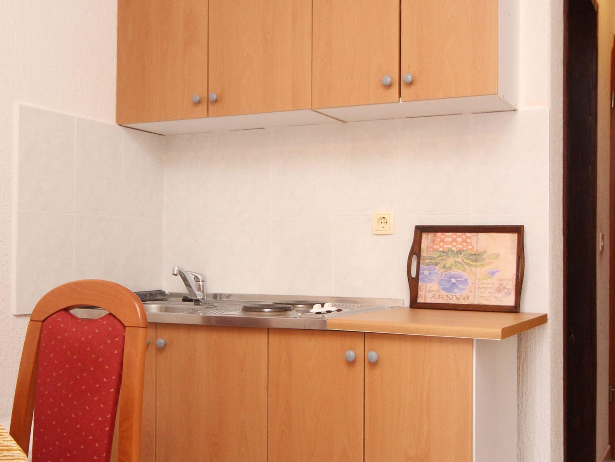 Ferienwohnung bietet Platz für 4 Gäste. Die Betten sind in Schlafzimmern, die es 1 gibt, und in Esszimmer, innerhalb einer Gesamtfläche von 31m2, angeordnet. Die Gäste haben eine eigene Terrasse zur Verfügung, auf der sie in warmen Sommernächten genießen können. Das Apartment bietet Meerblick. Es ist erlaubt, Speisen auf dem Gemeinschafts-Grill vorzubereiten. IM PREIS INBEGRIFFEN: Kurtaxe, Endreinigung, Klimatisierung, Parkplatz, Internet, Kinderbett, Bügeleisen, Bügelbrett, Föhn. VERBINDLICHE ZUSÄTZLICHE KOSTEN: Aufzahlung für Kurzaufenthalte (prozentualer Zuschlag pro Nächtigungsanzahl: 30% - 1, 20% - 2, 10% - 3). Die Verfügbarkeit zusätzlicher Dienstleistungen in Ihrem reservierten Termin und die Preise derselben (falls nicht aufgeführt) müssen im Voraus überprüft werden. Zusätzliche Dienstleistungen die in der Zahlungsaufforderung nicht aufgeführt sind werden direkt beim Vermieter bezahlt, angenommen der Gast nutzt auch diese.