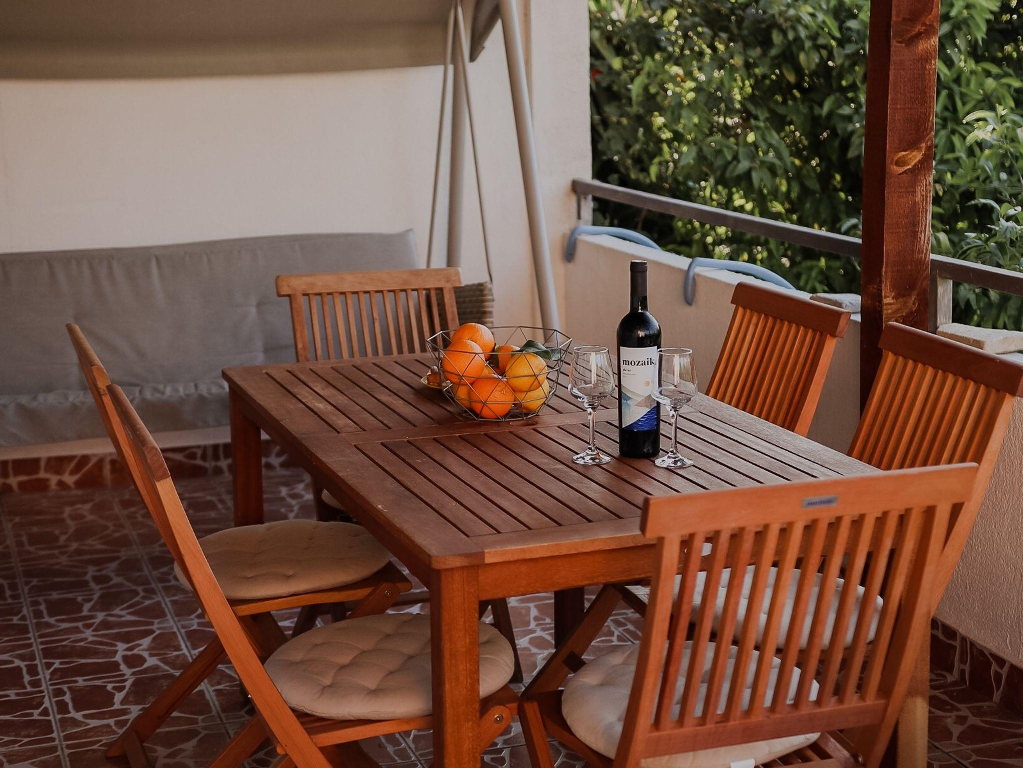 Ferienwohnung bietet Platz für 6 Gäste. Die Betten sind in Schlafzimmern, die es 2 gibt, und in Wohnzimmer, innerhalb einer Gesamtfläche von 43m2, angeordnet. Die Gäste haben eine eigene Terrasse zur Verfügung, auf der sie in warmen Sommernächten genießen können. Das Apartment bietet Meerblick. Es ist erlaubt, Speisen auf dem Gemeinschafts-Grill vorzubereiten. IM PREIS INBEGRIFFEN: Kurtaxe, Endreinigung, Klimatisierung, Parkplatz, Internet, Kinderbett, Bügeleisen, Bügelbrett, Föhn. VERBINDLICHE ZUSÄTZLICHE KOSTEN: Aufzahlung für Kurzaufenthalte (prozentualer Zuschlag pro Nächtigungsanzahl: 30% - 1, 20% - 2, 10% - 3). Die Verfügbarkeit zusätzlicher Dienstleistungen in Ihrem reservierten Termin und die Preise derselben (falls nicht aufgeführt) müssen im Voraus überprüft werden. Zusätzliche Dienstleistungen die in der Zahlungsaufforderung nicht aufgeführt sind werden direkt beim Vermieter bezahlt, angenommen der Gast nutzt auch diese. Ermäßigung auf den Grundpreis: Gratistag 14=13 (bei einem Aufenthalt von 14 Tagen oder mehr erhalten Sie einen Gratistag für den Aufenthalt bis 31.12.26).