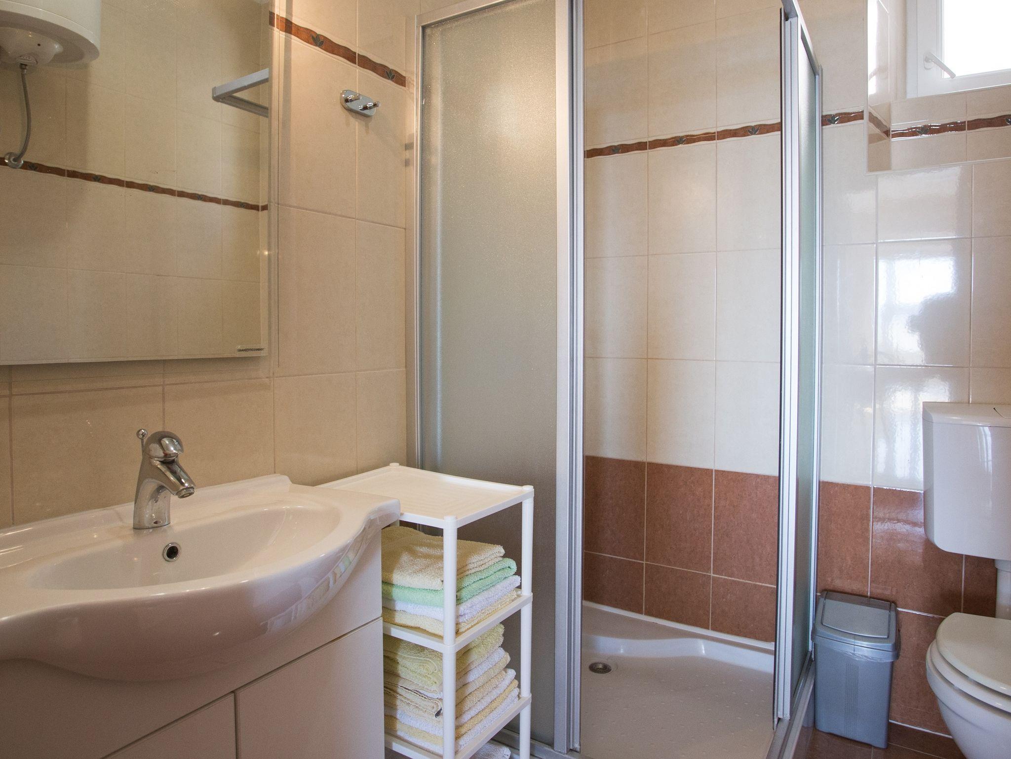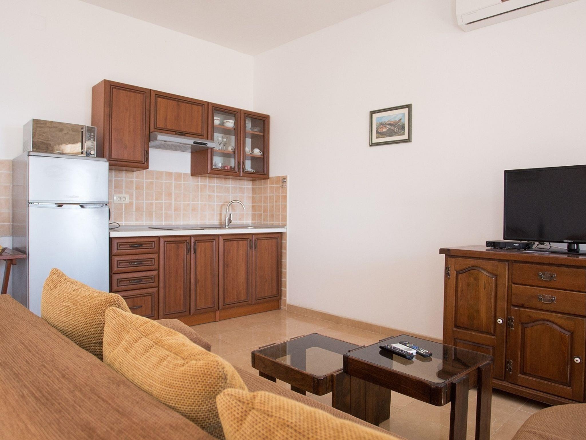 Ferienwohnung bietet Platz für 3 Gäste. Die Betten sind in Schlafzimmern, die es 1 gibt, und in Wohnzimmer, innerhalb einer Gesamtfläche von 40m2, angeordnet. Die Gäste haben eine eigene Terrasse zur Verfügung, auf der sie in warmen Sommernächten genießen können. Das Apartment bietet Meerblick. Es ist erlaubt, Speisen auf dem Gemeinschafts-Grill vorzubereiten. IM PREIS INBEGRIFFEN: Kurtaxe, Endreinigung, Klimatisierung, Parkplatz, Internet, Kinderbett, Bügeleisen, Bügelbrett, Föhn. Die Verfügbarkeit zusätzlicher Dienstleistungen in Ihrem reservierten Termin und die Preise derselben (falls nicht aufgeführt) müssen im Voraus überprüft werden. Zusätzliche Dienstleistungen die in der Zahlungsaufforderung nicht aufgeführt sind werden direkt beim Vermieter bezahlt, angenommen der Gast nutzt auch diese.