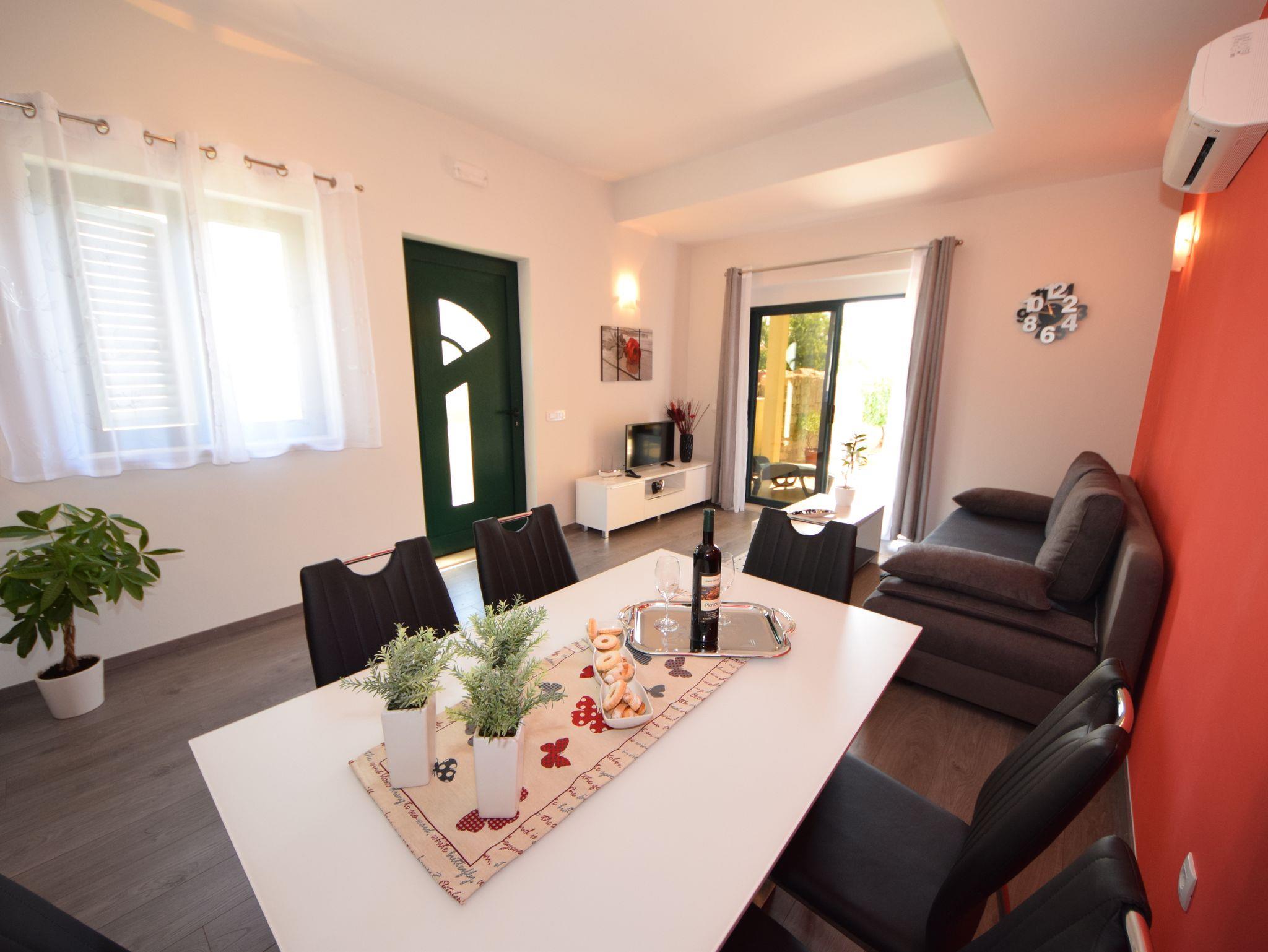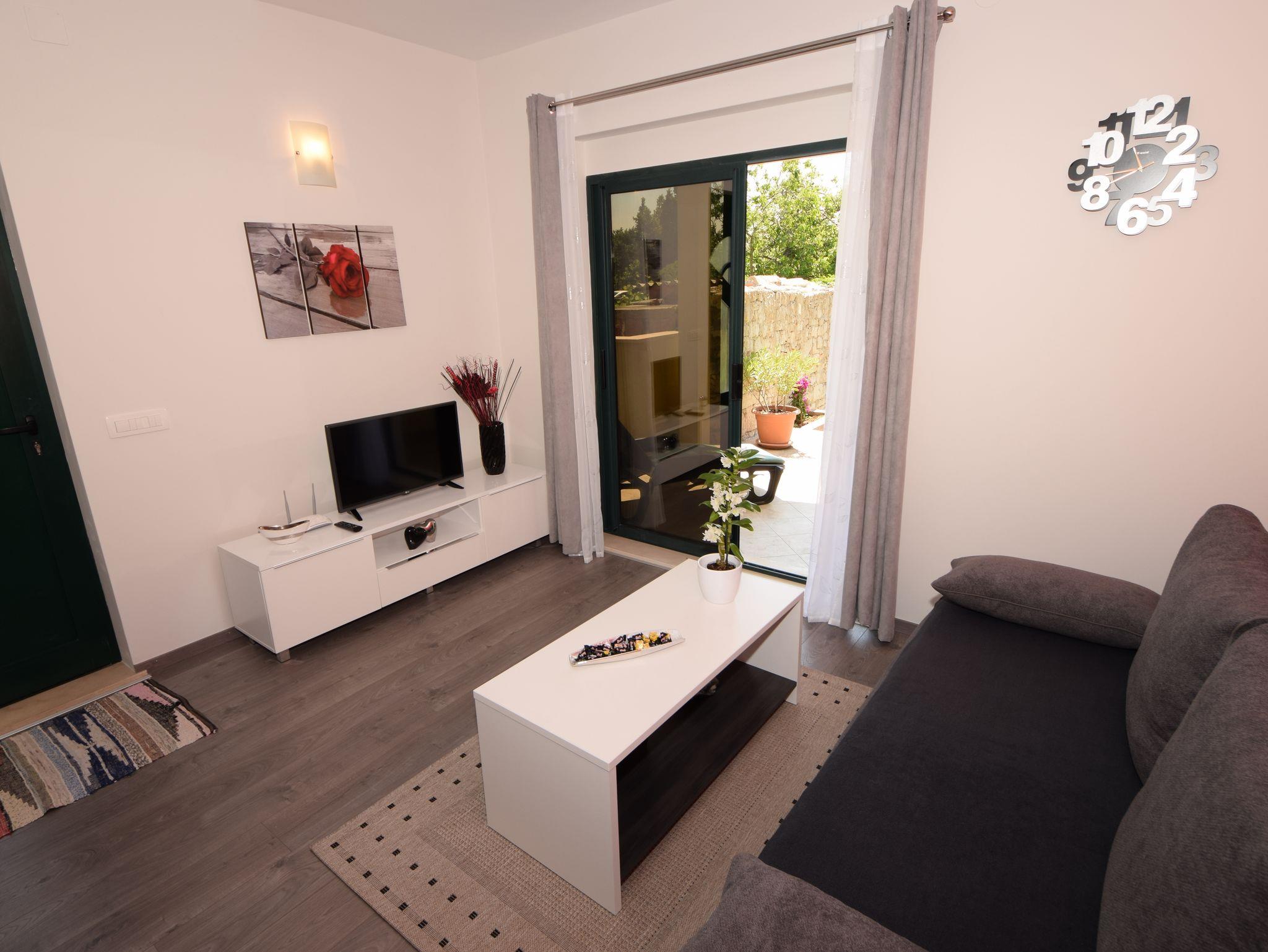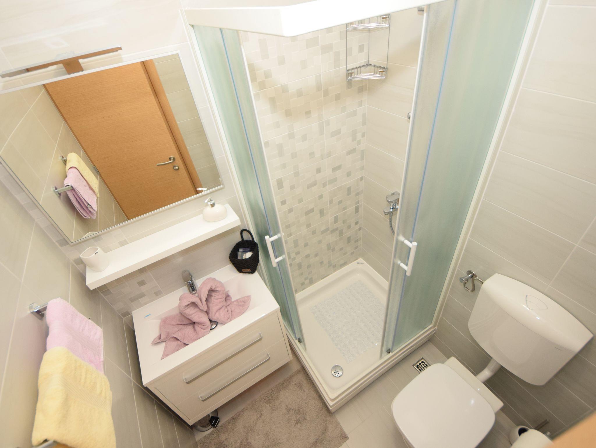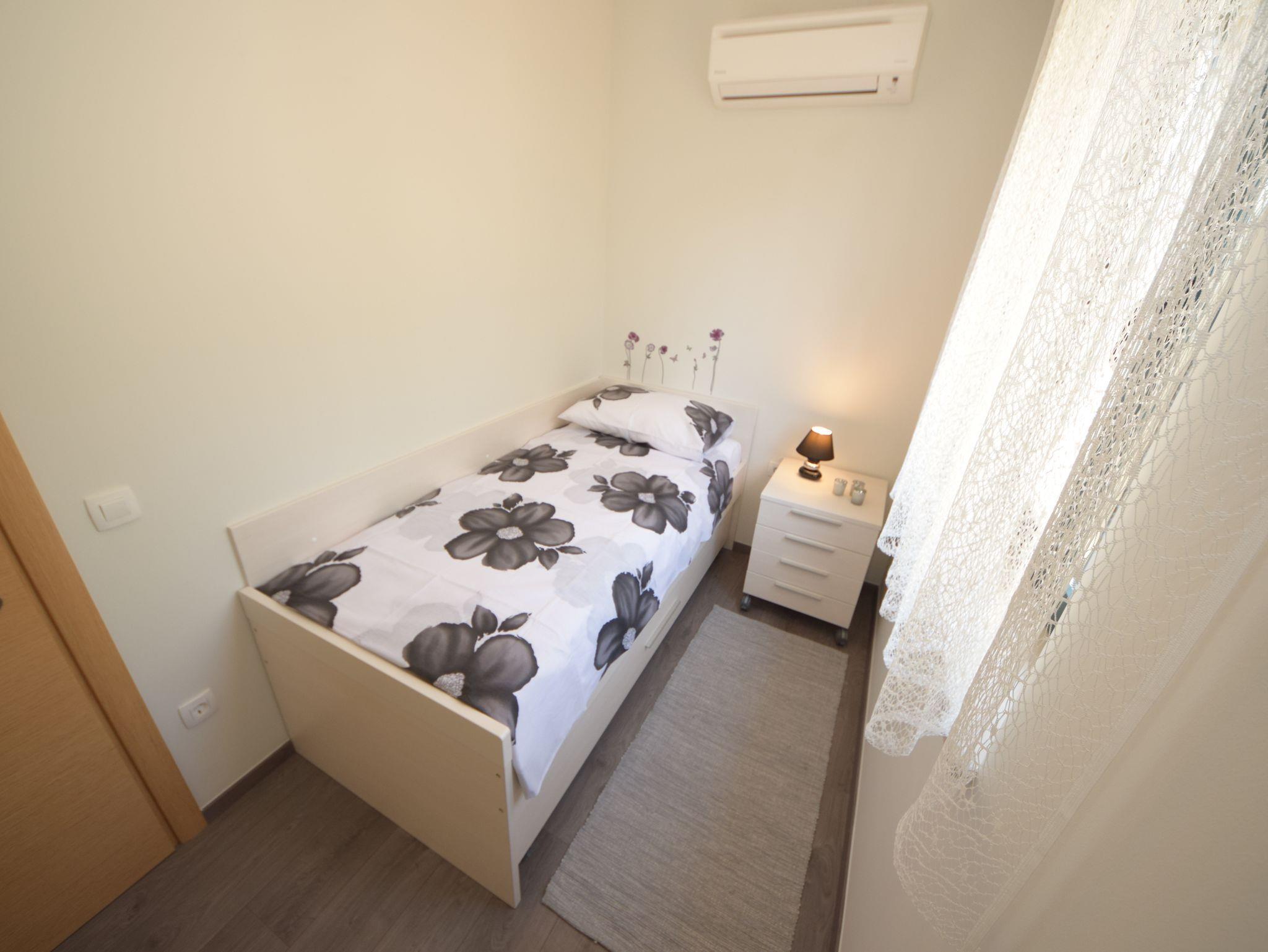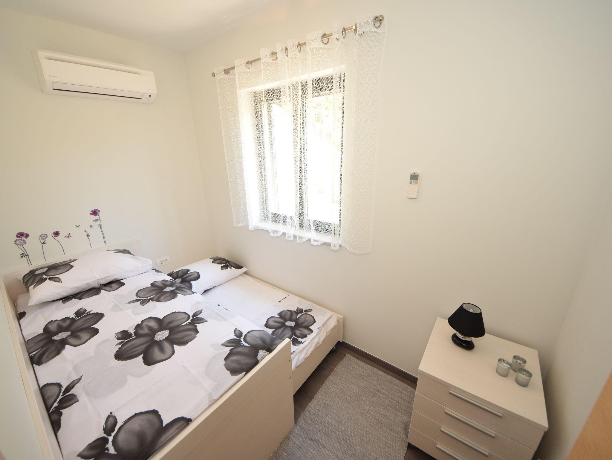 Ferienwohnung bietet Platz für 4 Gäste. Die Betten sind in Schlafzimmern, die es 2 gibt, innerhalb einer Gesamtfläche von 44m2, angeordnet. Die Gäste haben eine eigene Terrasse zur Verfügung, auf der sie in warmen Sommernächten genießen können. Es ist erlaubt, Speisen auf dem Gemeinschafts-Grill vorzubereiten. IM PREIS INBEGRIFFEN: Kurtaxe, Endreinigung, Klimatisierung, Parkplatz, Internet, Kinderbett, Bügeleisen, Bügelbrett, Föhn, tragbarer Grill. VERBINDLICHE ZUSÄTZLICHE KOSTEN: Aufzahlung für Kurzaufenthalte (prozentualer Zuschlag pro Nächtigungsanzahl: 30% - 1, 20% - 2, 10% - 3). Die Verfügbarkeit zusätzlicher Dienstleistungen in Ihrem reservierten Termin und die Preise derselben (falls nicht aufgeführt) müssen im Voraus überprüft werden. Zusätzliche Dienstleistungen die in der Zahlungsaufforderung nicht aufgeführt sind werden direkt beim Vermieter bezahlt, angenommen der Gast nutzt auch diese.