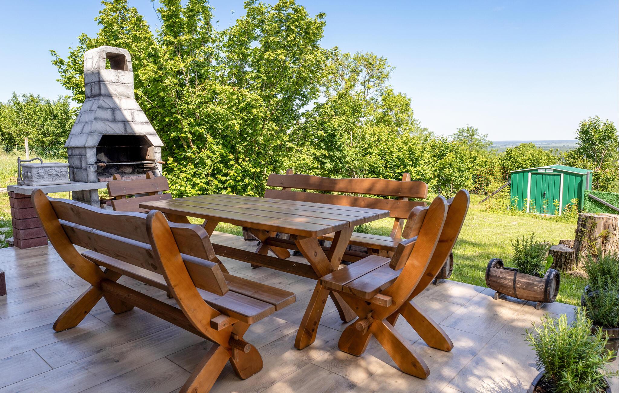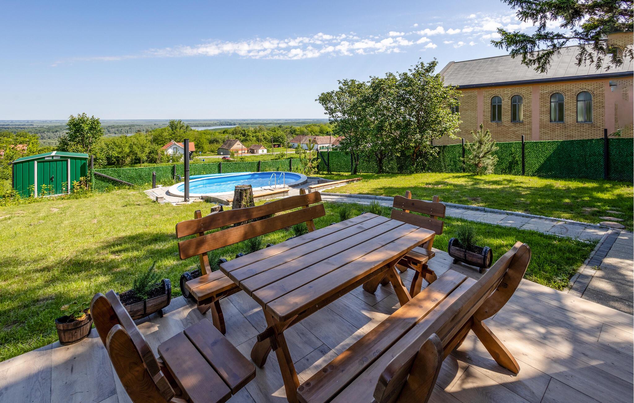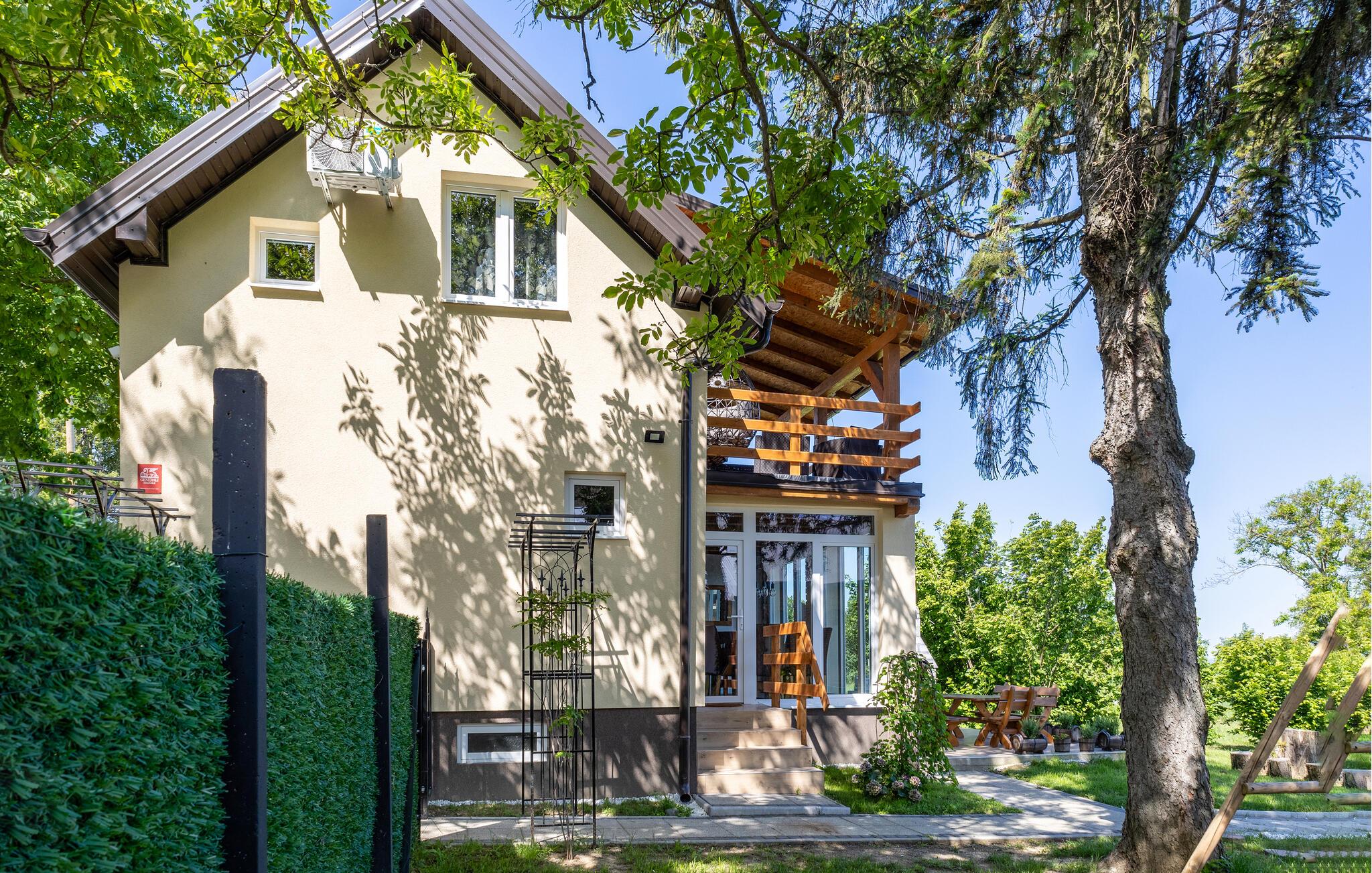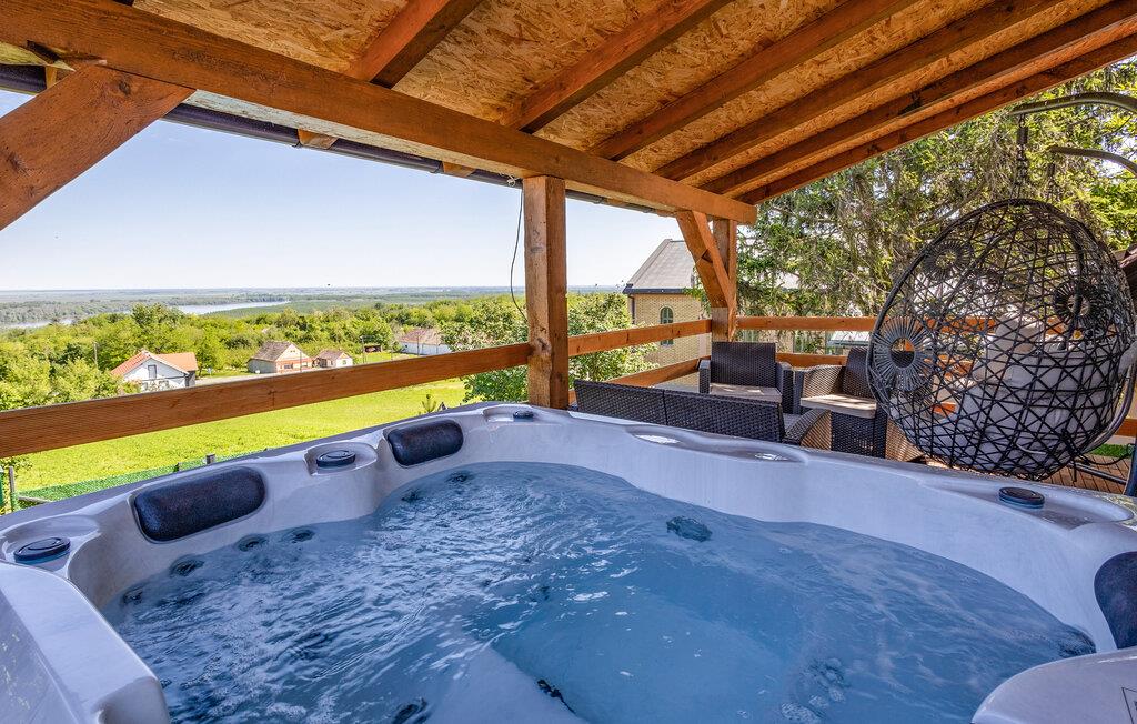 Dette to-etagers hus ligger tæt på grænsen til Serbien og er virkelig flot indrettet med masser af komfort. I kommer ikke til at mangle noget her, og der er lagt op til mange hyggelige fælles måltider ved det store spisebord. På den overdækkede terrasse på første sal venter jer en lille oase af velvære; glid ned i det varme vand i spabadet og find jer godt til rette i loungemøblerne, hvor I kan nyde den smukke udsigt over det serbiske naturreservat Gornje Podunavlje.