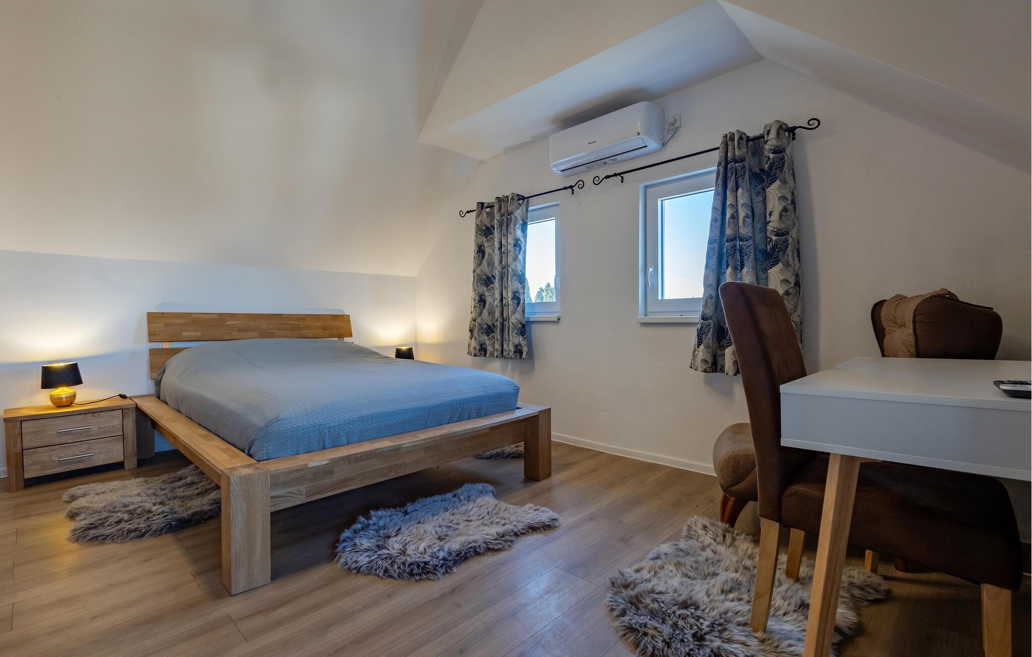 Huset ligger i naturskønne omgivelser, og I skal blot gå et par hundrede meter for at komme til den nærliggende å, hvor I kan bade og fiske. Snør vandrestøvlerne og begiv jer ud på vandre- og cykelture i området. For en afstikker anbefales en dagstur til Osijek, hvor I kan slentre og nyde de gode restauranter og caféer.
