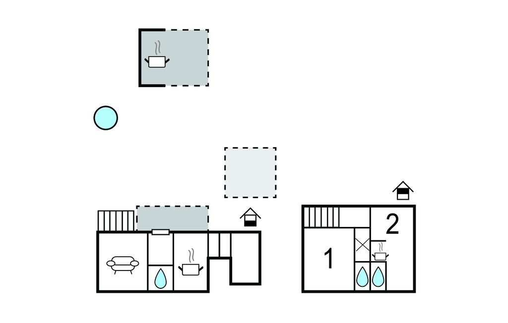 Badeværelse 3m2 (nr. 2) - WC. Varmt og koldt vand. Bruser