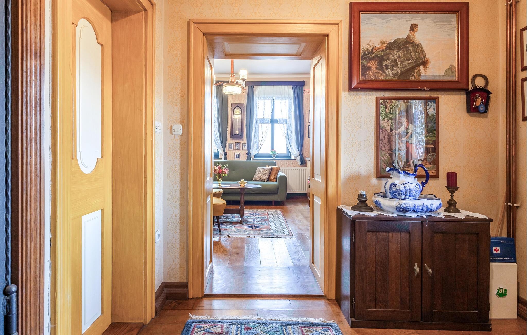 Dette stilfulde landsted har en hyggelig atmosfære, der kombinerer tradition og komfort. Det fint designede interiør med antikke møbler, varme farver og nostalgiske detaljer fører jer til en anden tid. Tilbered lækre ferieretter i det lyse landhuskøkken og nyd dagens måltider i den hyggelige spisestue. Gennemse det interne bibliotek, spil brætspil eller stream en spændende film.