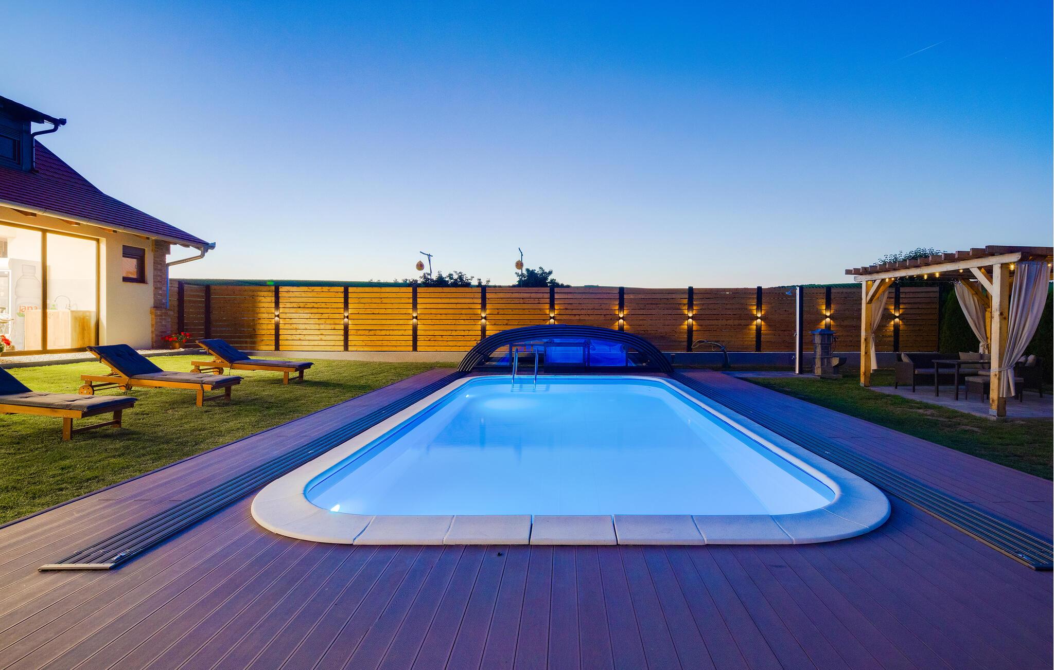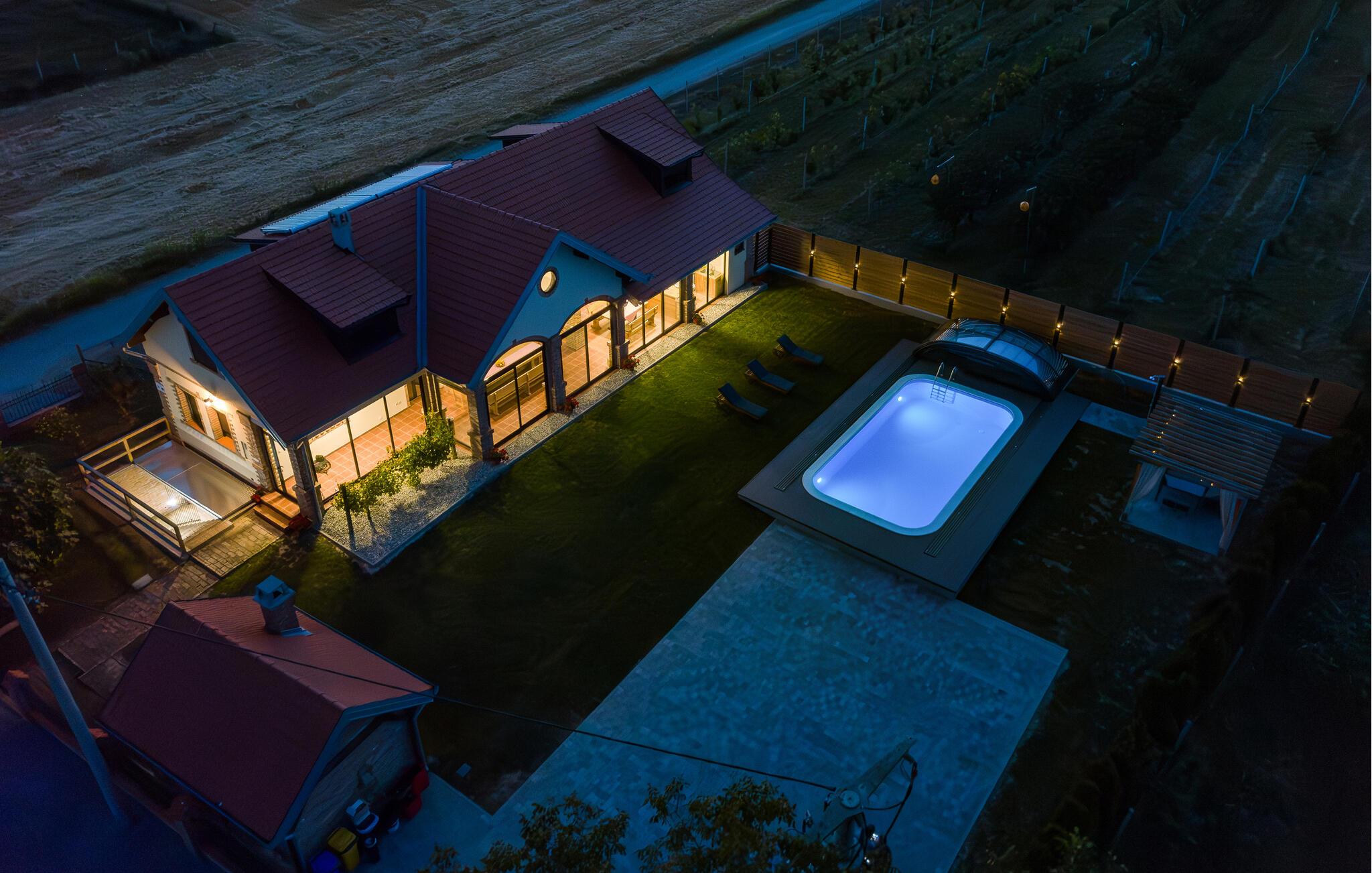 Tag en dukkert i den rummelige pool, eller nyd den landlige atmosfære under den elegante pergola. Tilbring stemningsfulde aftener med familie og venner på den overdækkede terrasse med grillplads.