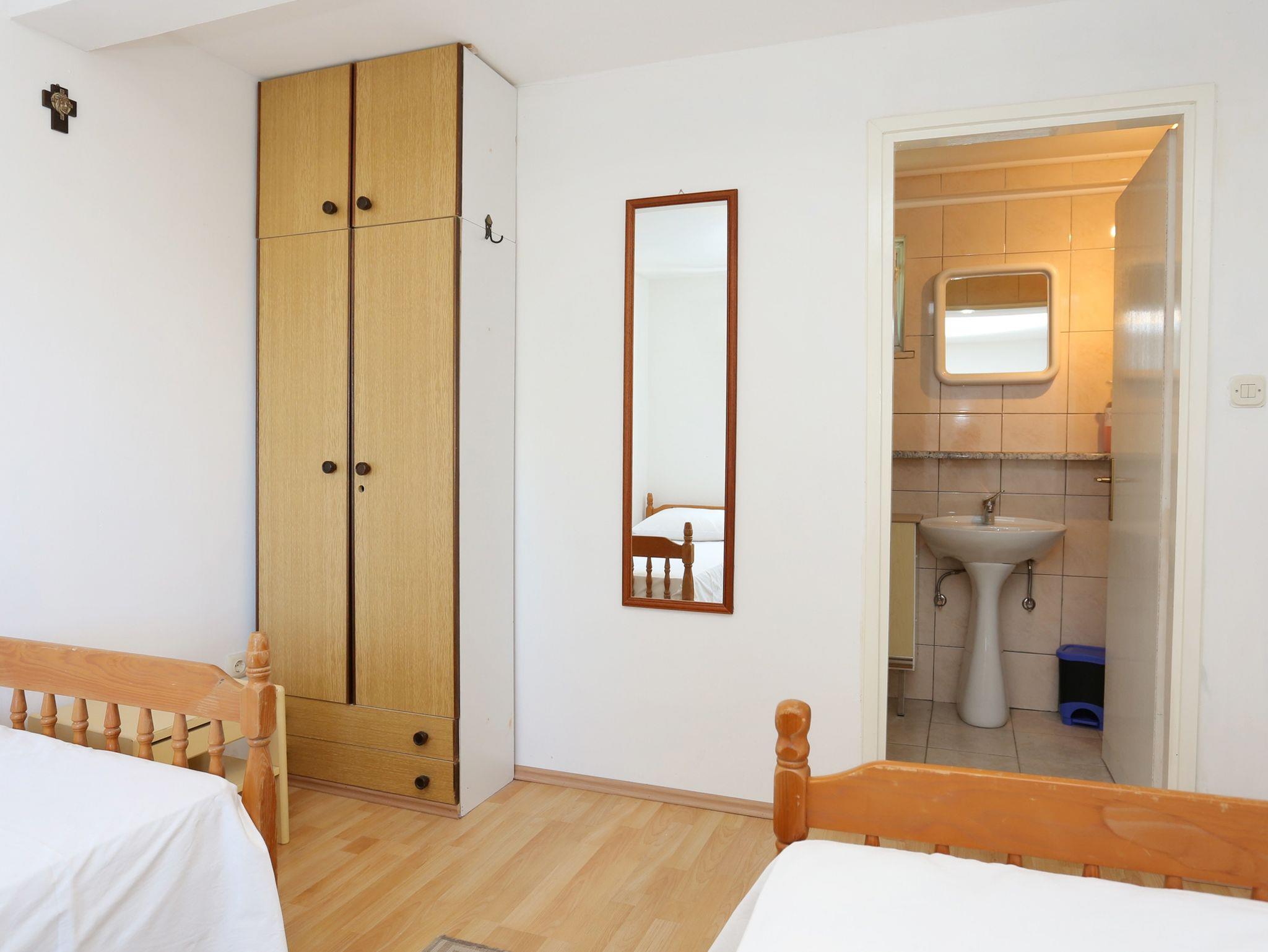 Haus bietet Platz für 6 Gäste. Die Betten sind in Schlafzimmern, die es 2 gibt, und in Esszimmer, innerhalb einer Gesamtfläche von 63m2, angeordnet. Die Gäste haben eine eigene Terrasse zur Verfügung, auf der sie in warmen Sommernächten genießen können. Das Haus bietet Meerblick. Es ist erlaubt, Speisen auf dem Gemeinschafts-Grill vorzubereiten. In der Unterkunftseinheit besteht die Möglichkeit des Mitbringens von Haustieren gegen Aufpreis. IM PREIS INBEGRIFFEN: Kurtaxe, Endreinigung, Klimatisierung, Parkplatz, Internet, Bügeleisen, Bügelbrett, Föhn, tragbarer Grill. VERBINDLICHE ZUSÄTZLICHE KOSTEN: Aufzahlung für Kurzaufenthalte (prozentualer Zuschlag pro Nächtigungsanzahl: 30% - 1, 20% - 2, 10% - 3). UNVERBINDLICHE ZUSÄTZLICHE KOSTEN: Haustiere (20,00 € pro Nacht), Zusatzbett (15,00 € pro Nacht). Die Verfügbarkeit zusätzlicher Dienstleistungen in Ihrem reservierten Termin und die Preise derselben (falls nicht aufgeführt) müssen im Voraus überprüft werden. Zusätzliche Dienstleistungen die in der Zahlungsaufforderung nicht aufgeführt sind werden direkt beim Vermieter bezahlt, angenommen der Gast nutzt auch diese.