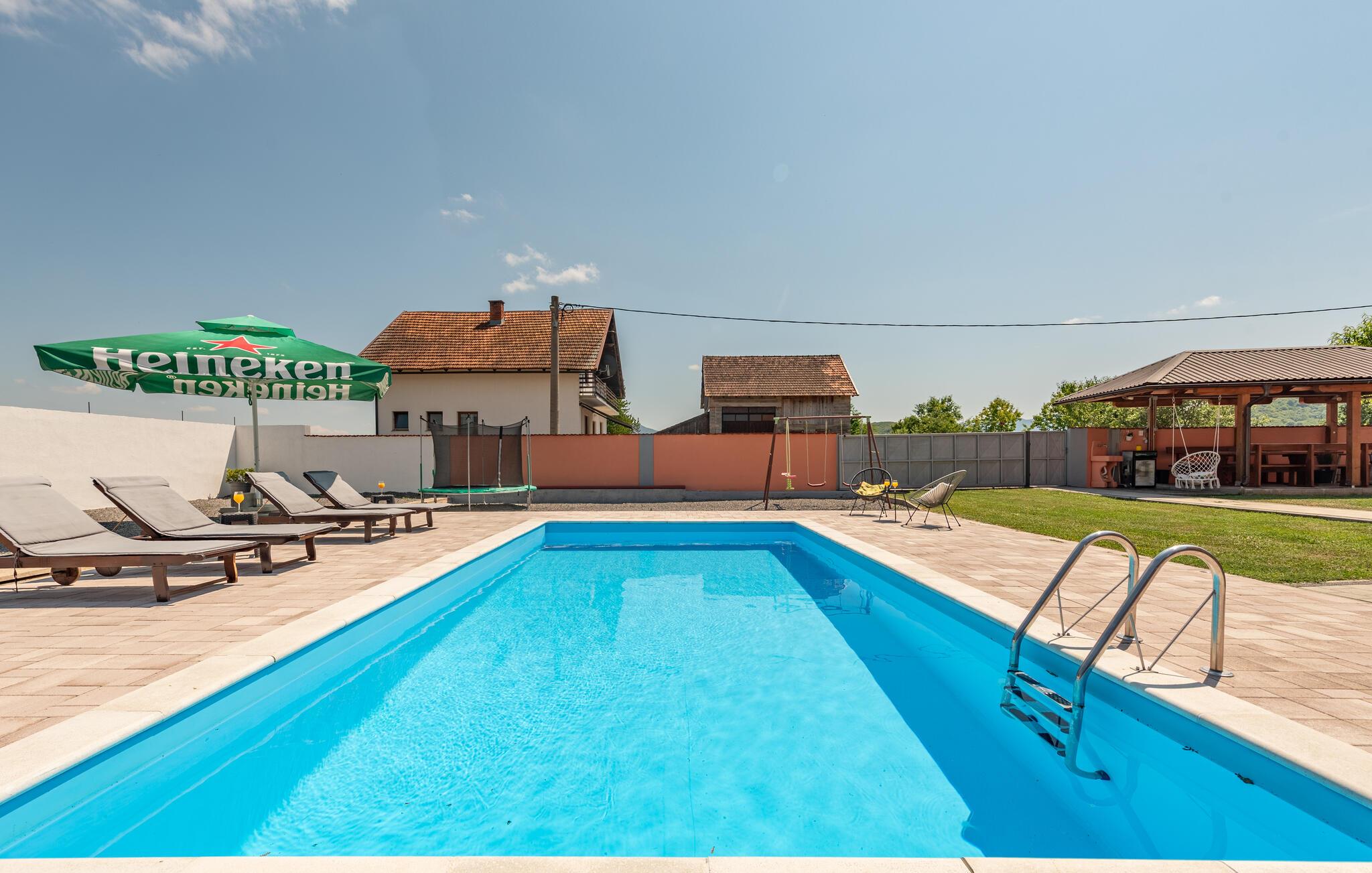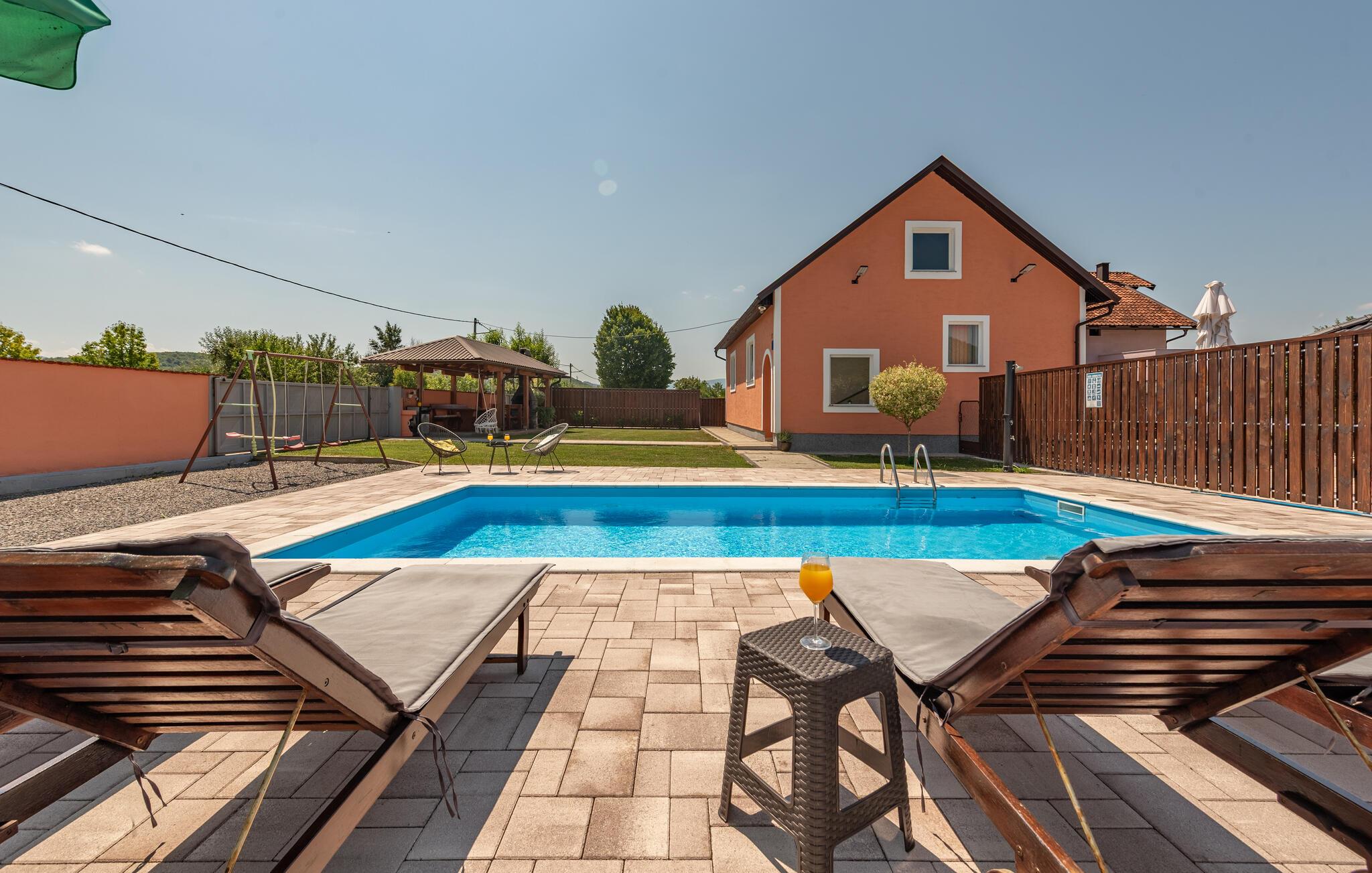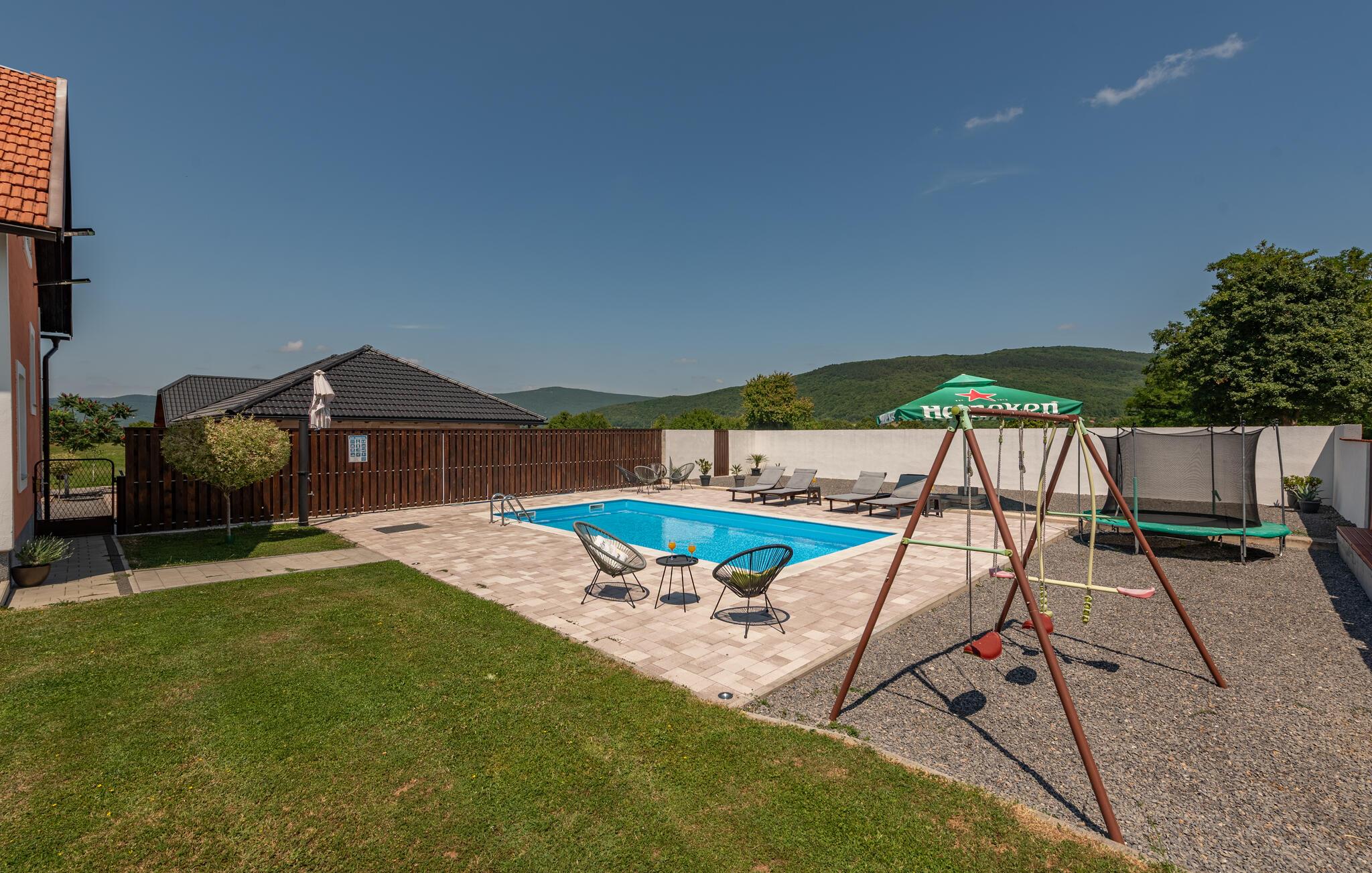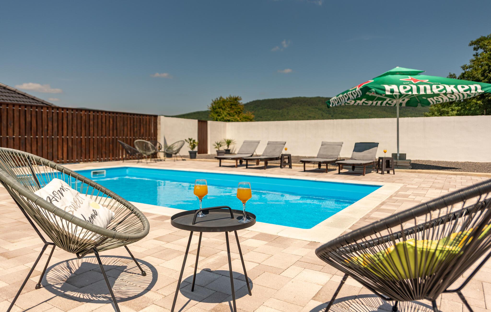 Feriehuset med pool er ideelt til en afslappende ferie i naturen.
