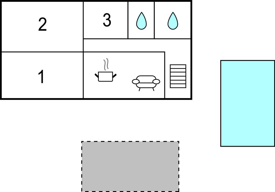Opholdsstue/køkken 18m2 - 1 Soveplads. (Sofa, madras eller lignende).