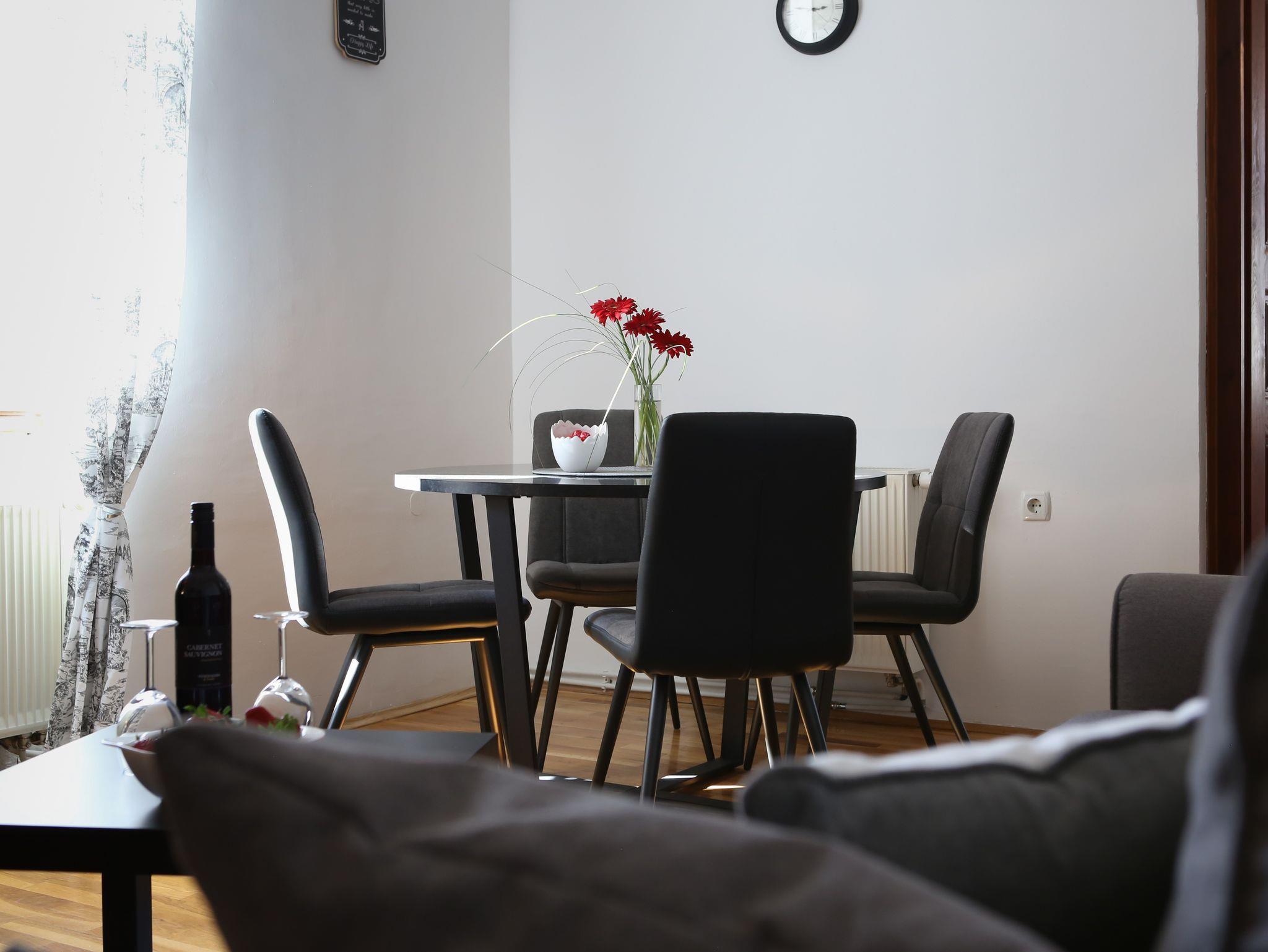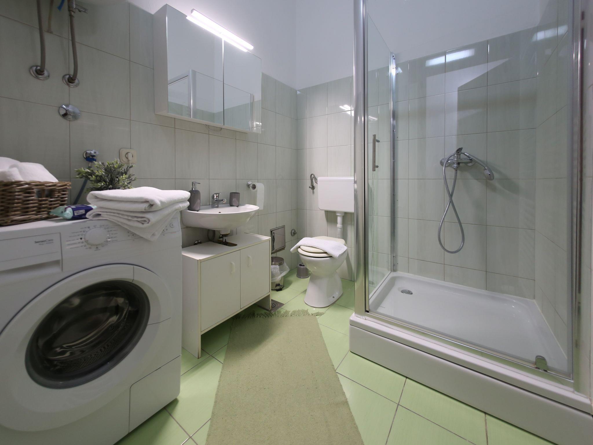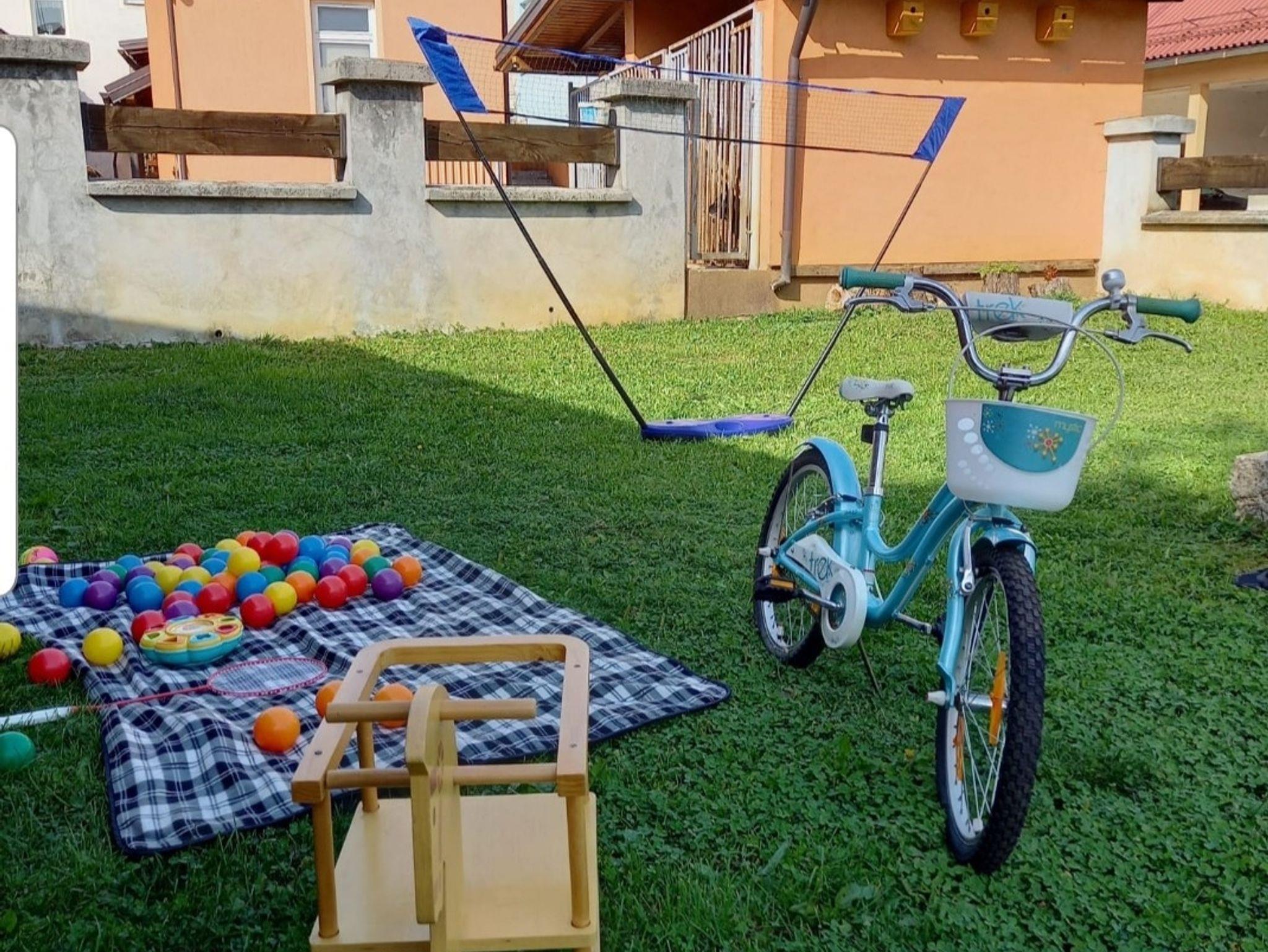 Hof (100m2, Kinderbereich, Sitzbereich), Parkplatz (Anzahl der Parkplätze: 3, Entfernung vom Objekt: im Hof), Parkplatz (Anzahl der Parkplätze: 10, Entfernung vom Objekt: 50 m), Grill: gemeinsam, WiFi Internet, Wäschewaschen, Fahrrad (Anzahl: 4), Föhn, Bügeleisen, Bügelbrett, Kinderbett