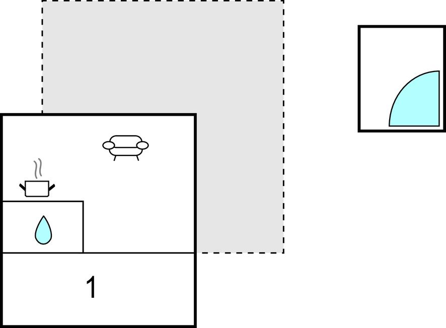Badeværelse (nr. 1) - WC. Varmt og koldt vand. Bruser