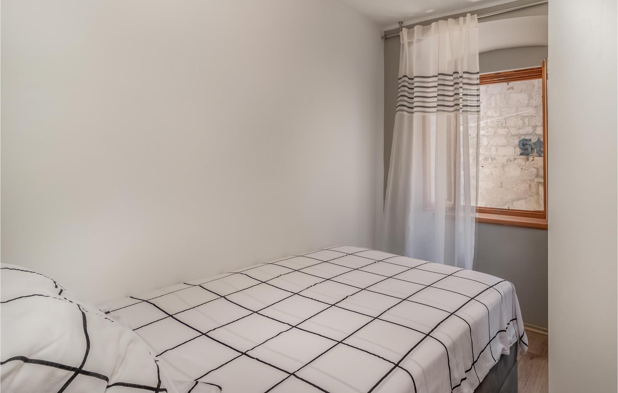 Velkommen til dette moderne og smukke rækkehus. Kom her med familien og nyd de komfortable værelser og gulve dekoreret med synlige elementer fra stenhuset. Indretningen er moderne, lys og indbydende, og lægger op til at sætte fødderne op. Nyd to stuer og nyd udsigten fra den øverste terrasse med udsigt over havet og Rab klokketårn.
