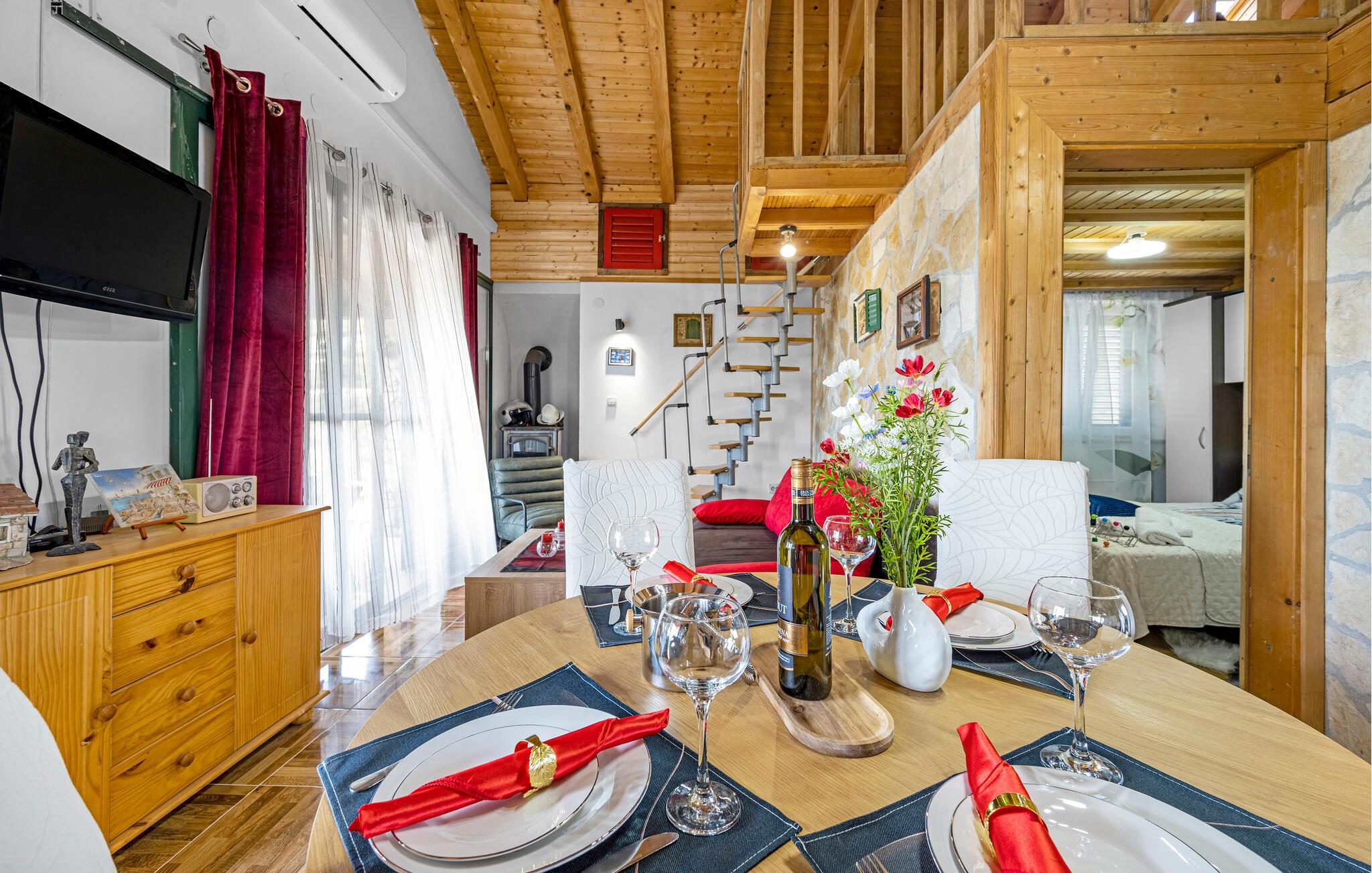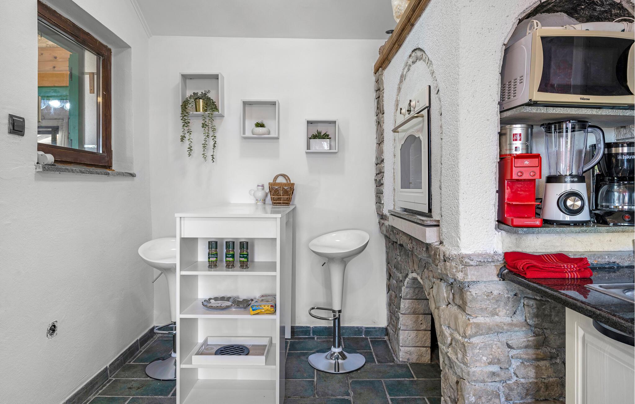 Velkommen til dette komfortable naturstenshus, hvor en vellykket blanding af rustikt og moderne skaber en hyggelig atmosfære. Glæd jer til vidunderlige måltider, hvor I kan planlægge jeres aktiviteter sammen, streame en god serie efter en lang dag eller fordybe jer i jeres ferielæsning på sofaen.