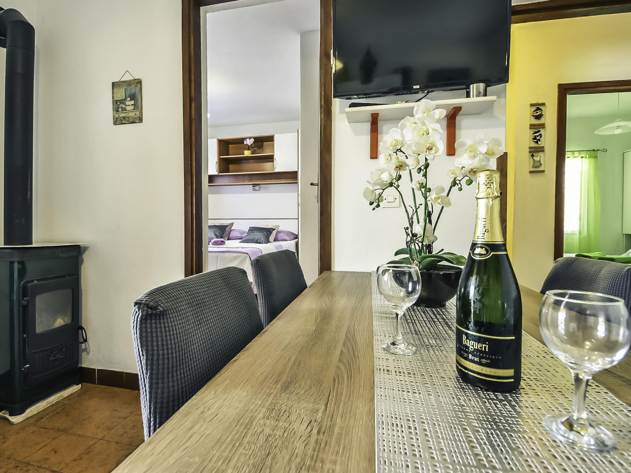 4-room house 55 m2. Living/dining room with satellite TV (flat screen), wood-burning stove. 1 room with 1 french bed (160 cm, length 200 cm). 1 room with 1 french bed (180 cm, length 200 cm). 1 room with 2 beds. Kitchen (oven, 4 gas rings). Shower/WC. Wood heating. No heating option. Terrace 20 m2, roofed. Terrace furniture. View of the sea. Facilities: logs (free). Internet (WiFi, free). Please note: non-smoking house. Solar energy. Water (cistern).