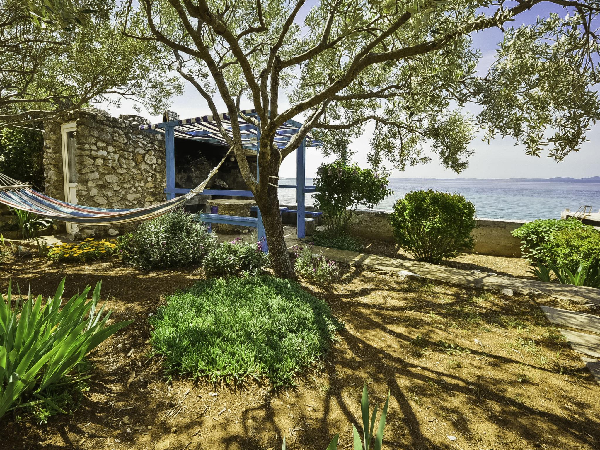 Single-family house "Antica". 4 km from the centre of Banj, 6 km from the centre of Dobropoljana, 16 km from the centre of Tkon, from the sea, 10 m from the beach. Private: property 700 m2, wildlife garden and trees. Outdoor shower, terrace, garden furniture, barbecue. In the house: internet access. Narrow motor access to the house (4 km via unmade road). Parking (for 2 cars) at the house on the premises. Shop 4 km, bus stop 21.8 km, ferry 18 km, rocky beach 10 m. Please note: private mooring, on request. Part of the house is closed and unoccupied.