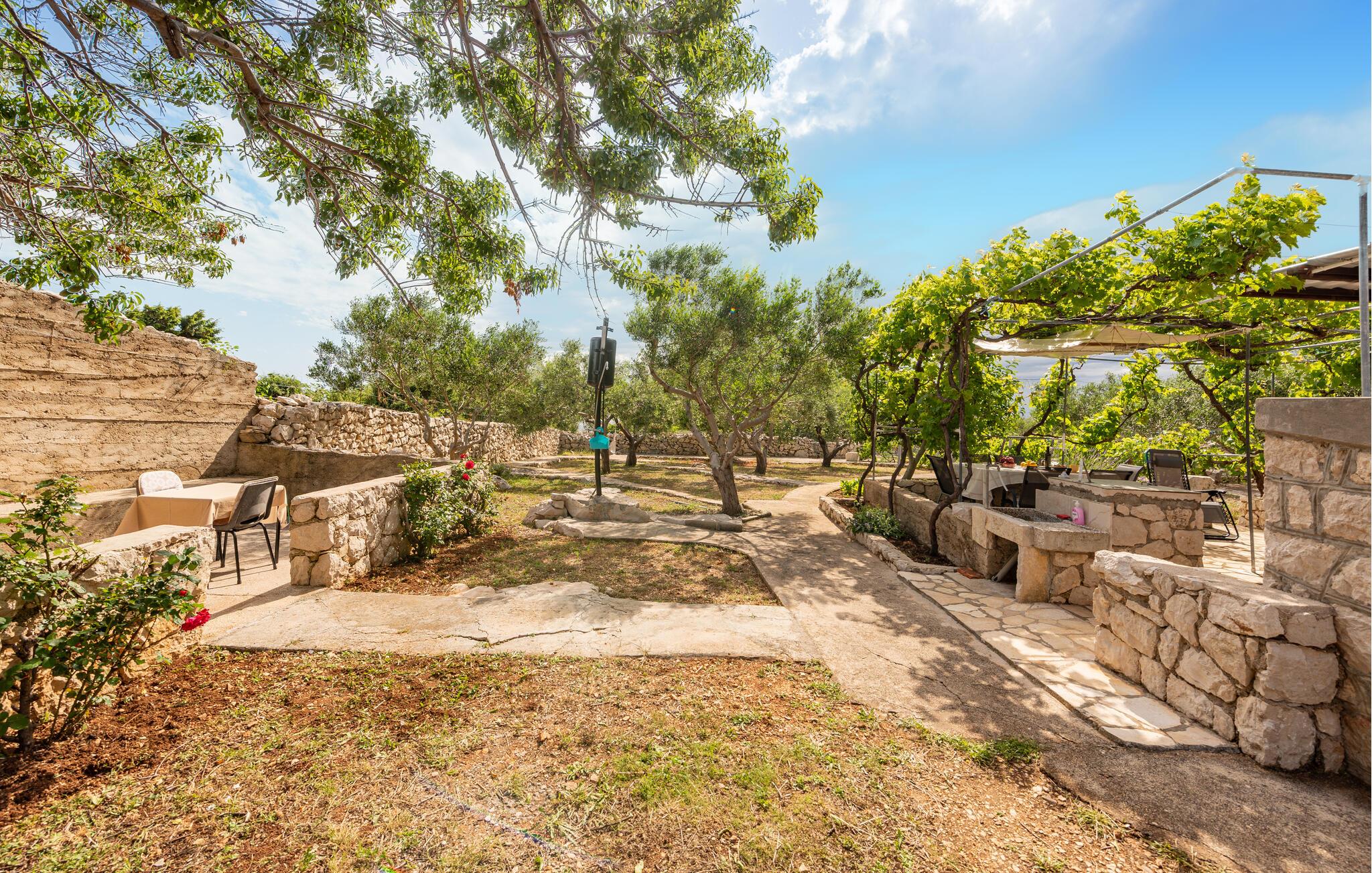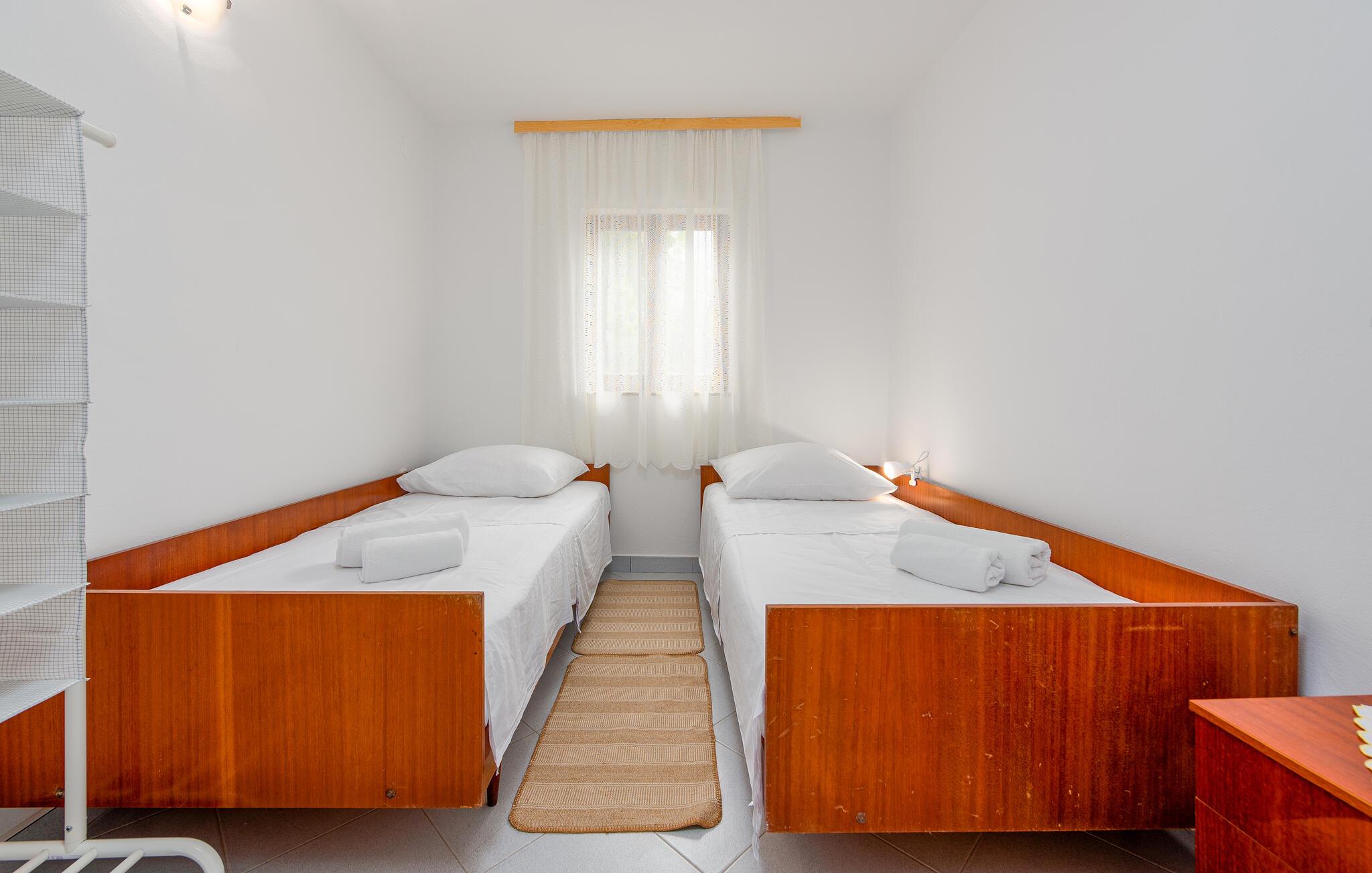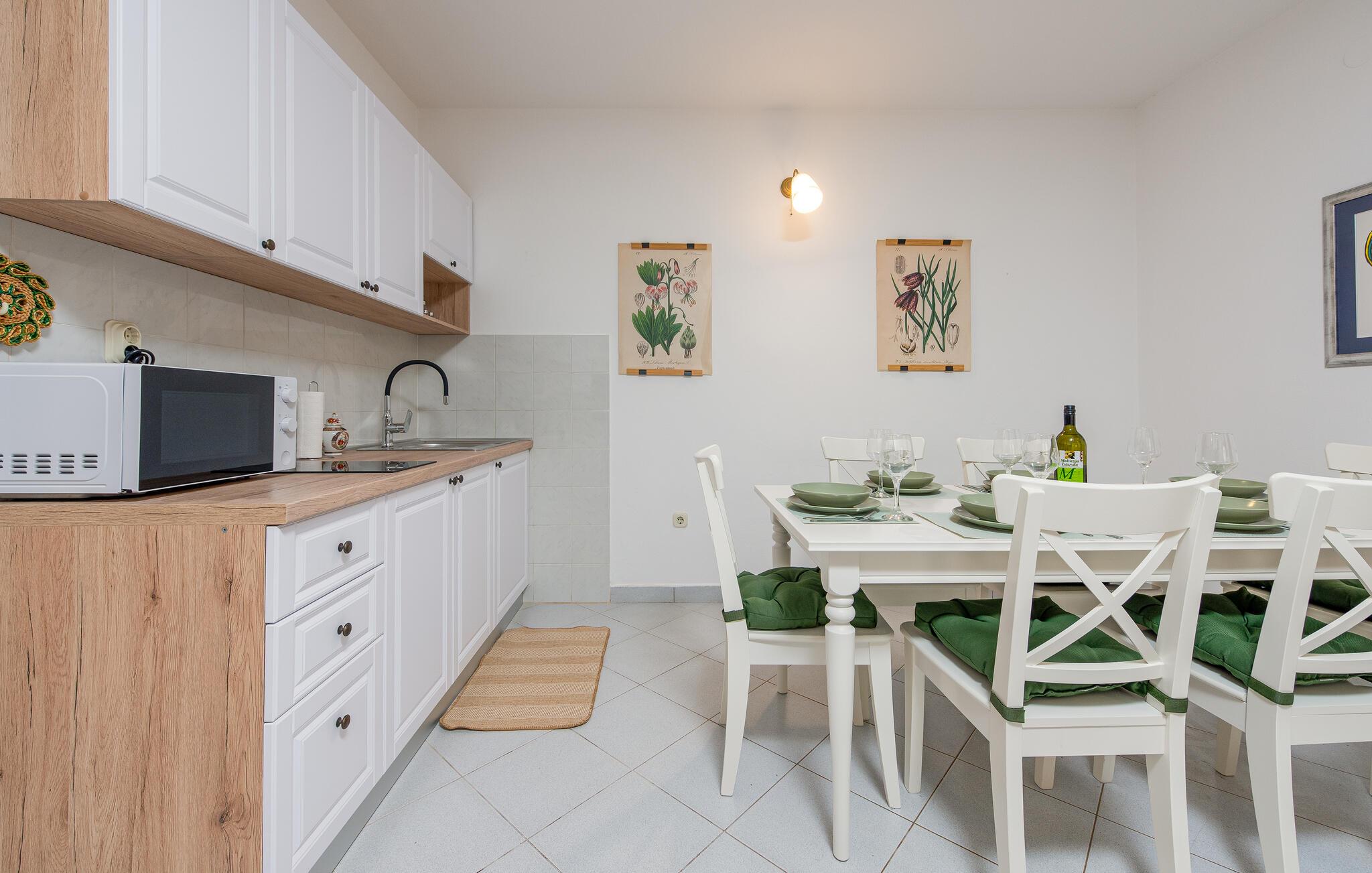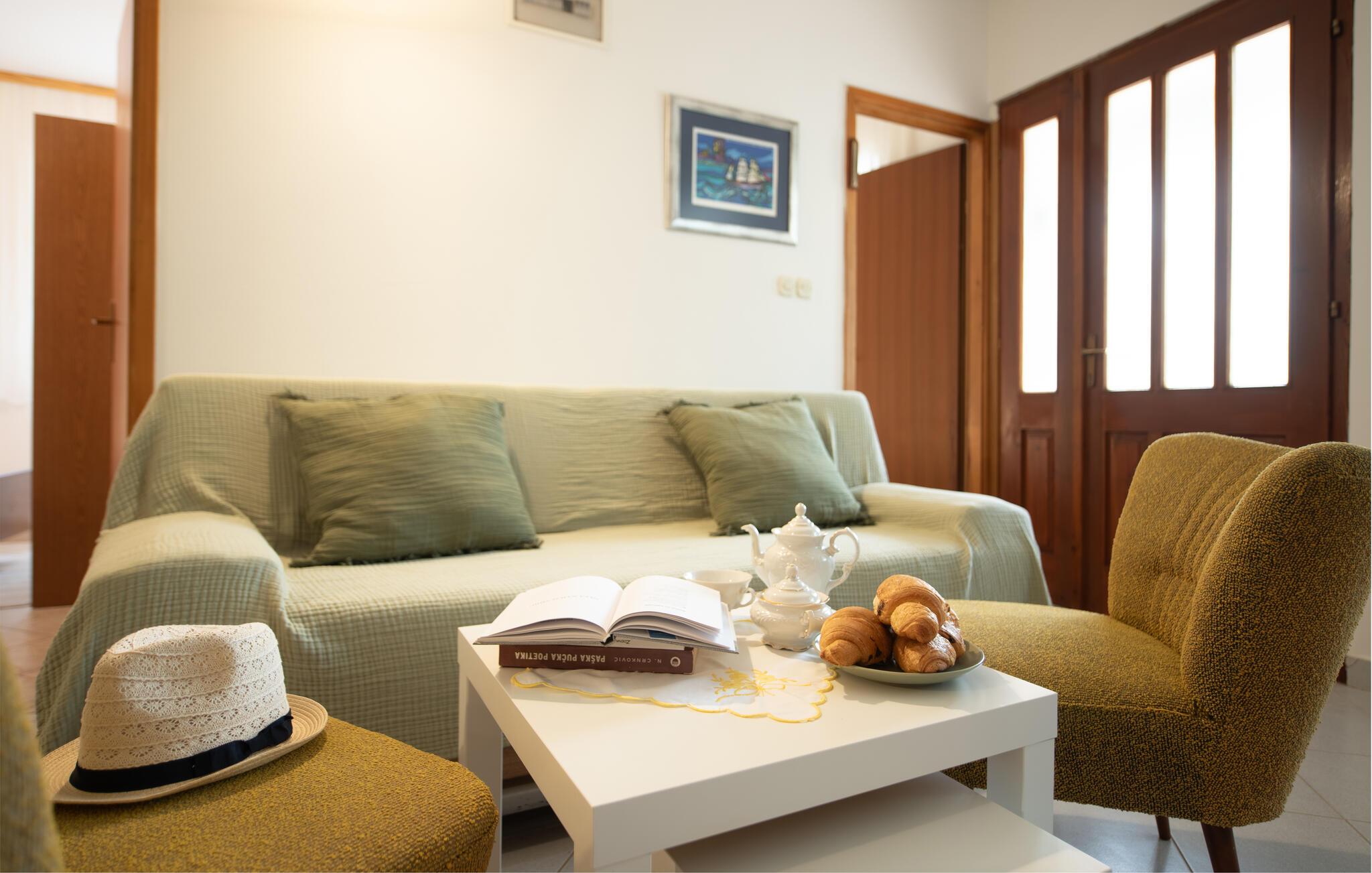 Velkommen til dette fritliggende feriehus på øen Pag, hvor rustik charme møder moderne komfort. De hyggelige rum skaber en indbydende atmosfære, der gør det nemt for jer at nyde ferien med madlavning, fælles middag og leg. Arranger en filmaften, eller nyd de lune aftentimer udenfor.