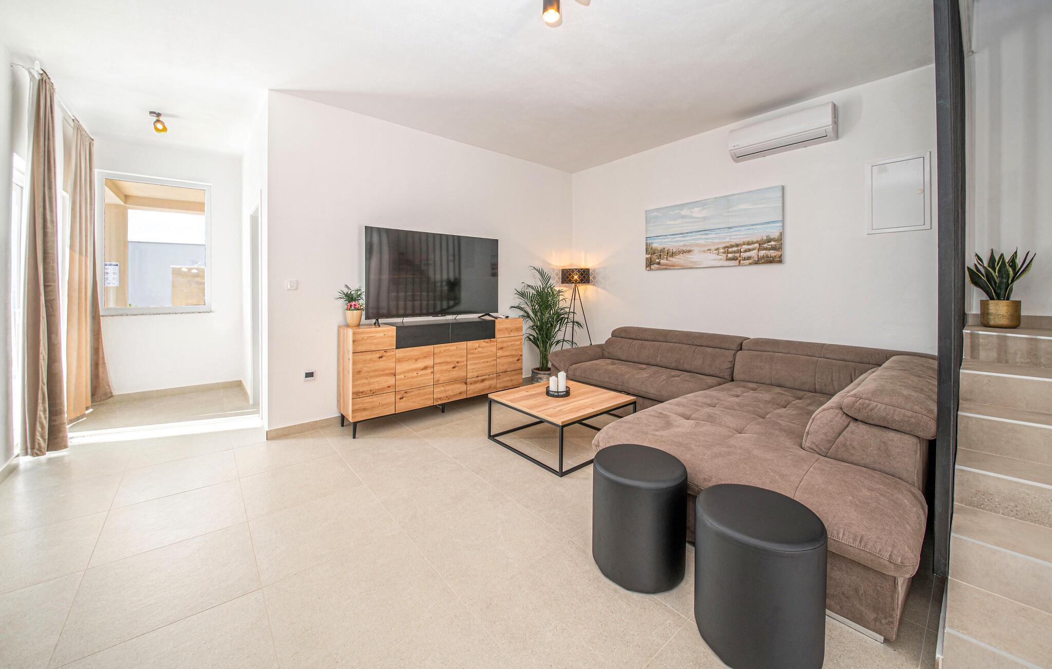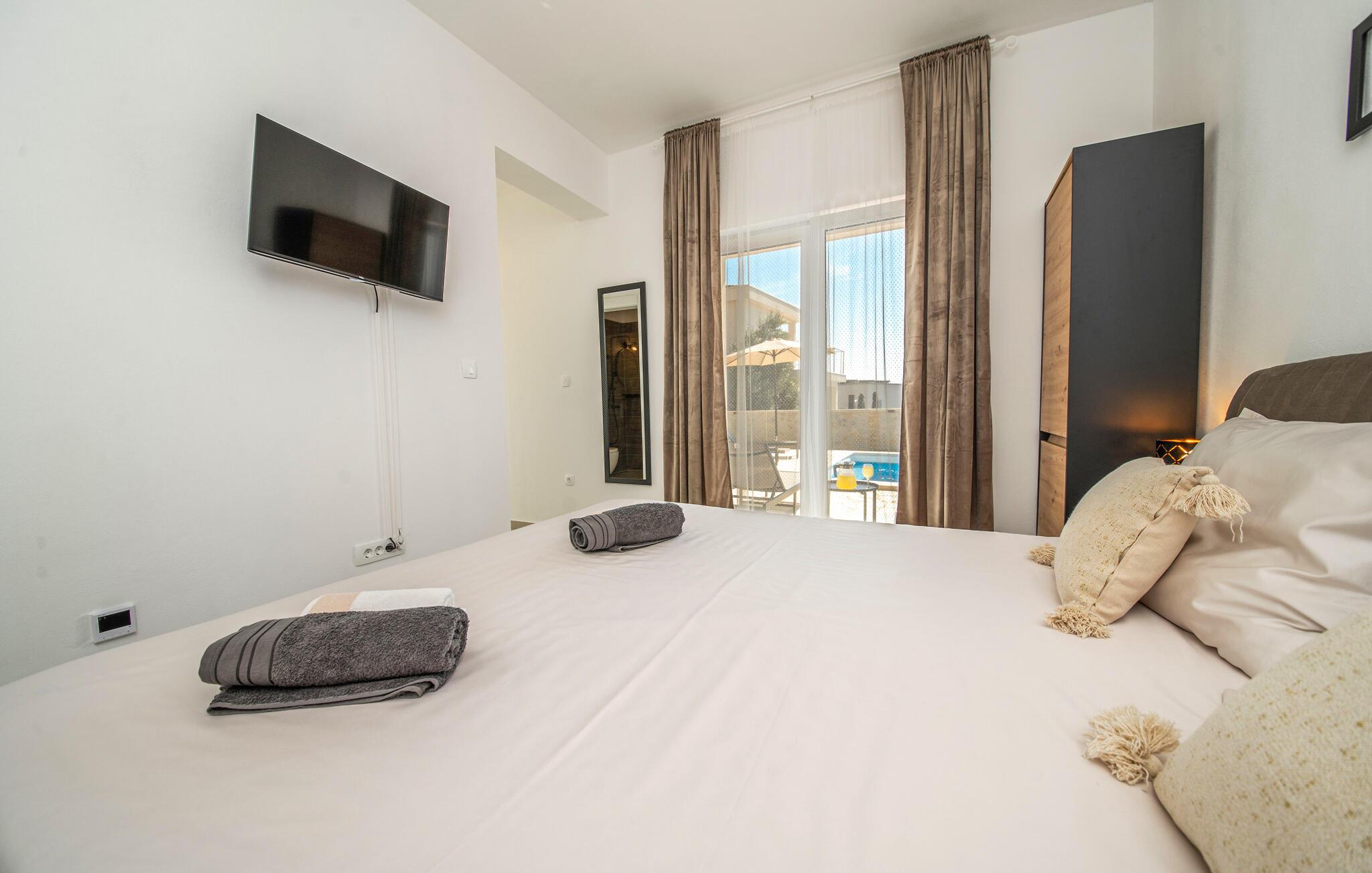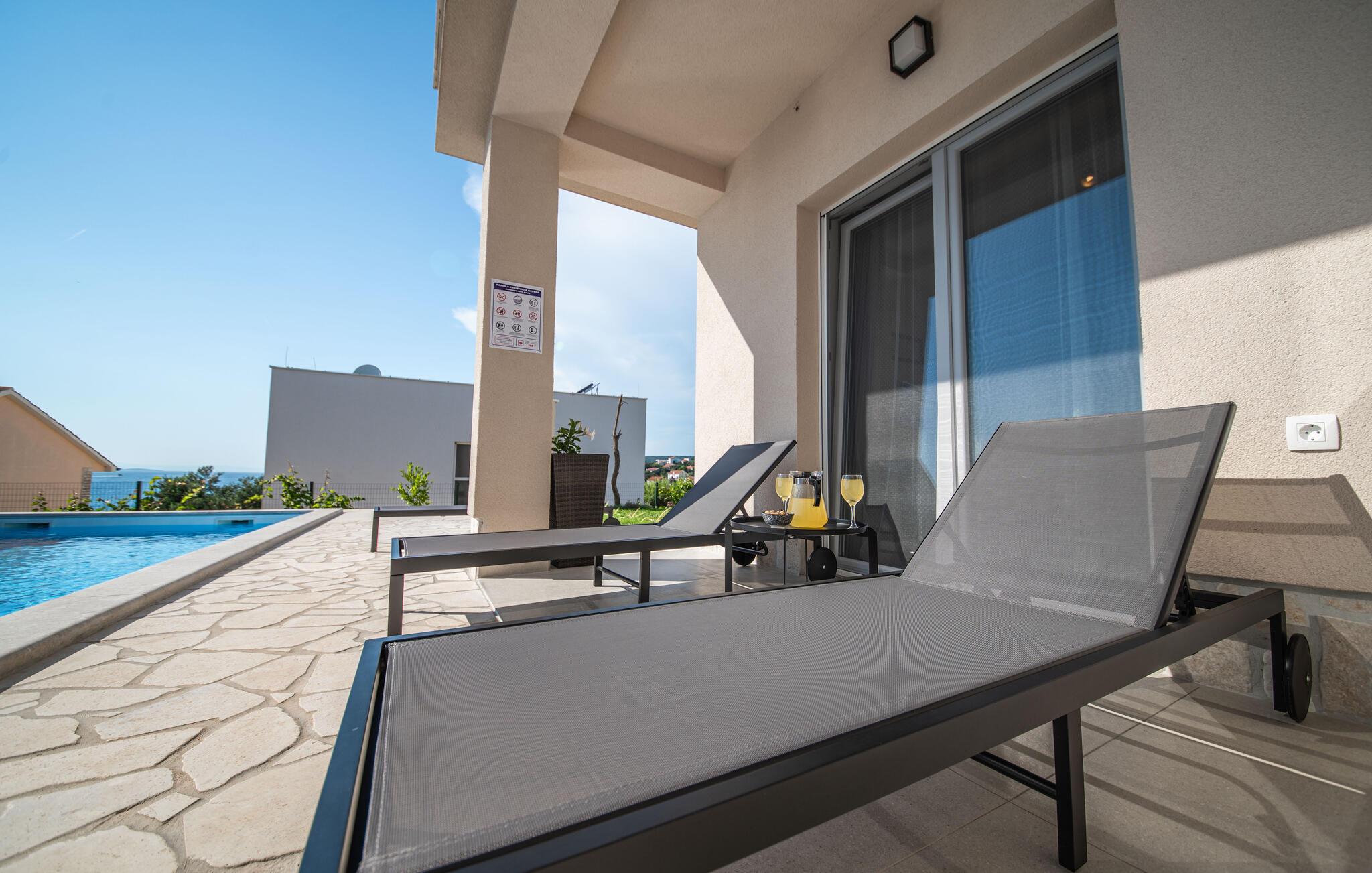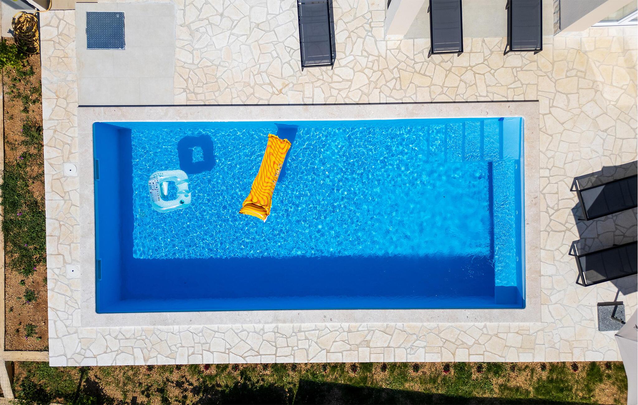 I Jakisnica på øen Pag byder denne moderne feriebolig jer velkommen med alt, hvad I behøver for et afslappende ophold. Husets højdepunkt er den opvarmede udendørs pool, der på varme sommerdage sørger for forfriskning. Slap af på de komfortable liggestole ved poolen og nyd den storslåede udsigt over havet fra den rummelige terrasse.