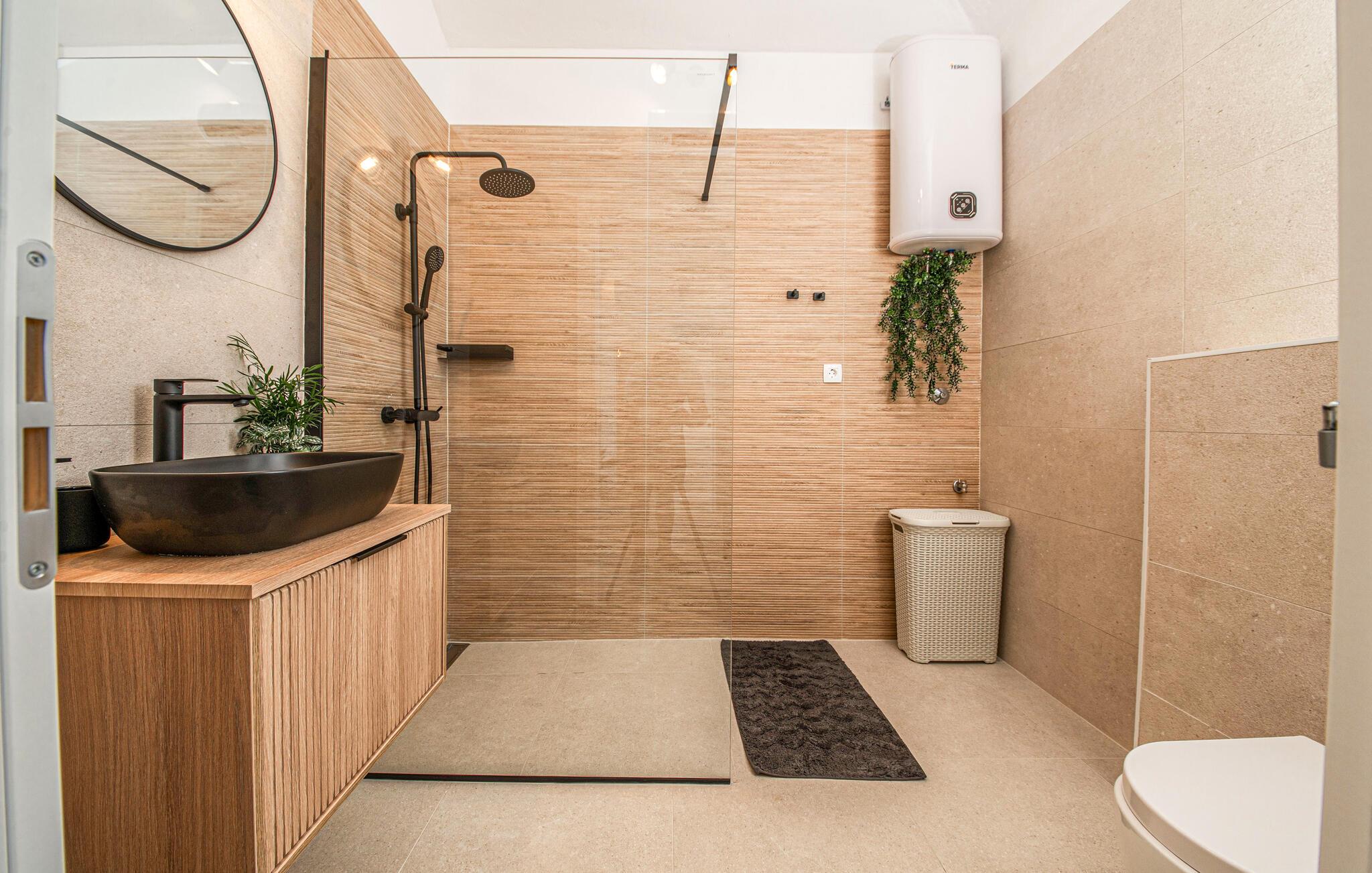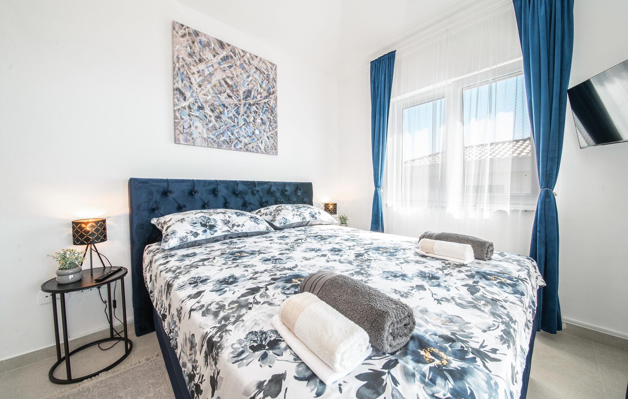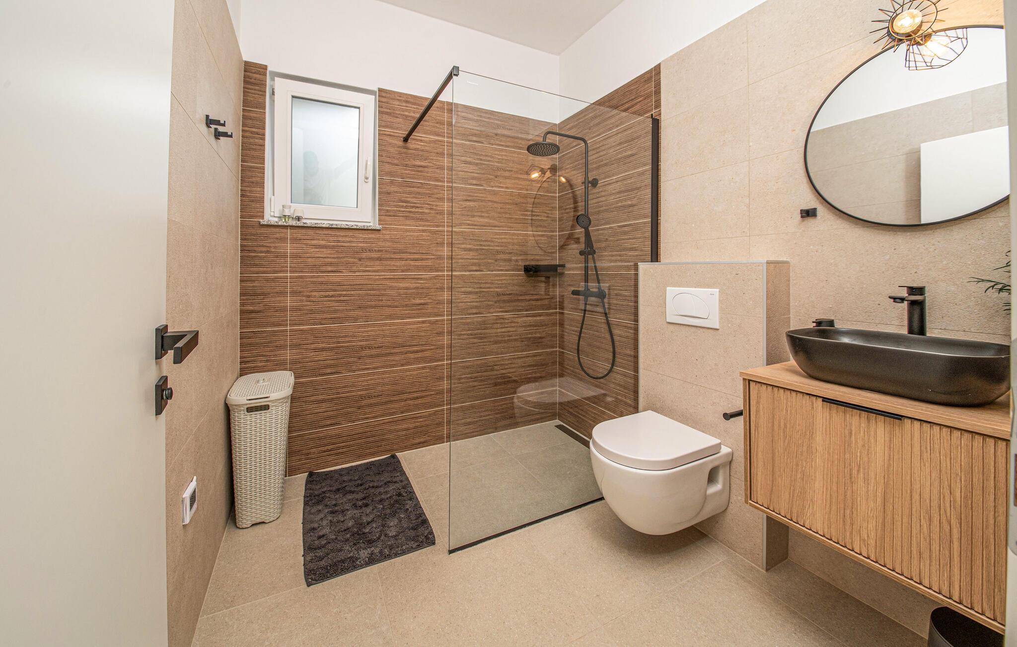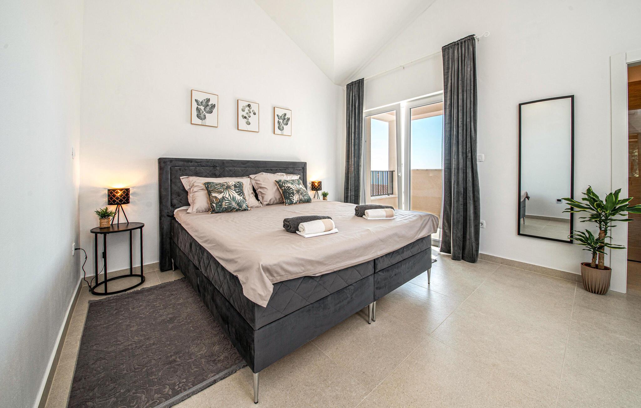 I Jakisnica på øen Pag byder denne moderne feriebolig jer velkommen med alt, hvad I behøver for et afslappende ophold. Husets højdepunkt er den opvarmede udendørs pool, der på varme sommerdage sørger for forfriskning. Slap af på de komfortable liggestole ved poolen og nyd den storslåede udsigt over havet fra den rummelige terrasse.