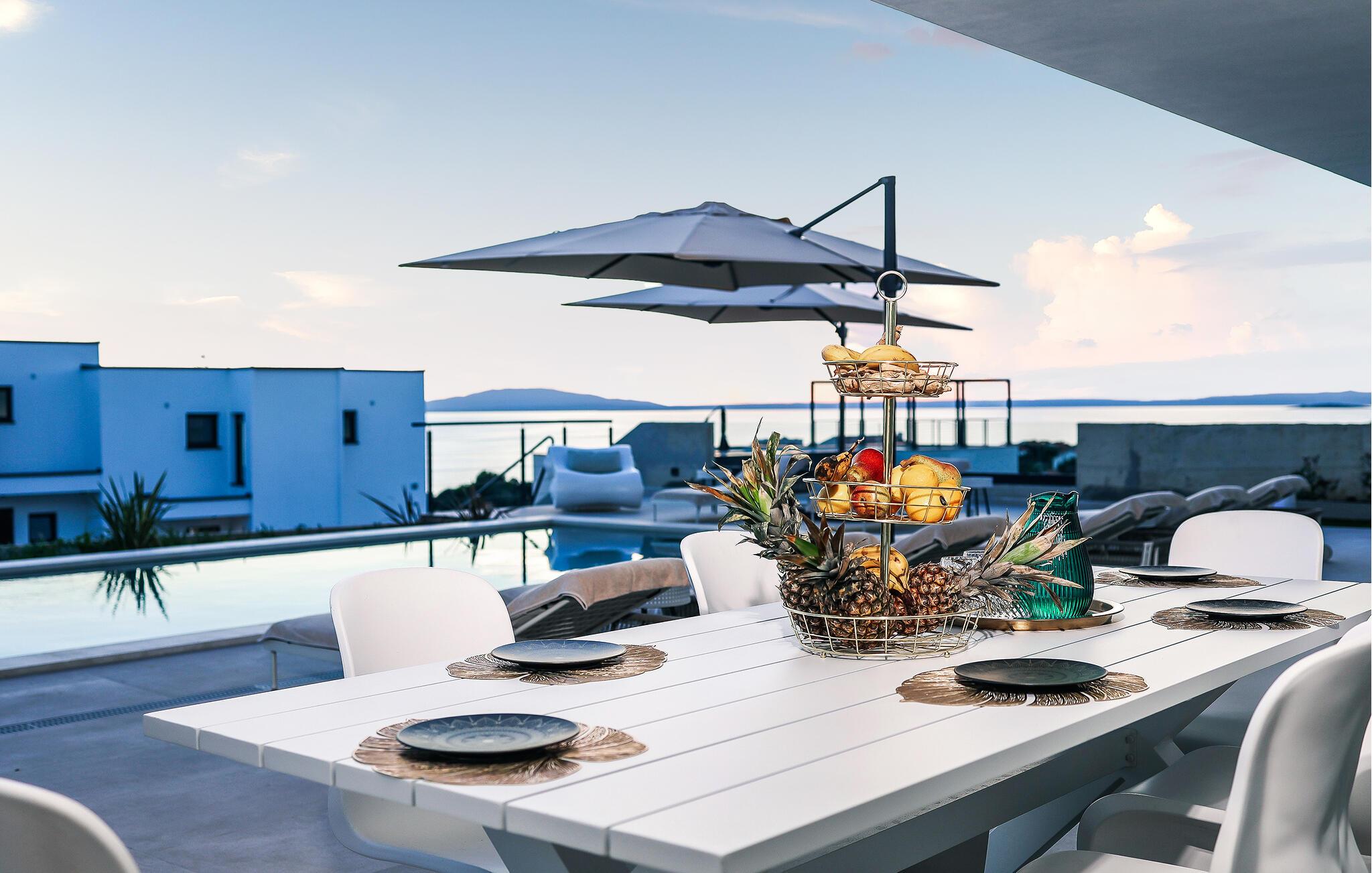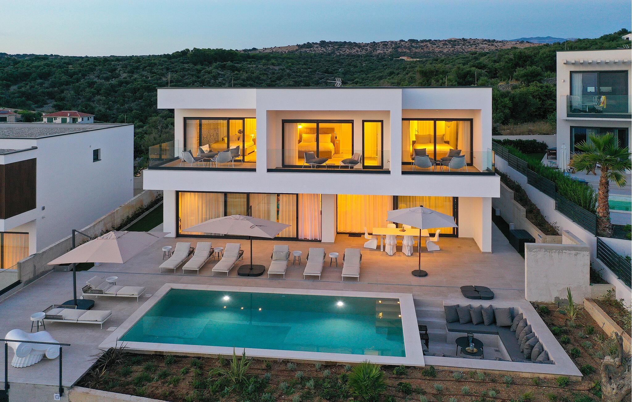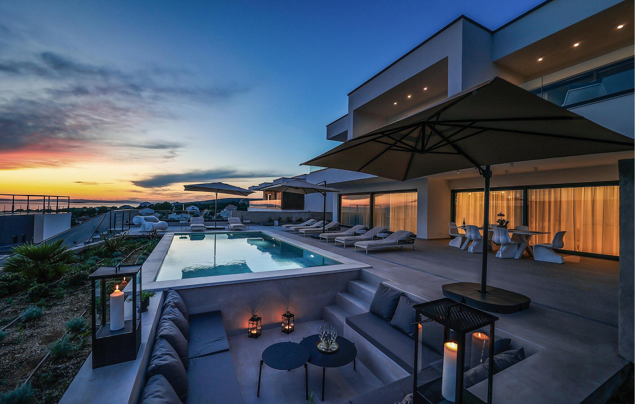 Er I på udsigt efter en ekstraordinær boligoplevelse? Og må det gerne bugne af komfort og luksus? Så er I kommet til det helt rette sted. På øen Pag finder I nemlig denne rummelige villa, der nærmest er sit helt eget resort kun få skridt fra stranden. Indretningen emmer af klasse, kvalitet og elegance over hele linjen. Alle soveværelserne har badeværelse en-suite, så I kan nyde privatlivets fred i ro og mag fra morgenstunden med en fantastisk udsigt over vandet. Senere kan I mødes i stueetagen, der er utroligt godt udstyret, så familiens kokke kan kræse om livretterne i det fantastiske køkken, inden I nyder måltiderne ved spisebordet eller i det fri.